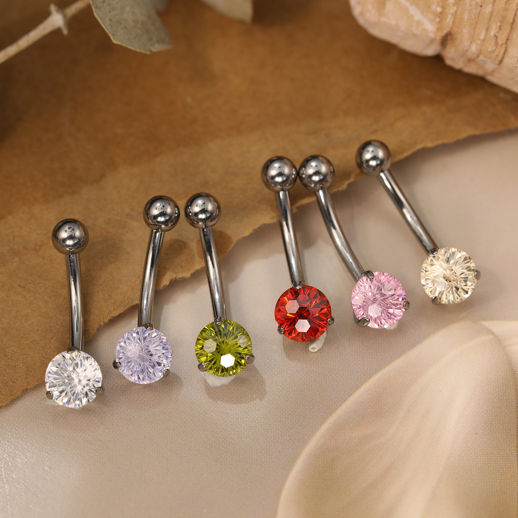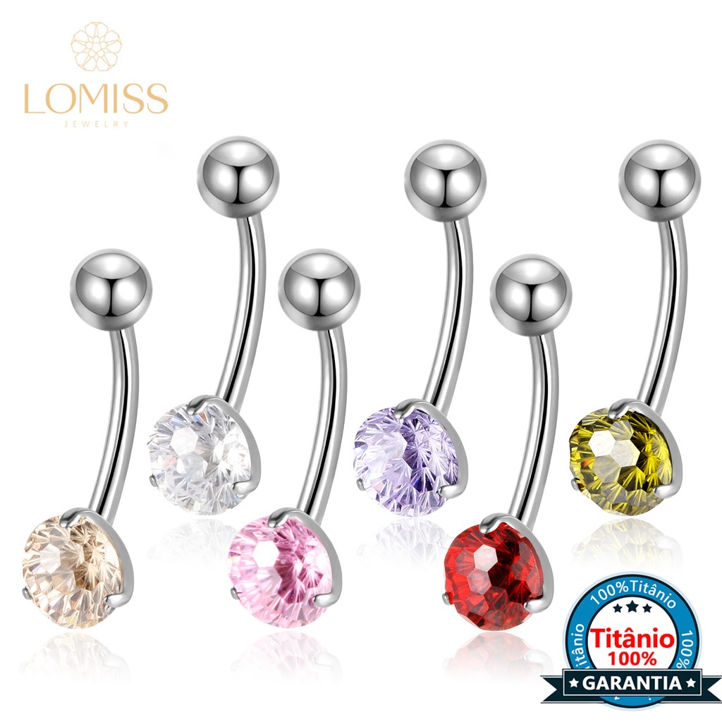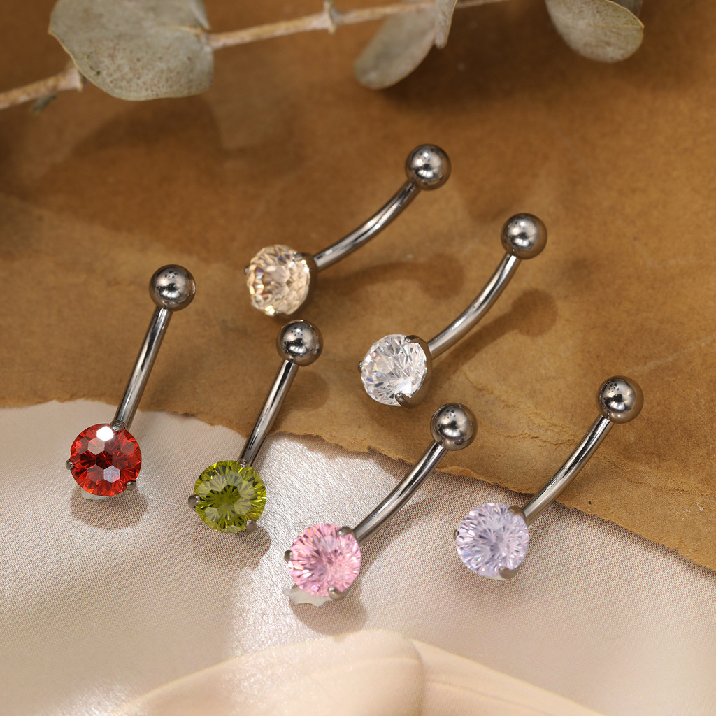 Piercing Banana Umbigo Titânio 1 Pedra Zircônia Cravejada