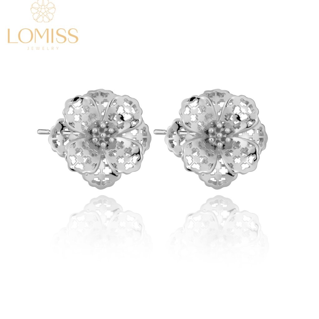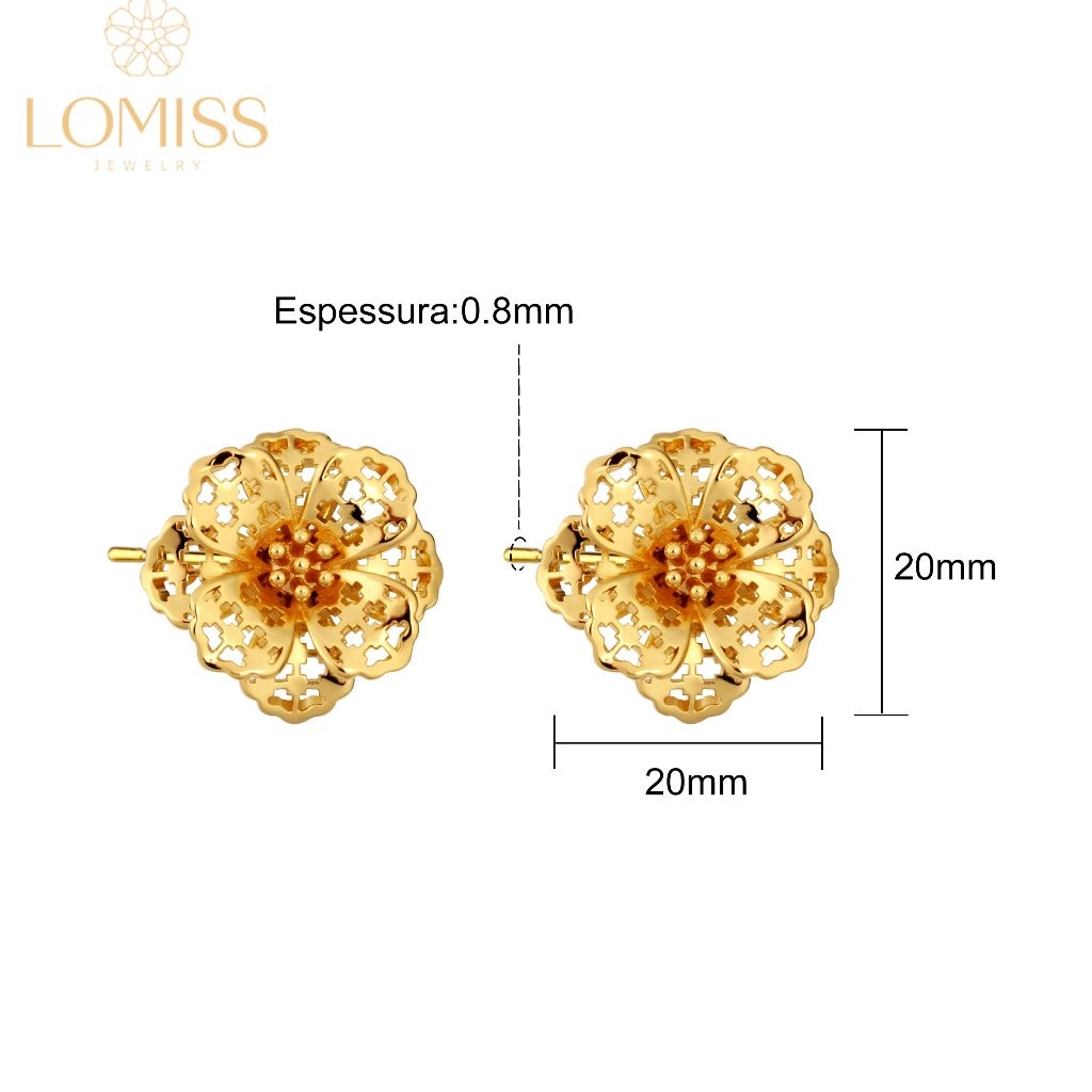 Brinco Folheado Ouro 18k a Platina De Pressão Feminino Flor Dealhada Folheado Ouro 18k a Platina