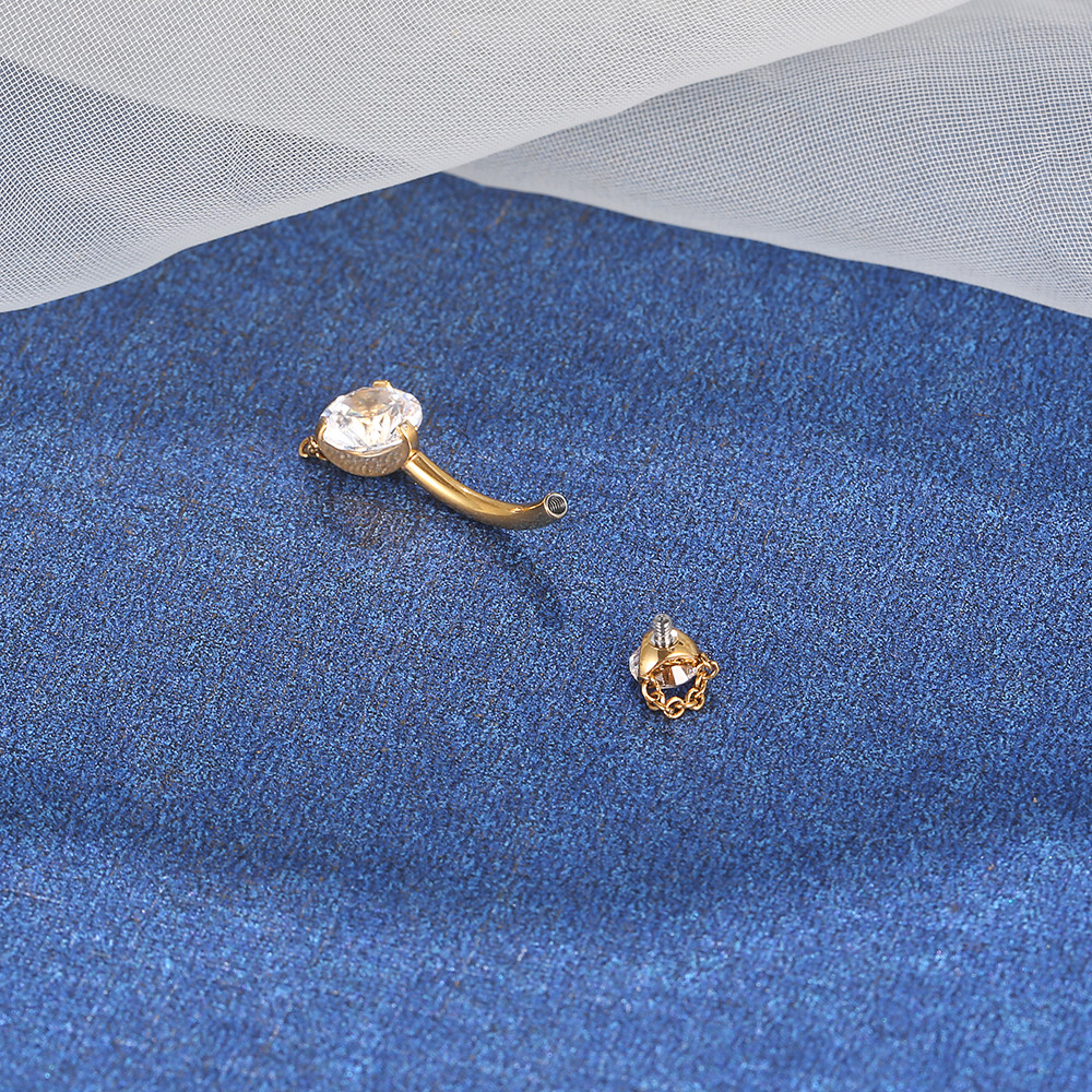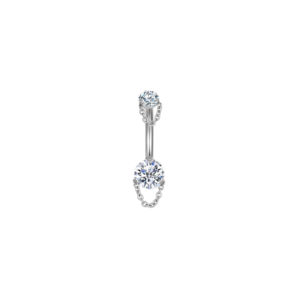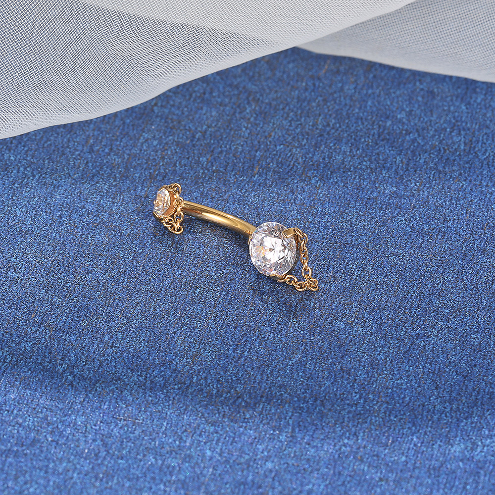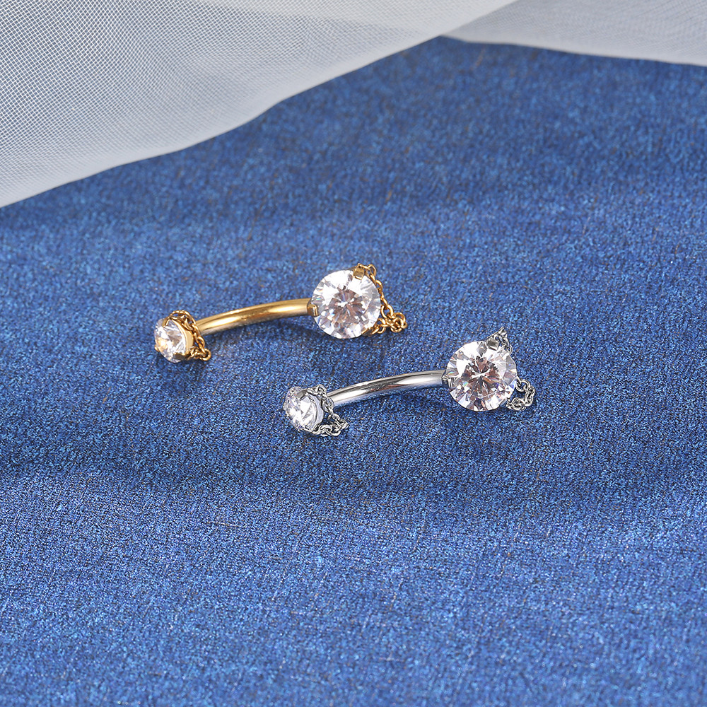 Lomiss Piercing Umbigo Banana Aço Cirúrgico 2 Pedras Zirconia Com Correntes