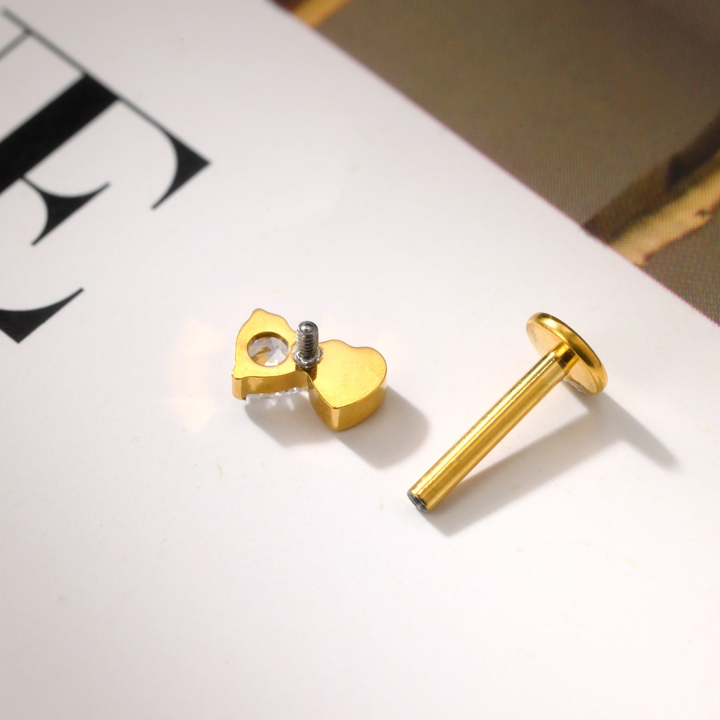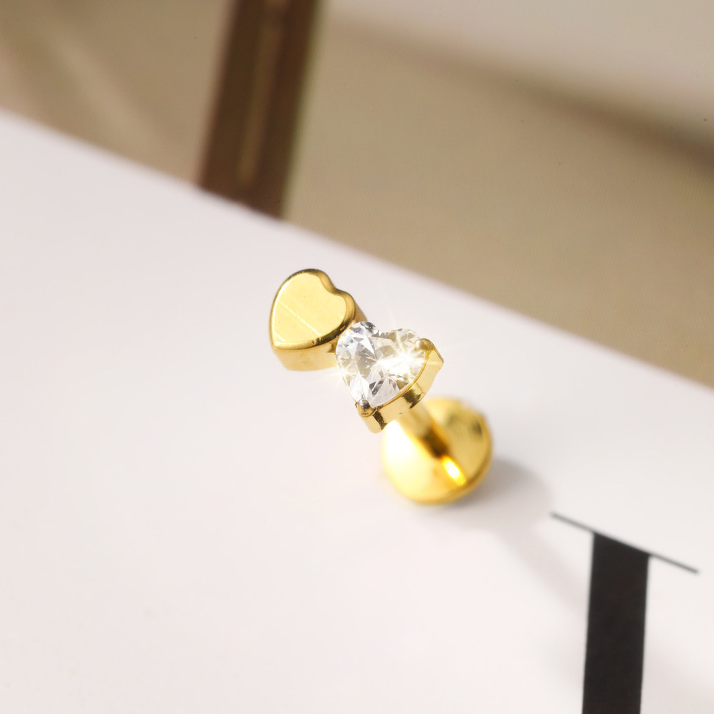 Piercing Helix Tragus Conch Labret Titânio Dois Corações Zircônia Cravejada