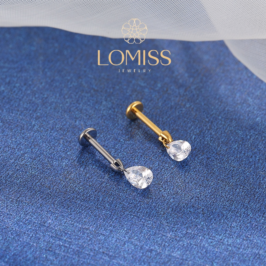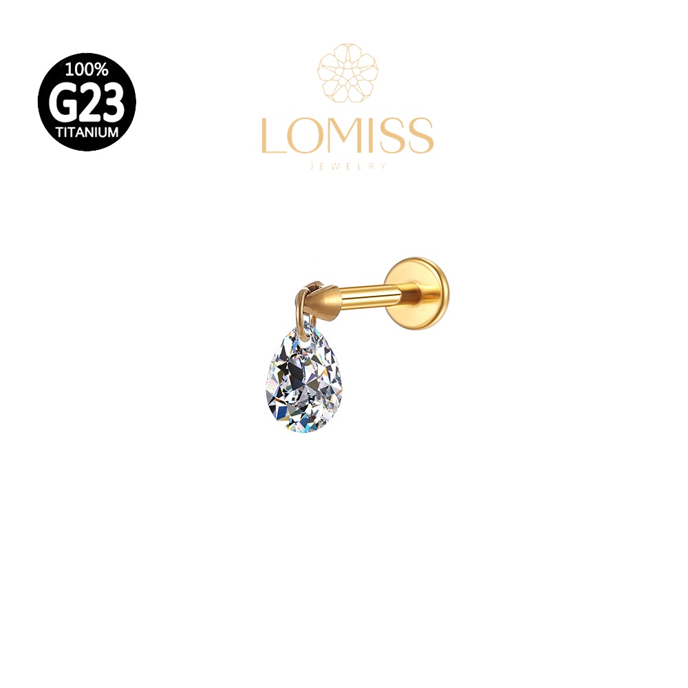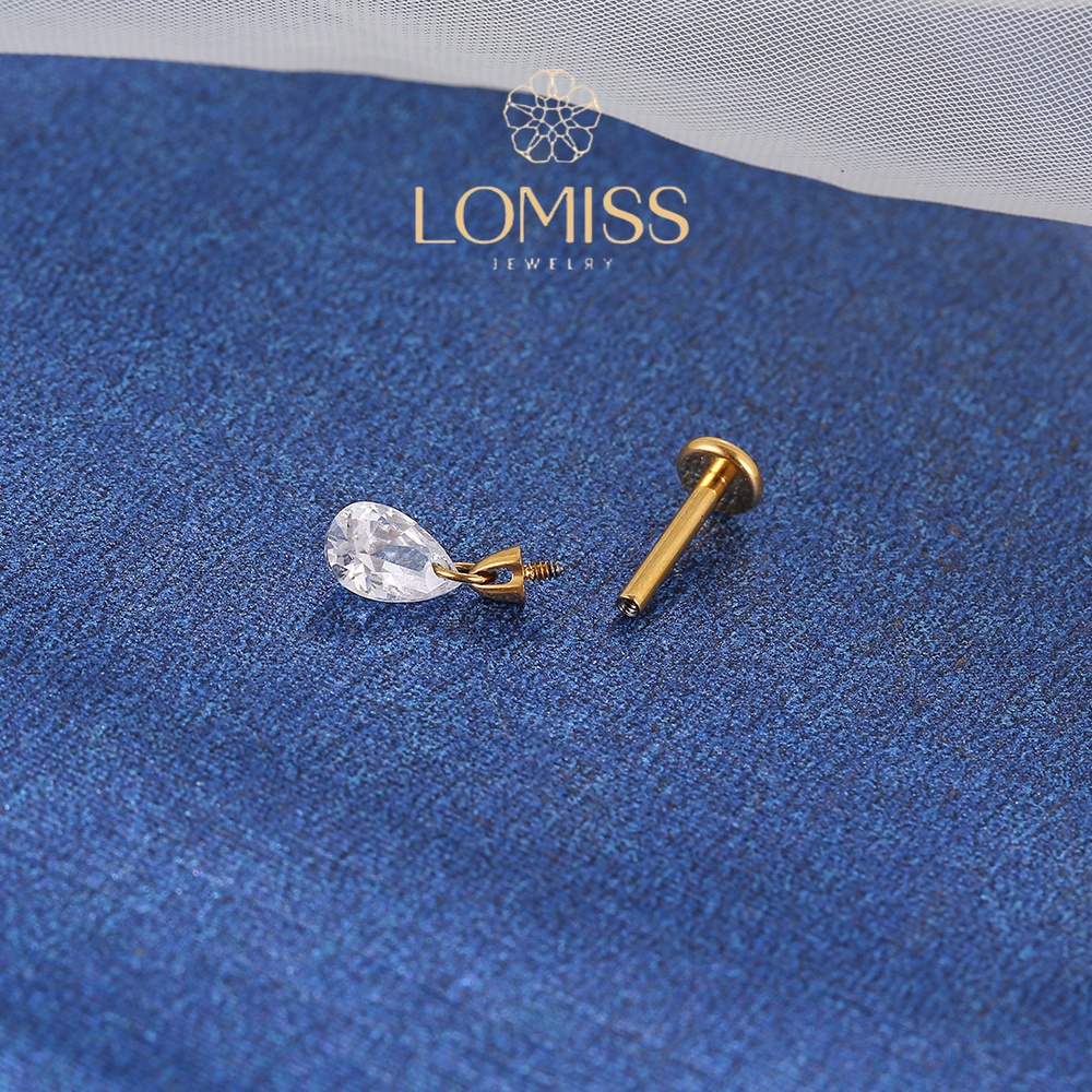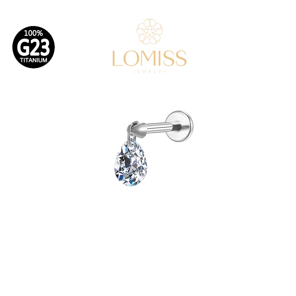Piercing Conch Labret Titânio PVD com Pingente de Zircônia Gota《Lomiss semijoias》