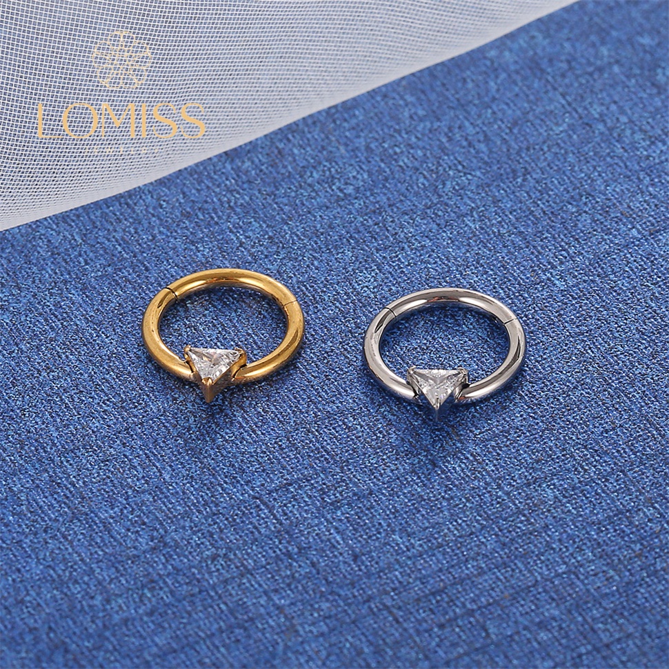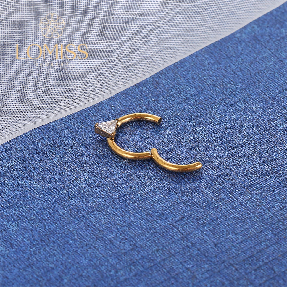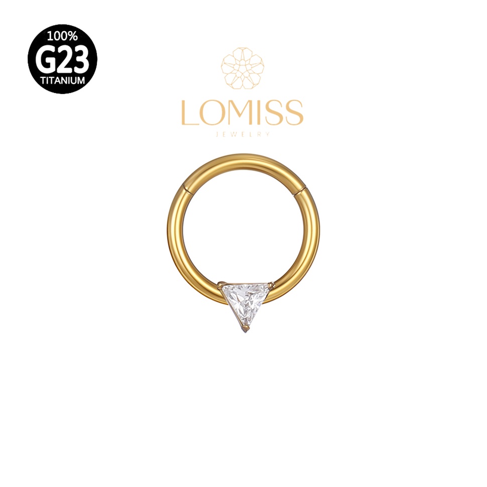 Piercing daith banhado PVD gold 18k titânio G23 segmento articulado uma zircônia triângulo《Lomiss piercing》