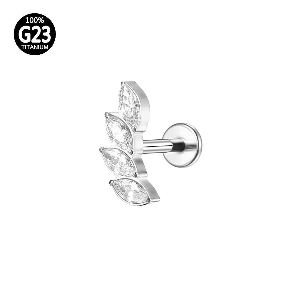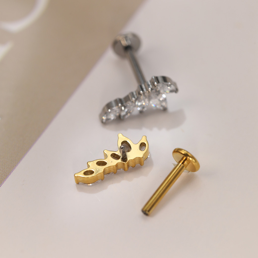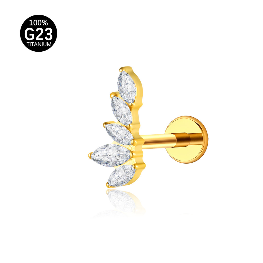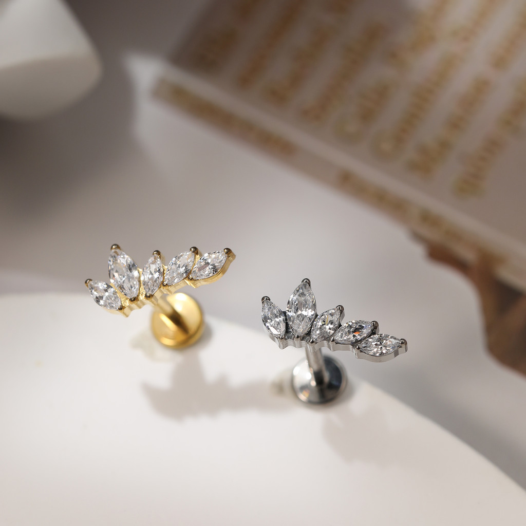 Piercing Labret Titânio Orelha Helix Tragus Conch 5 Pedras Zircônia