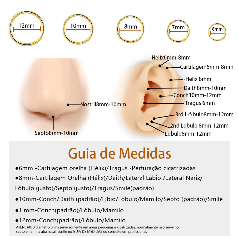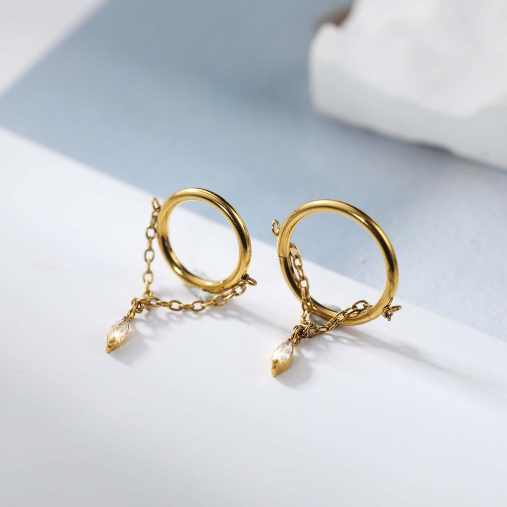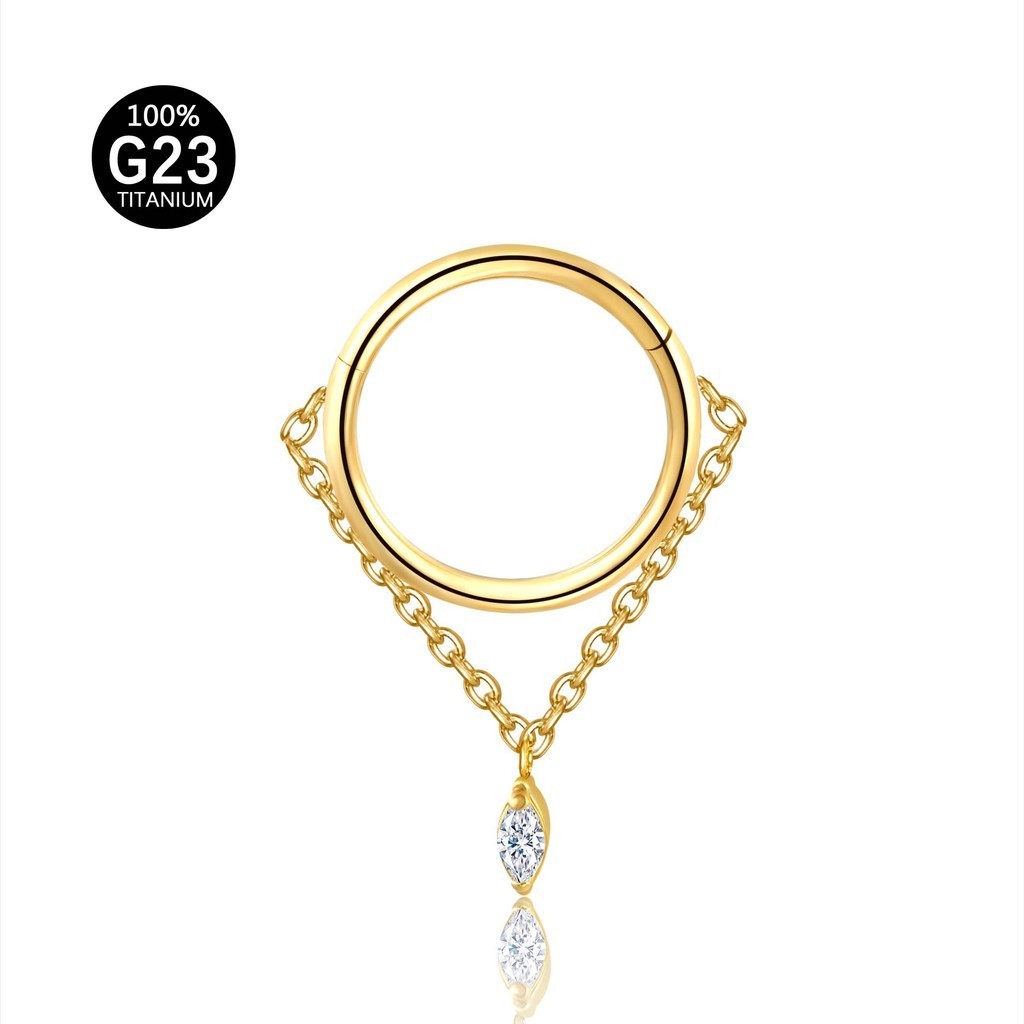 Lomiss Piercing Argola Conch Titânio Pvd Corrente Com Pingente Oval Orelha Nariz Septo