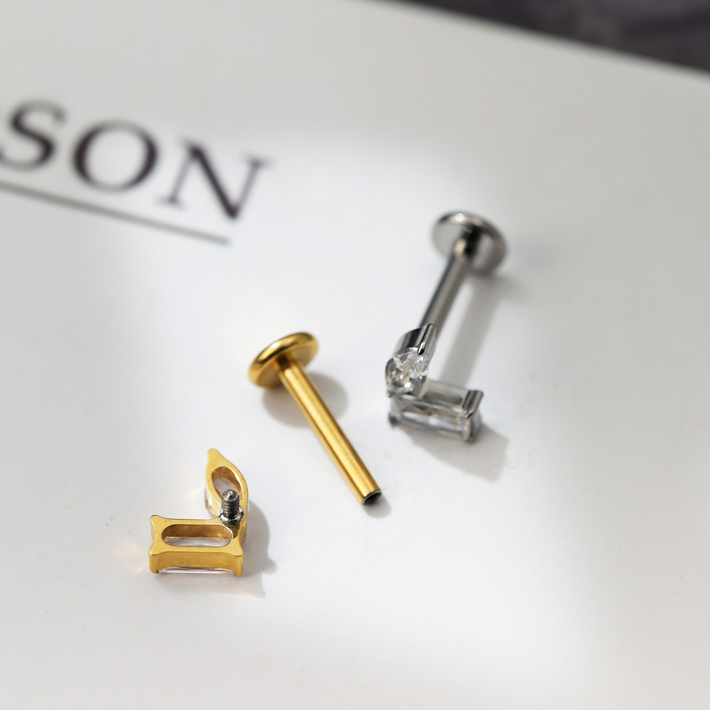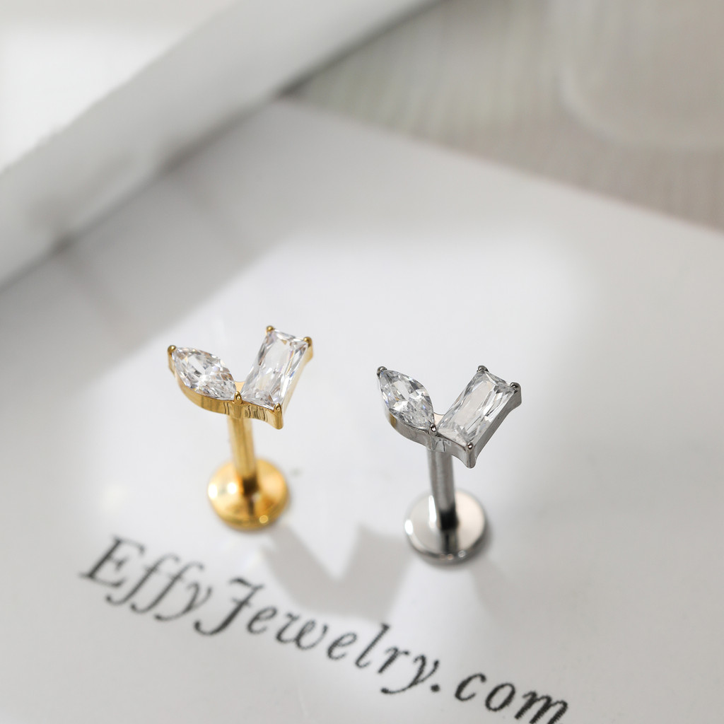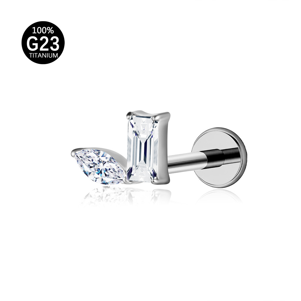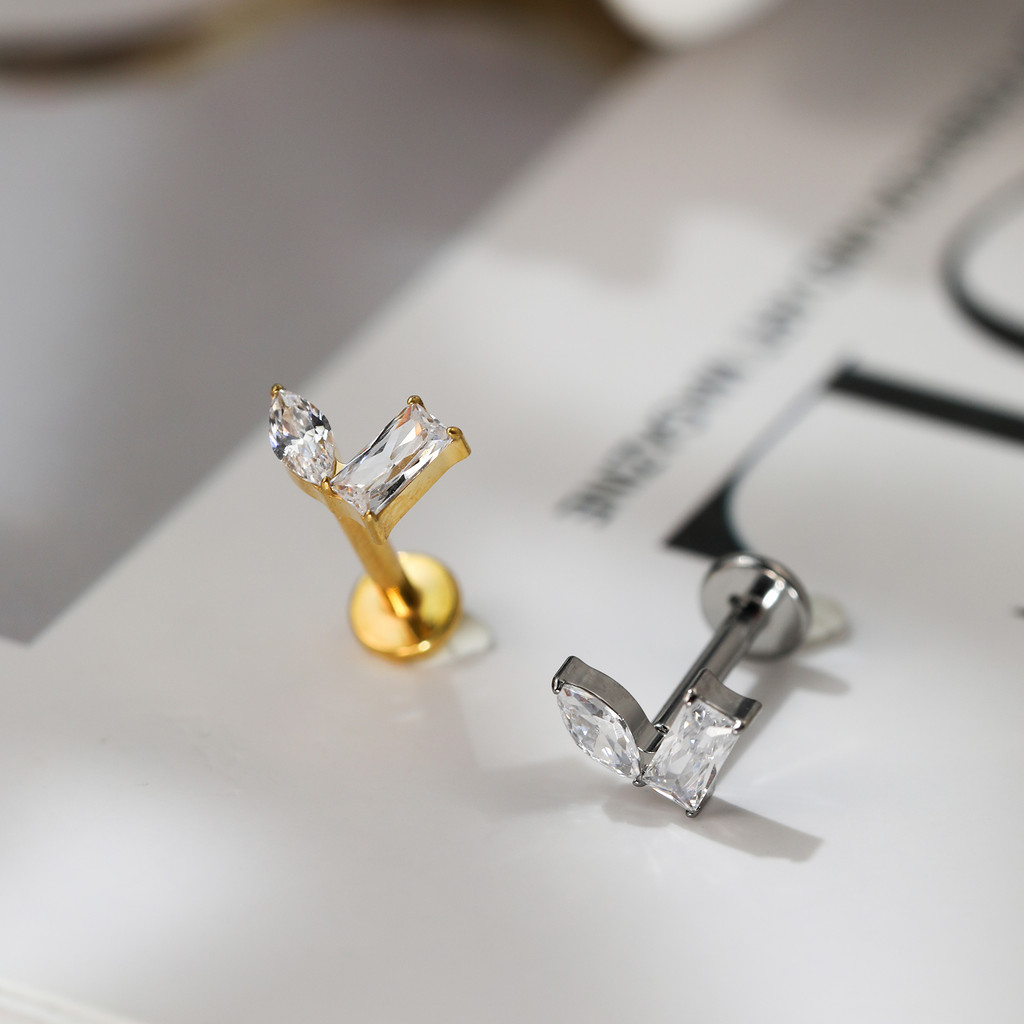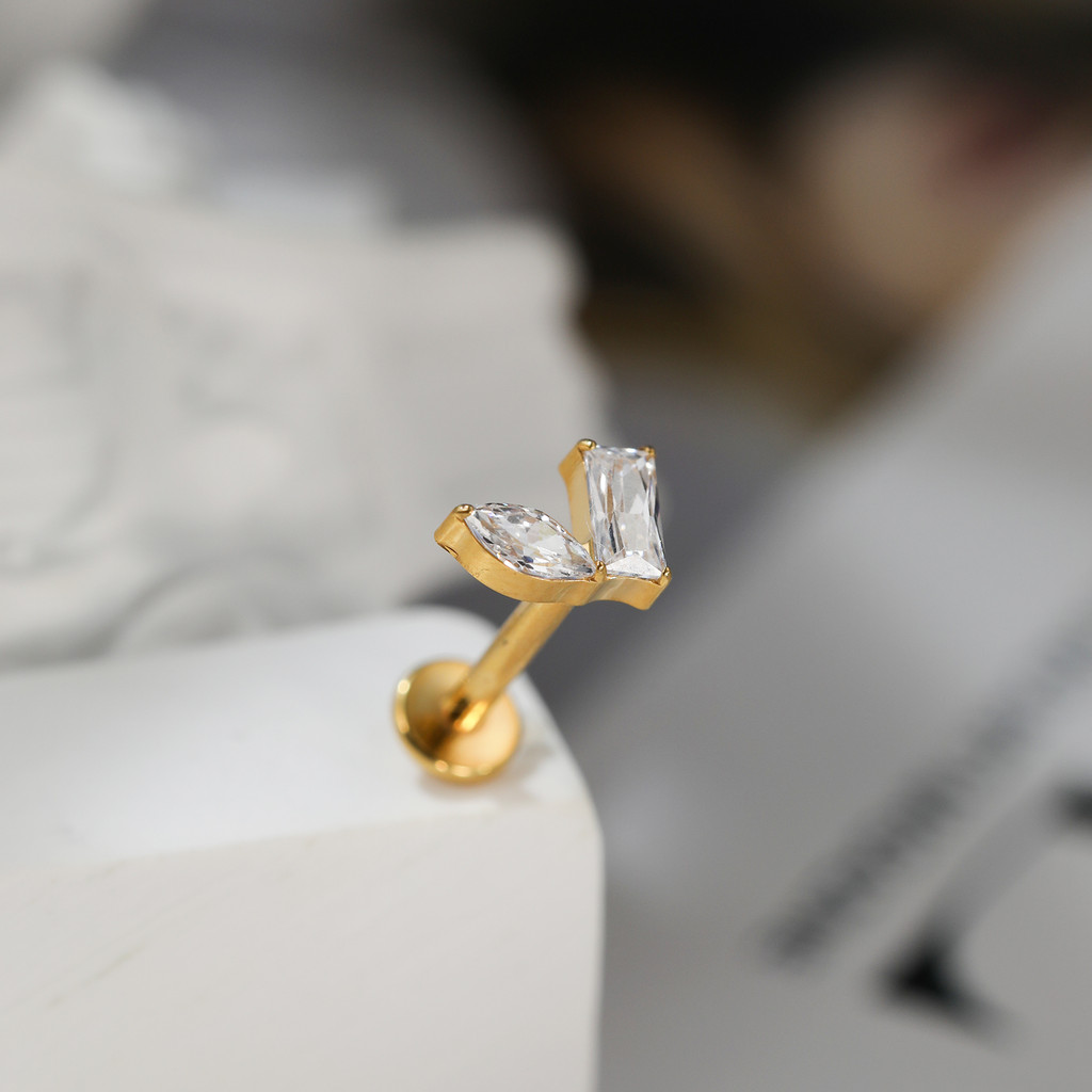 Piercing Labret Titânio Helix Tragus Conch 2 Pedras Zircónia Cravejada