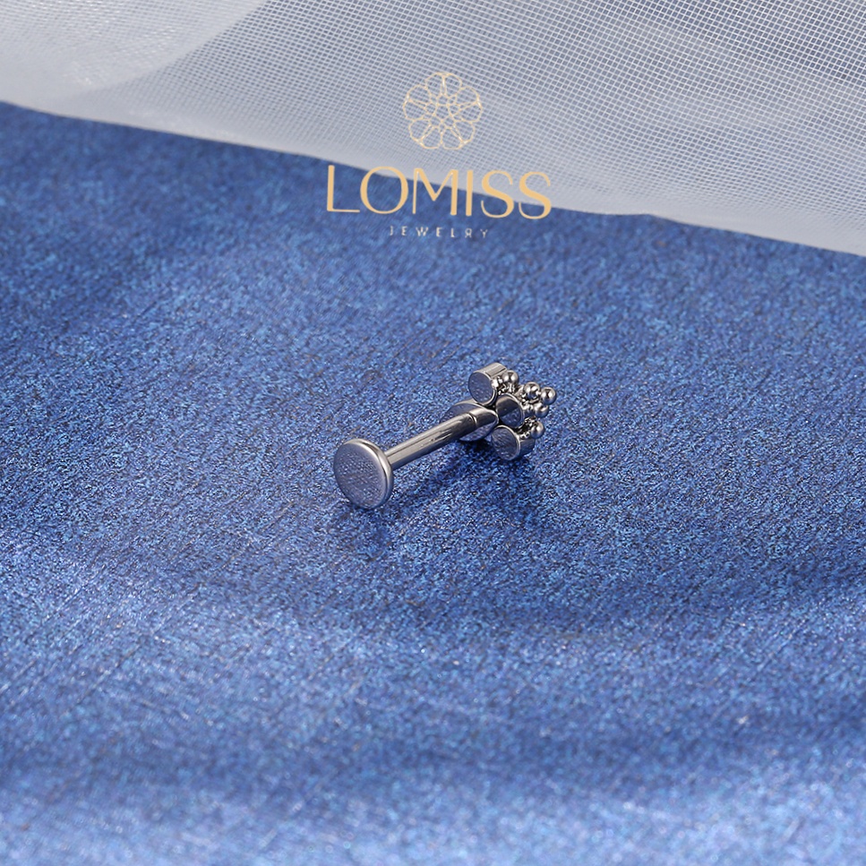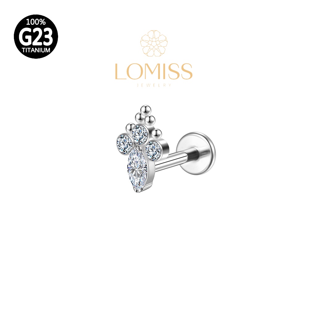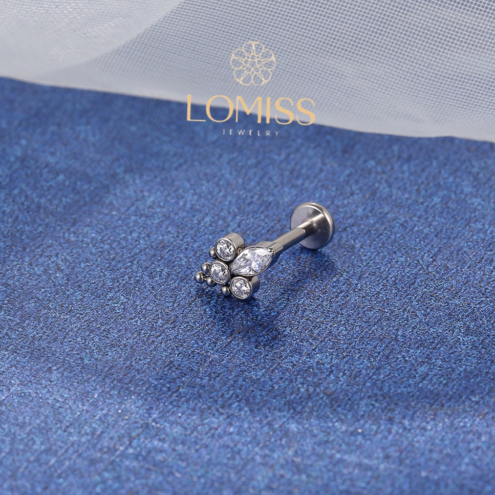 Piercing Helix Conch Labret Titânio 4 Pedras Zircônia Cravejada《Lomiss semijoias》
