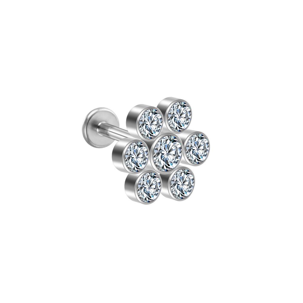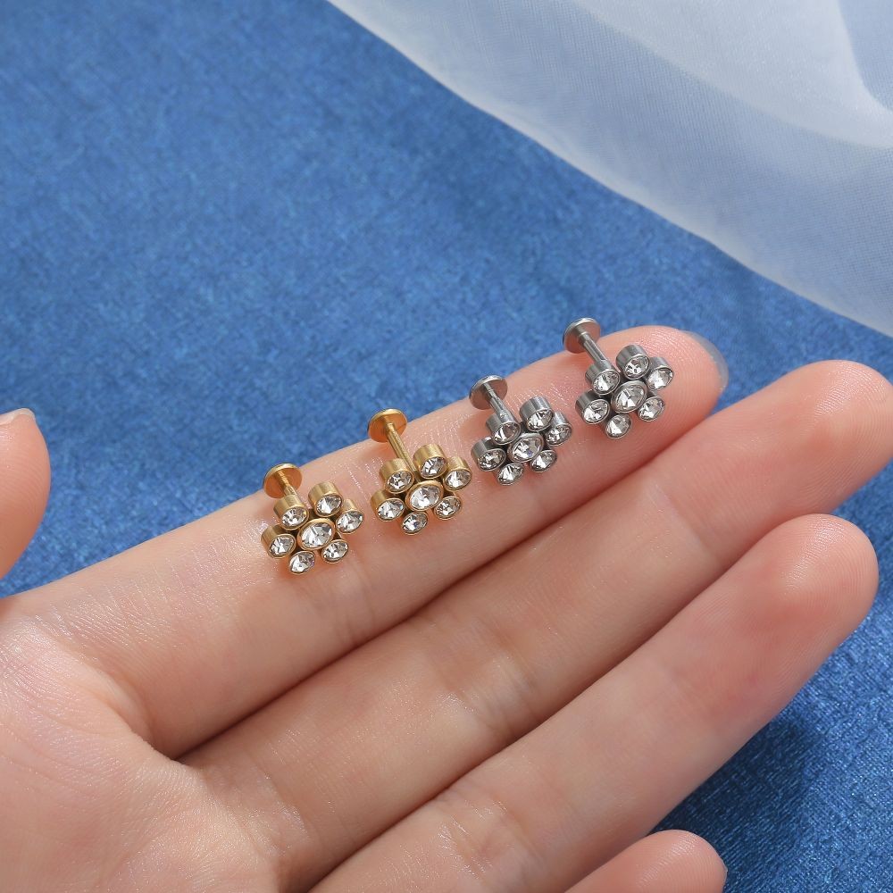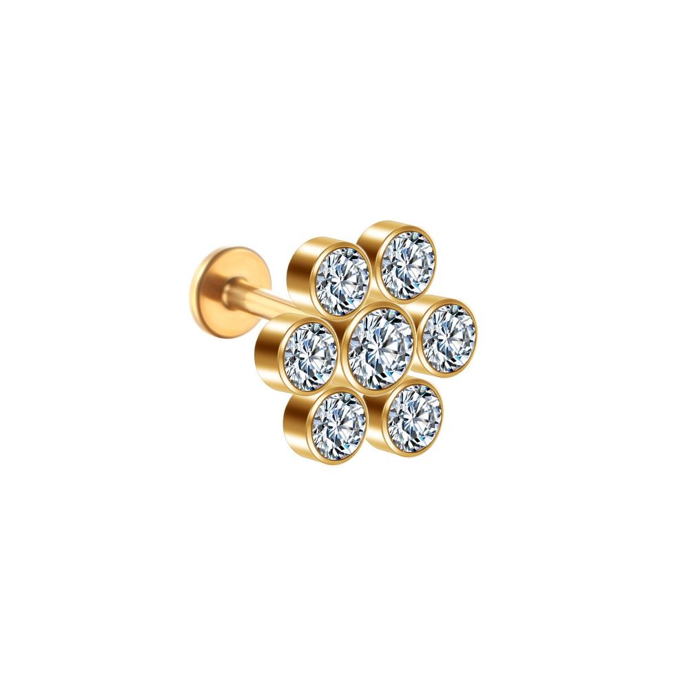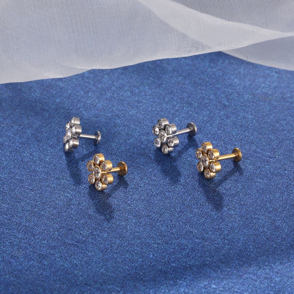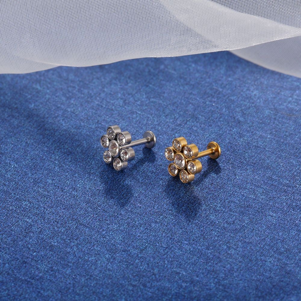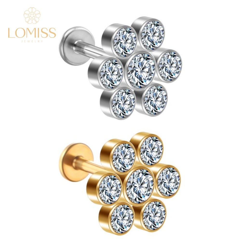 Lomiss Piercing Helix Tragus Conch Labret Aço Cirúrgico Pvd Flor Strass