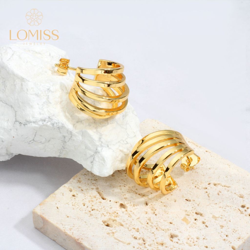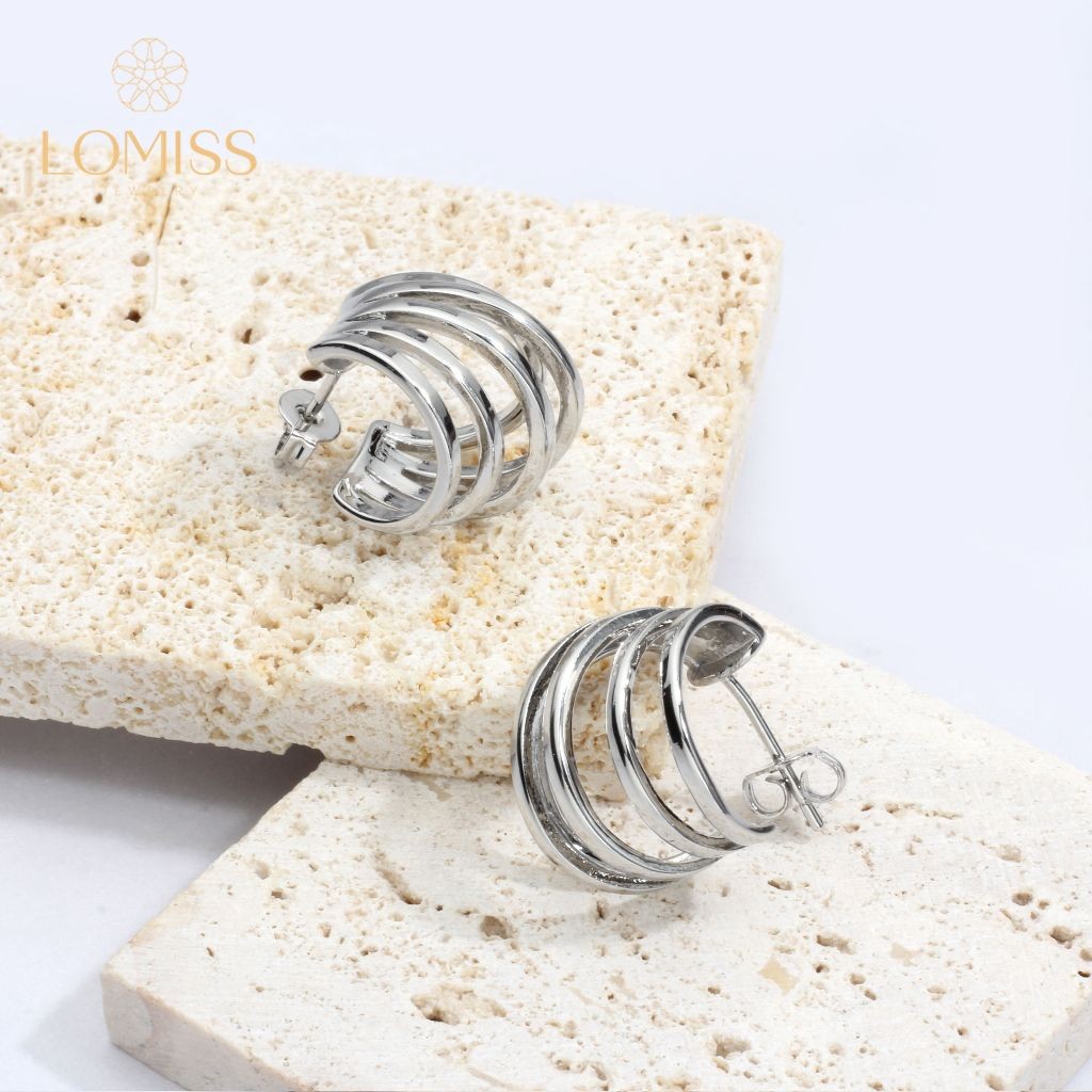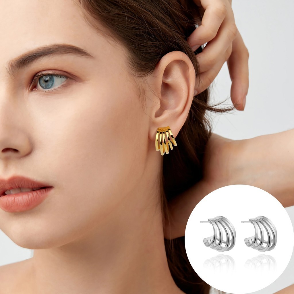 Brinco Delicado Luxo Femenino Curvo Folheado Minimalista Brilho Curvo Folheado Platina Liso