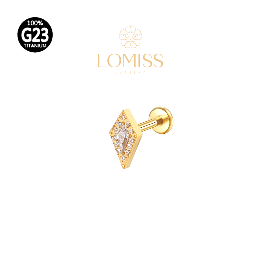 Piercing Helix Tragus Conch Labret Titânio Pvd Losango Zircônias Cravejadas