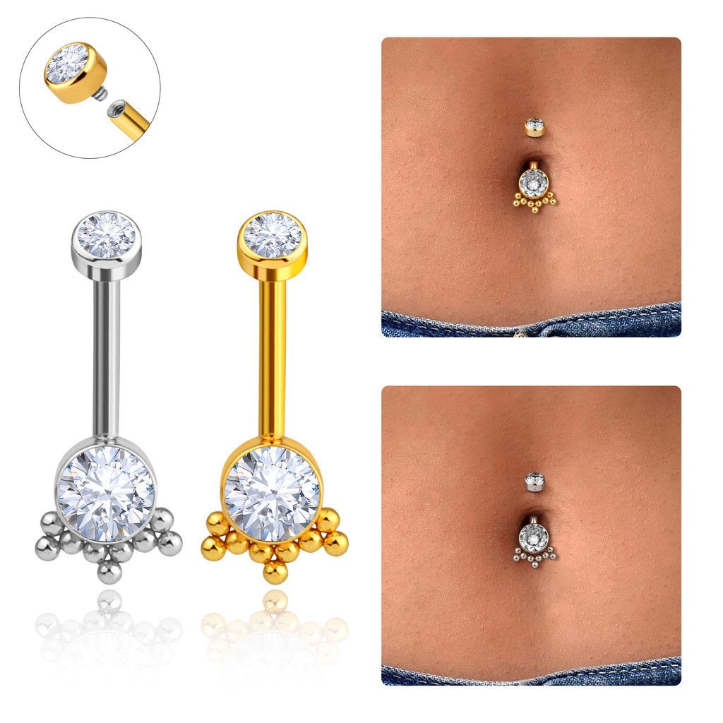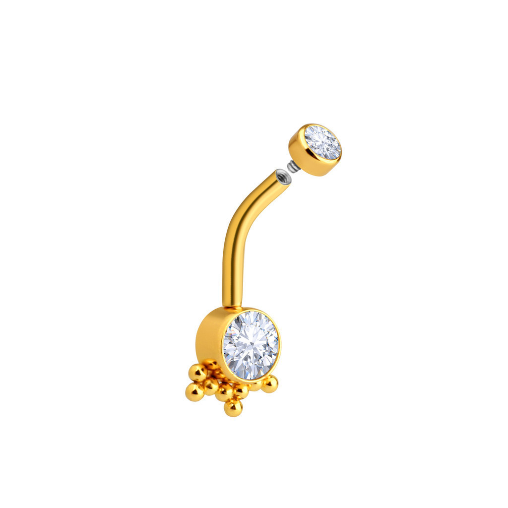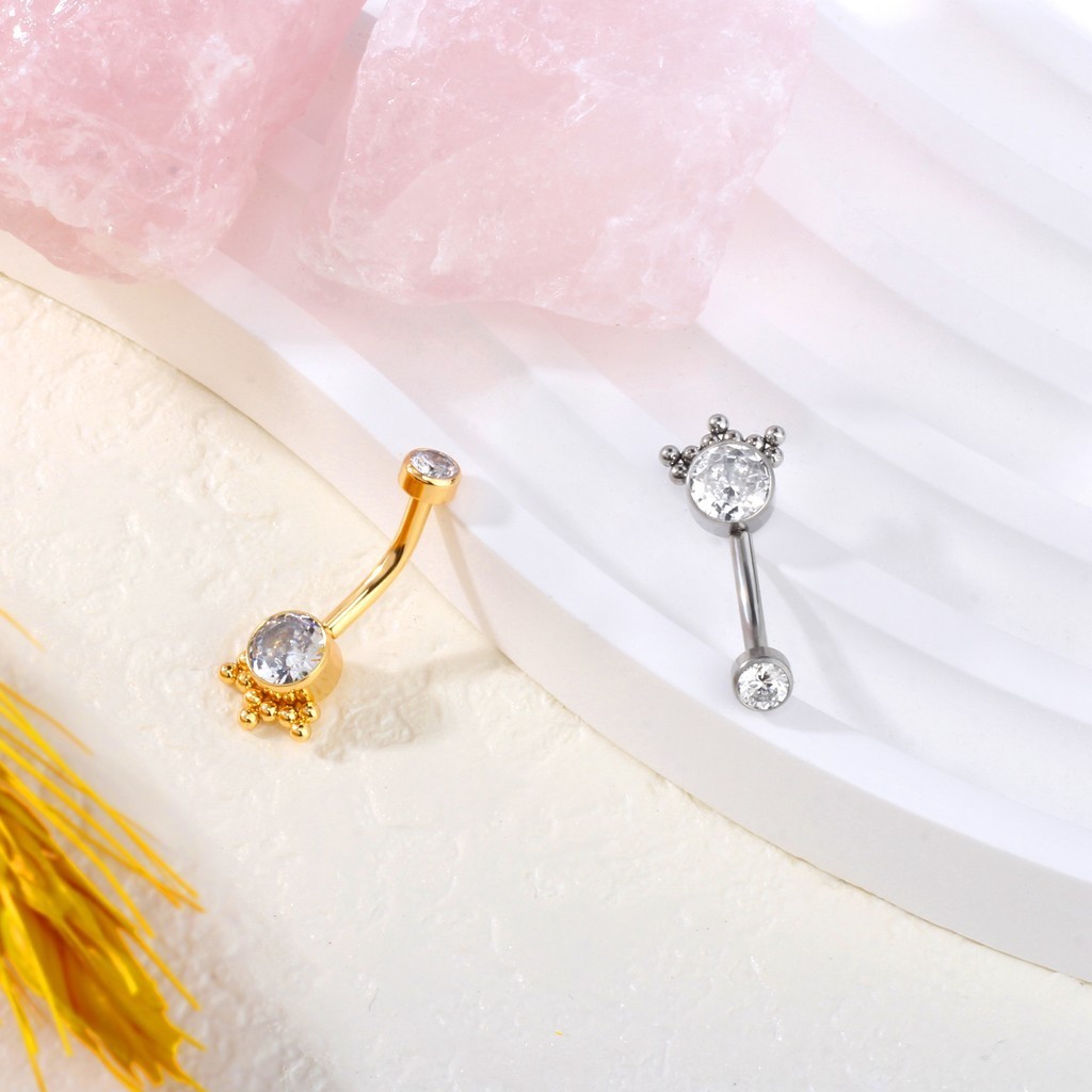 【LOMISS】Piercing Umbigo Grande Banana Aço Cirúrgico Pvd Indiano Zircônia Dourado
