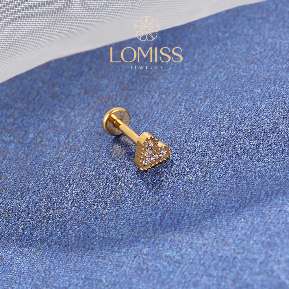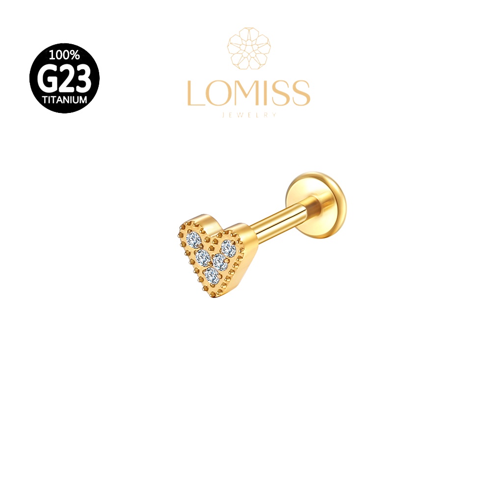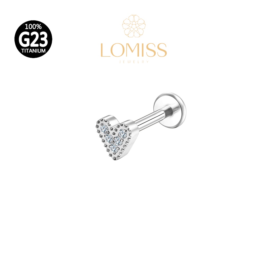 Piercing Labret com Acabamento em Titânio PVD e Forma de Coração com Zircônia《Lomiss semijoias》