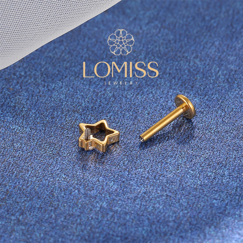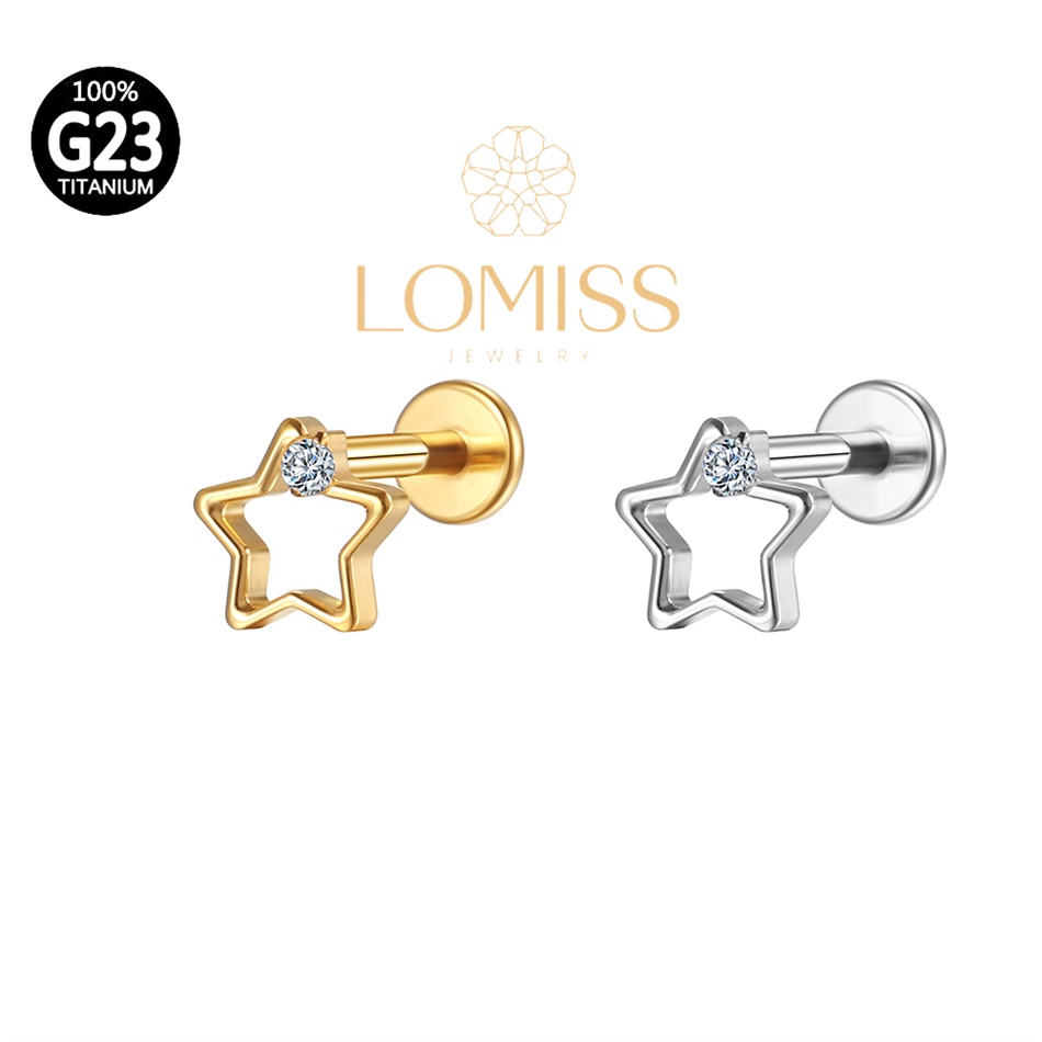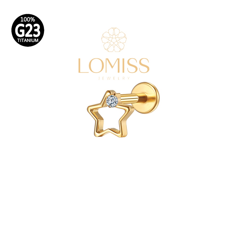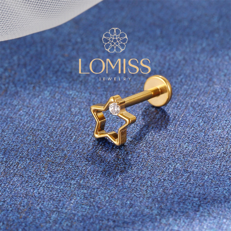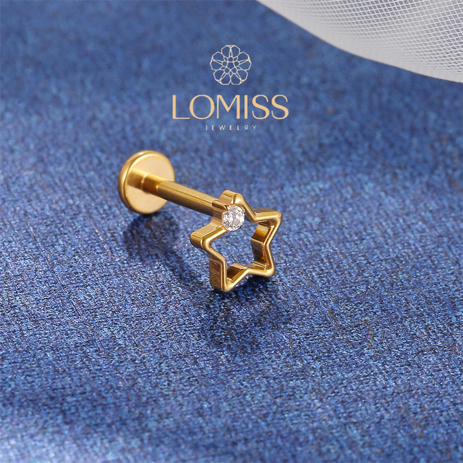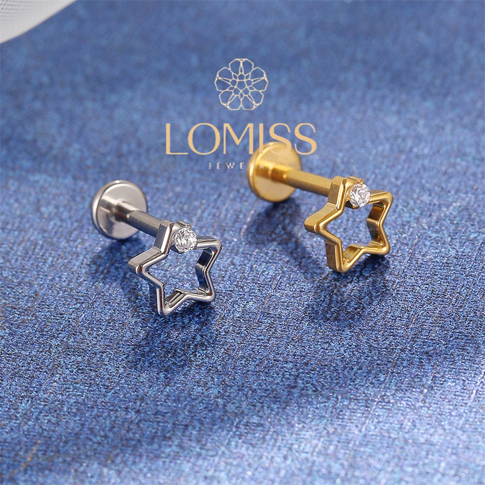 Piercing Helix Conch Labret Titânio Pvd Estrela Vazada 1 Zircônia《Lomiss piercing》