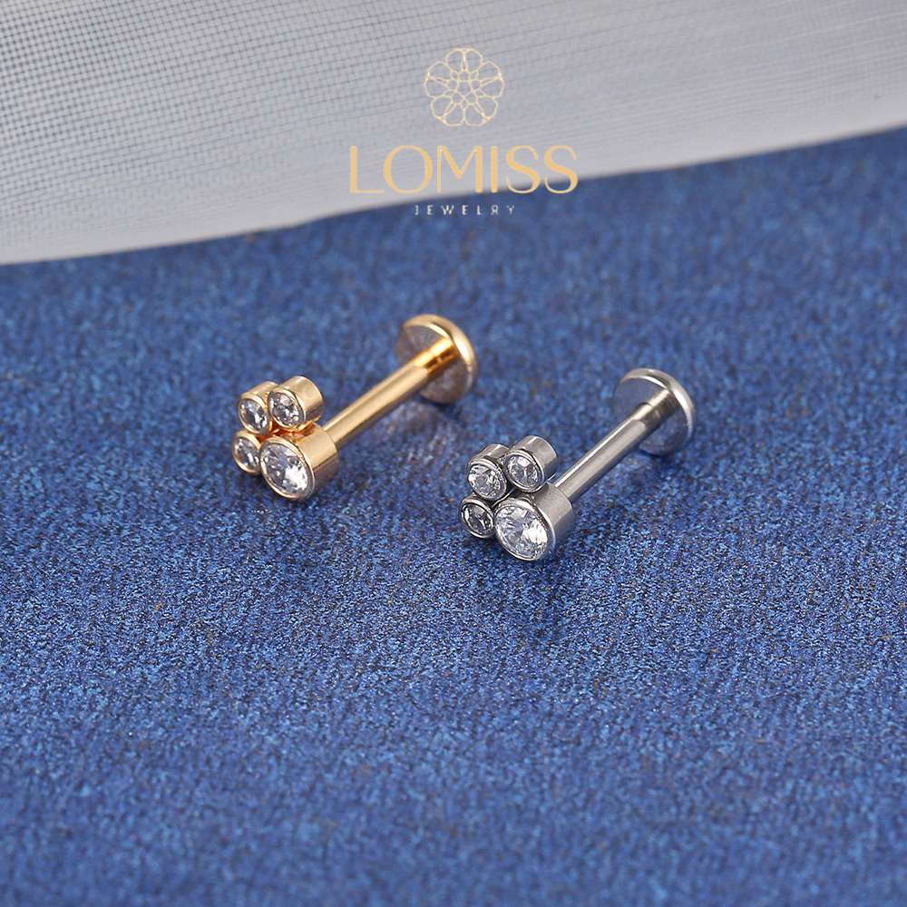 Piercing Helix Tragus Conch Boca-Medusa Labret Aço Cirúrgico Pvd Zircônias