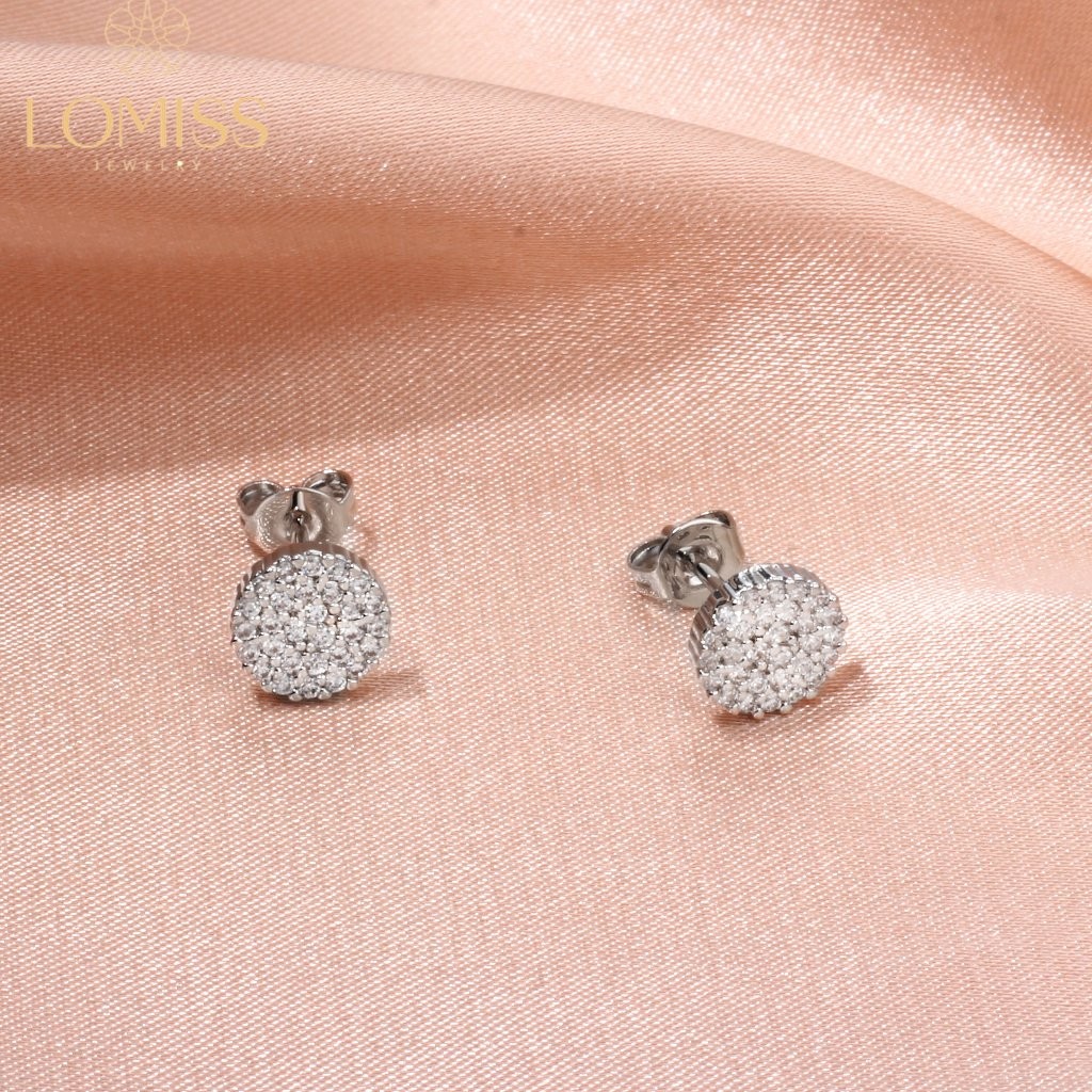 Brinco Delicado Elegante Antialérgico Coreanos Feminino Redondo De Strass Pizza Folheado Ouro 18k a Platina Com Zircônia Luxo