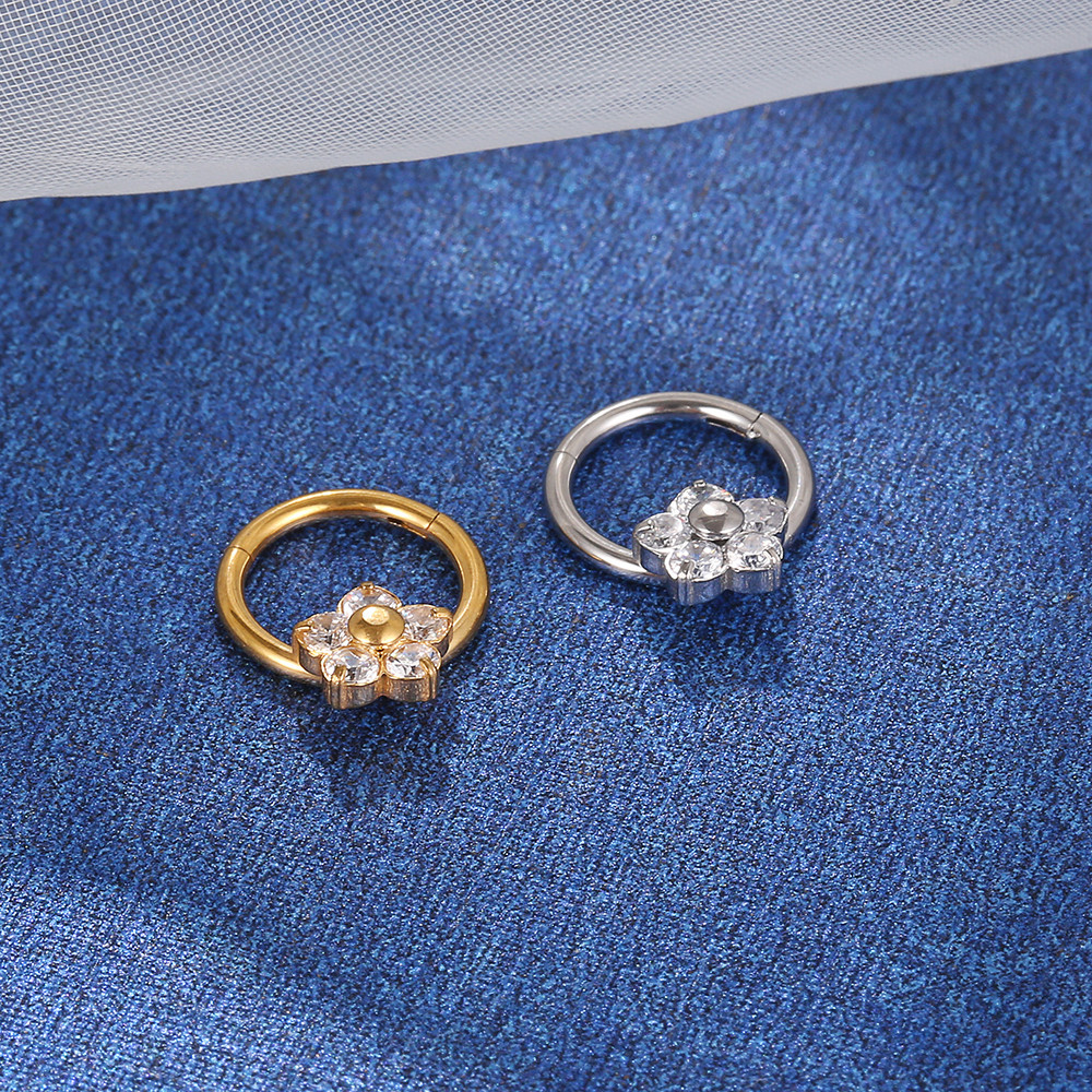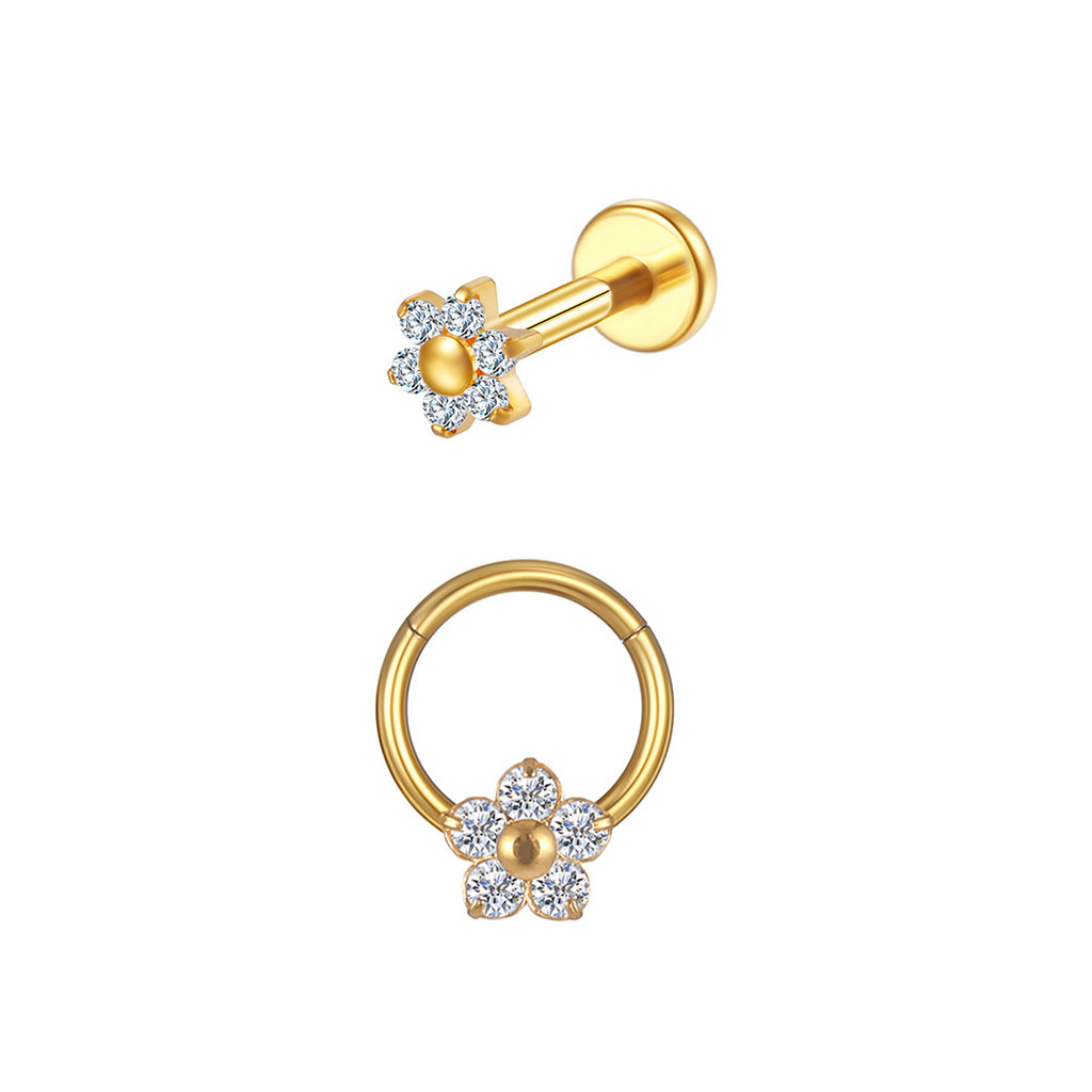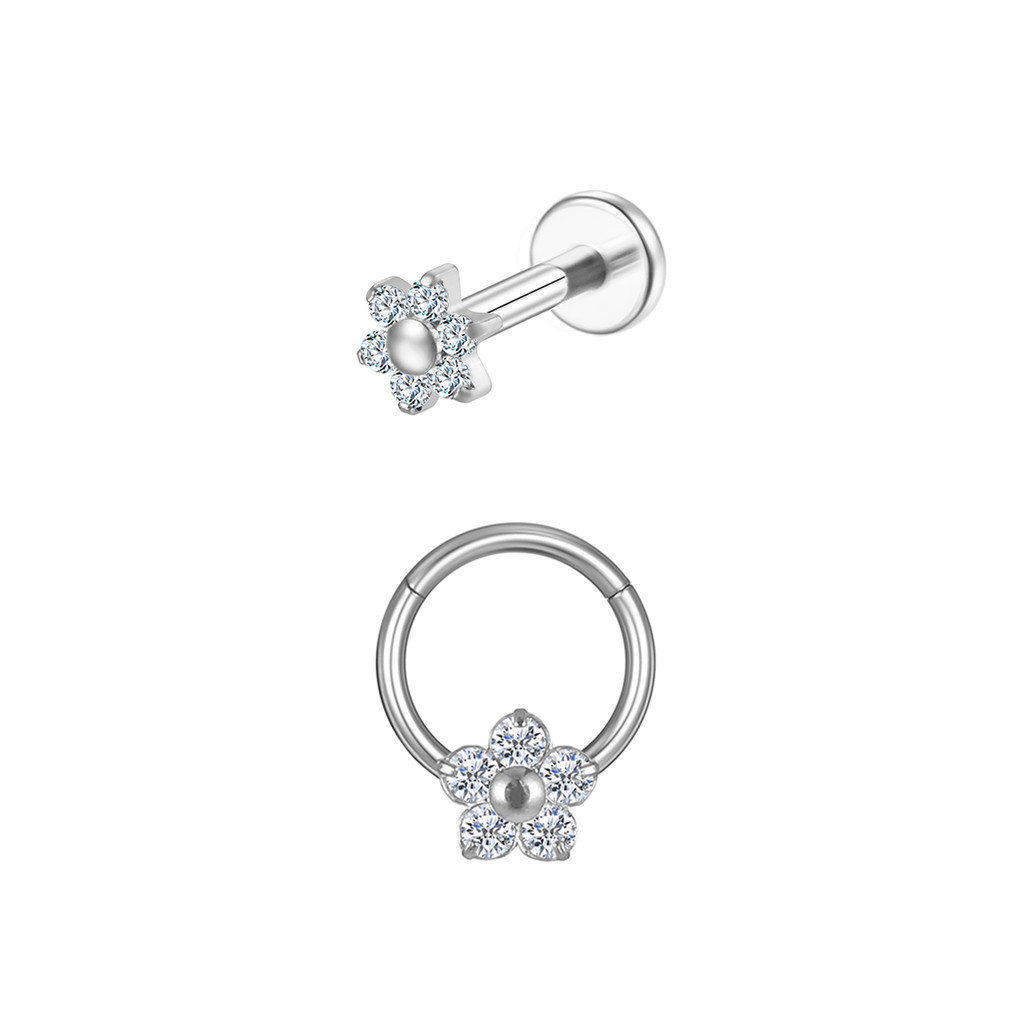 2PCS Kit Piercing Labret Aço Cirúrgico Flor Zircônias Ponto De Luz Helix Tragus