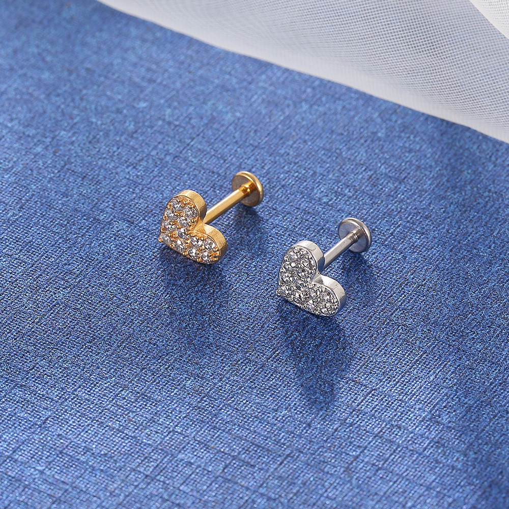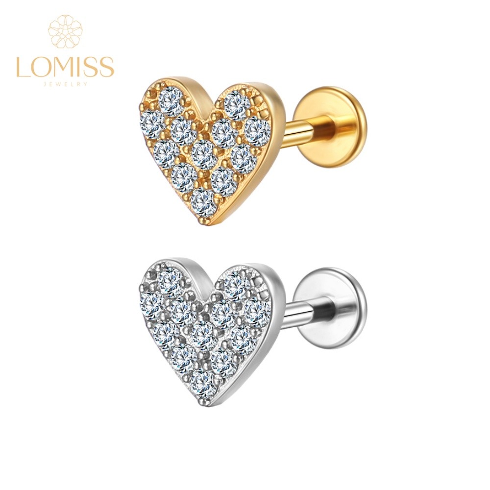 Lomiss Piercing Orelha Helix Tragus Labret Aço Cirúrgico Coração Zircônia Cravejada