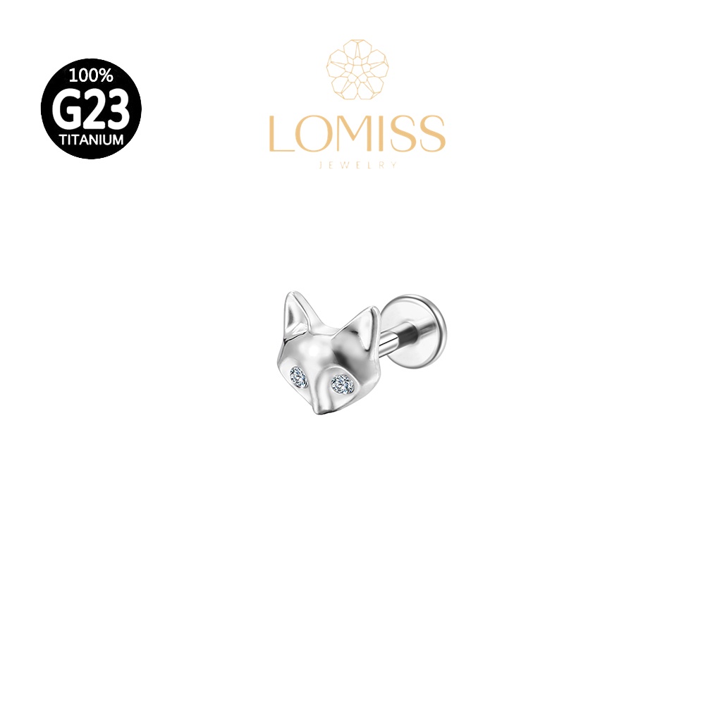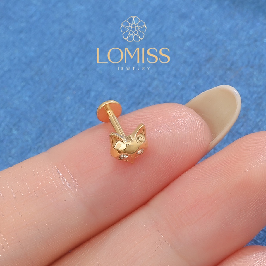 Piercing Helix Conch Labret Titânio PVD Zircônia Brilhante Forma Raposa
