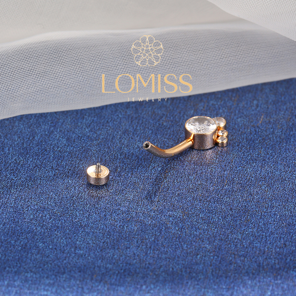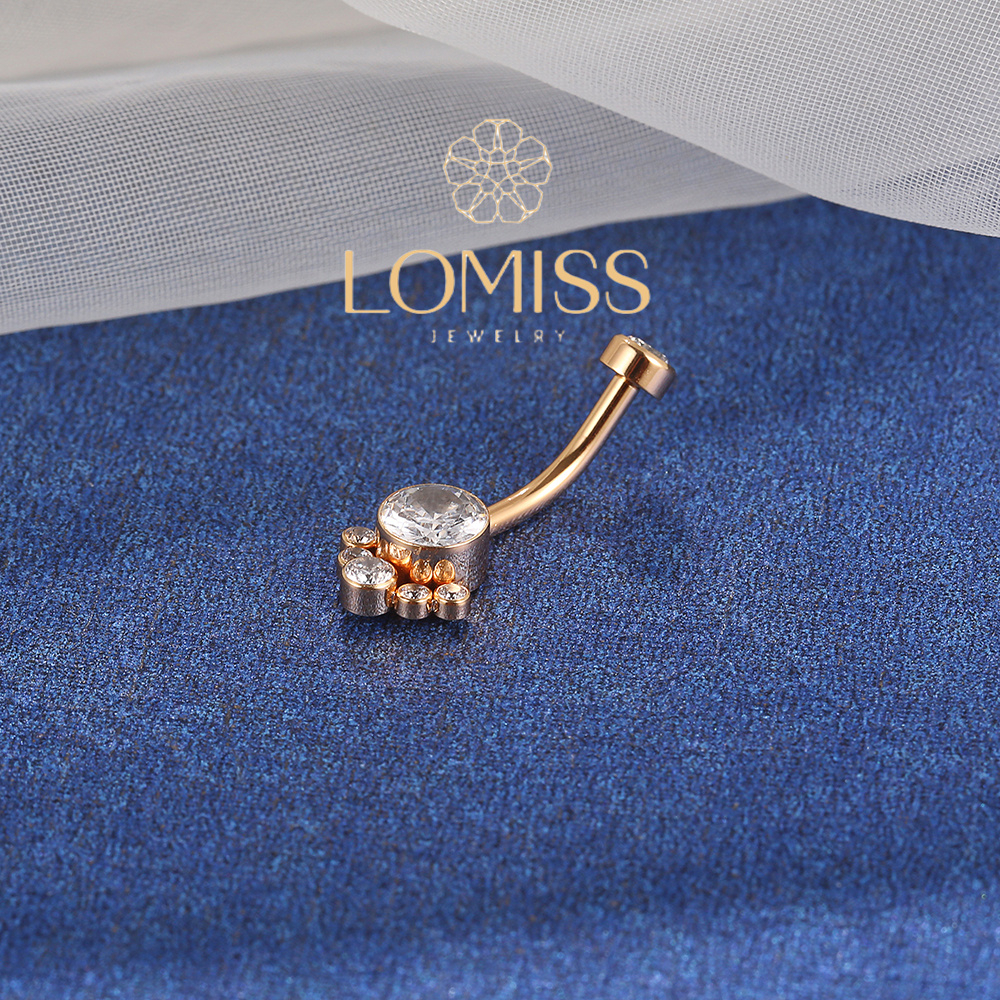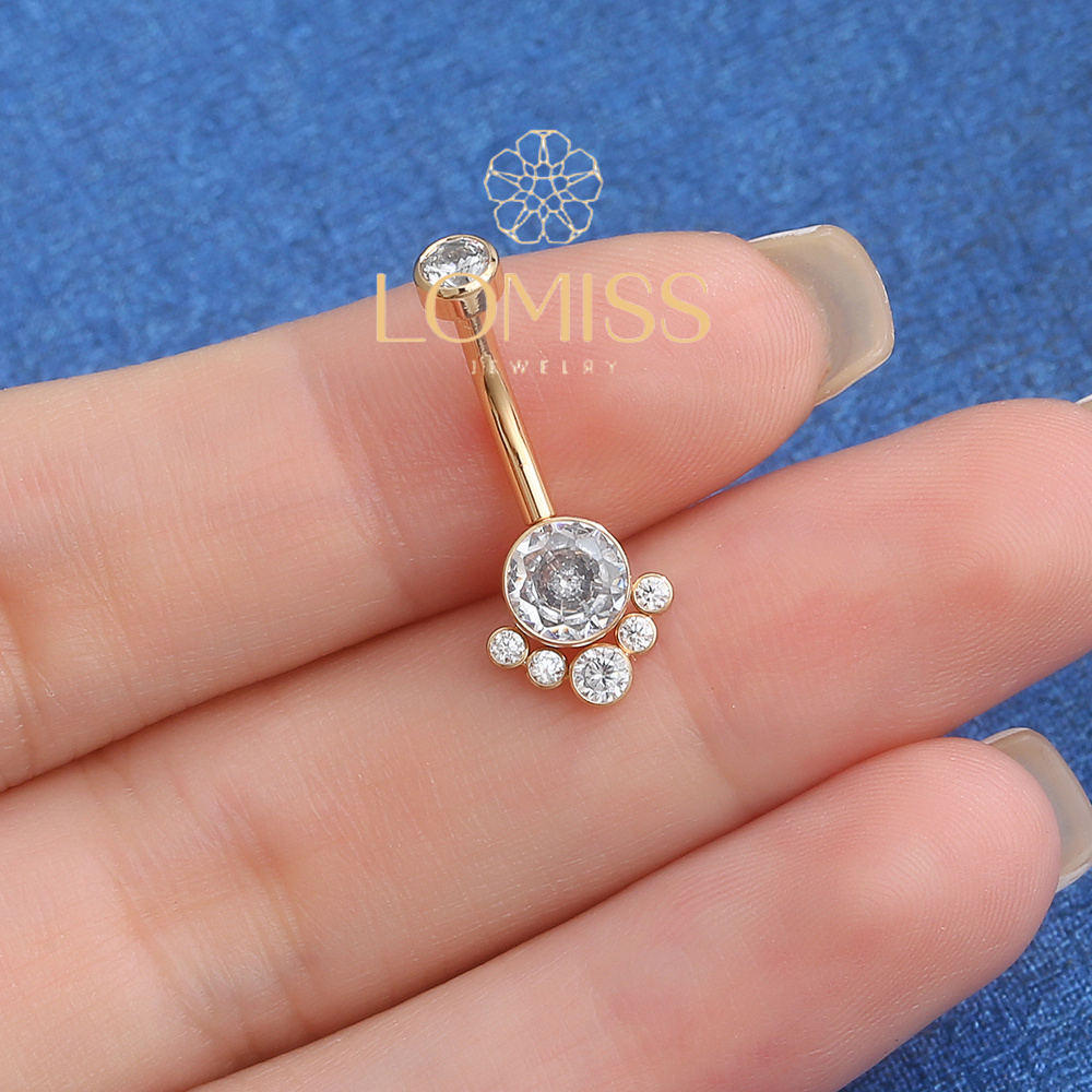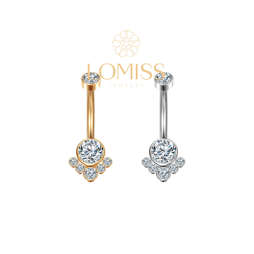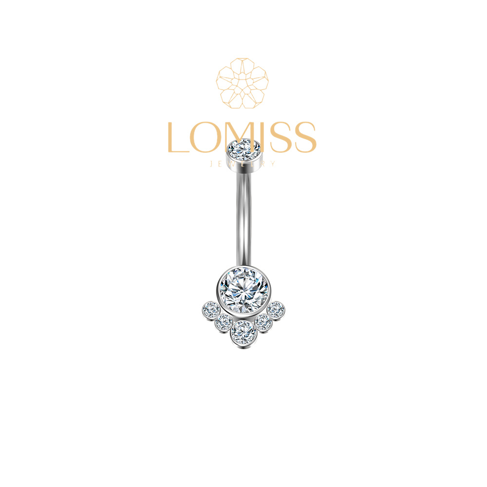 Piercing Umbigo Banana Aço Cirúrgico 7 Zircônias Cravada 1.6x10