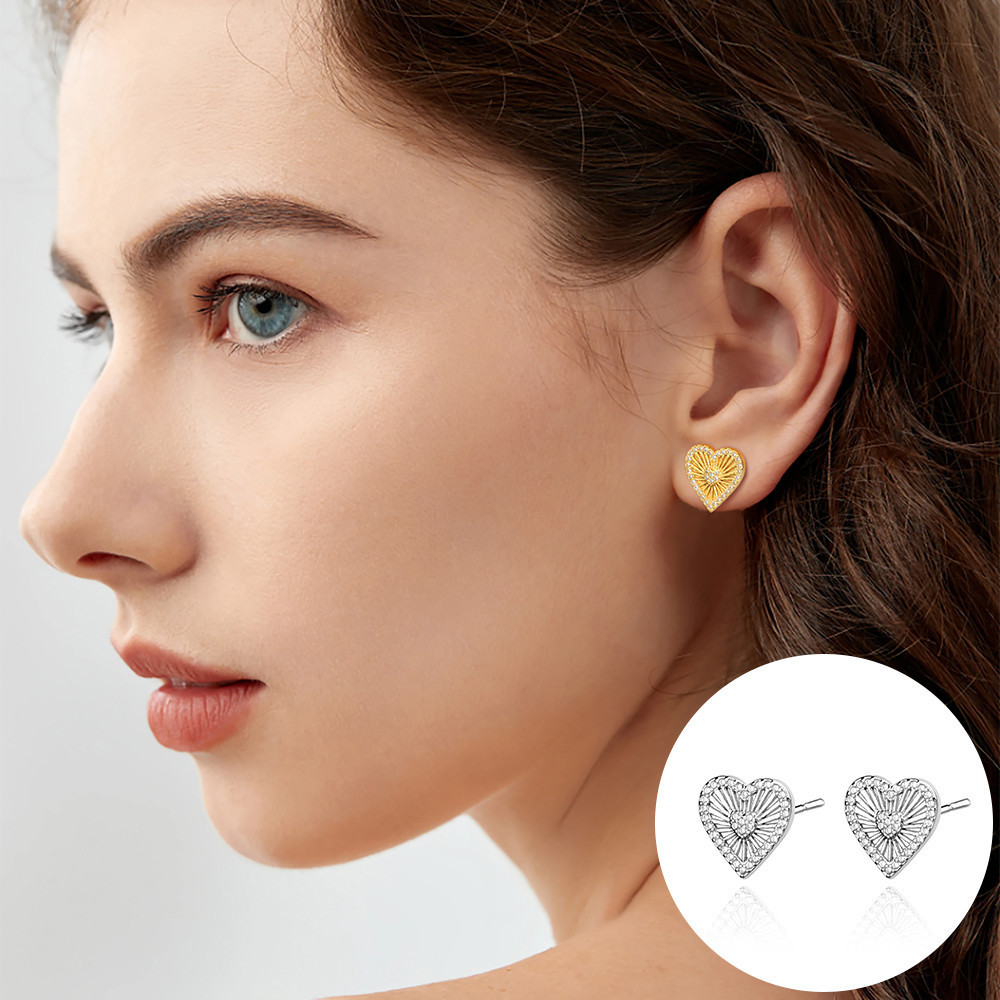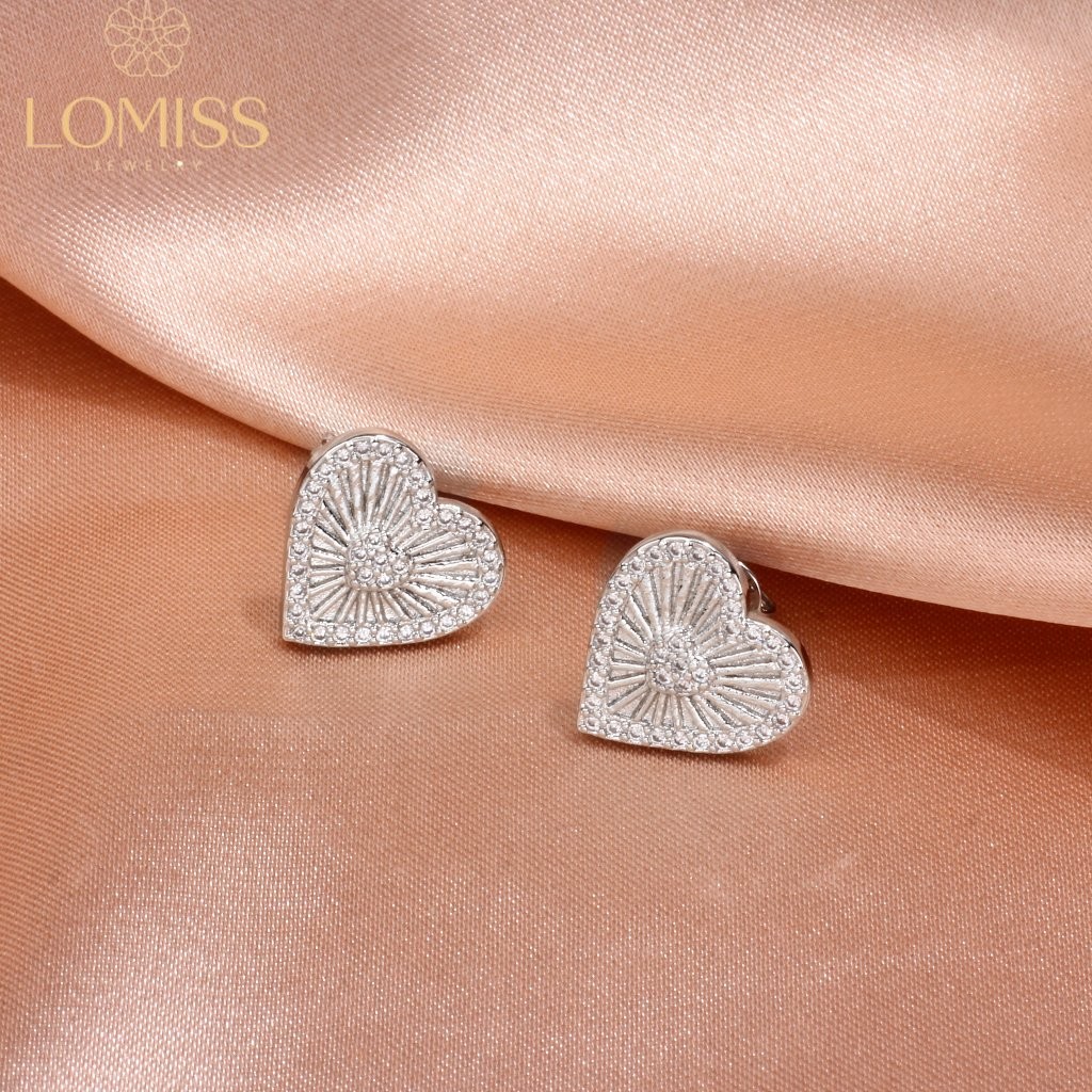 Brinco Delicado Elegante Antialérgico Coração Detalhado Folheado a Platina Zircônia Cravejada