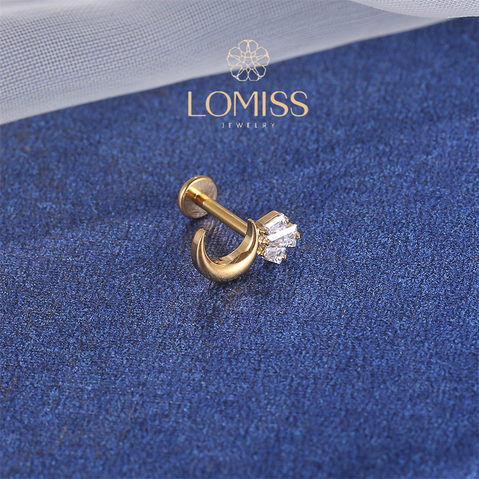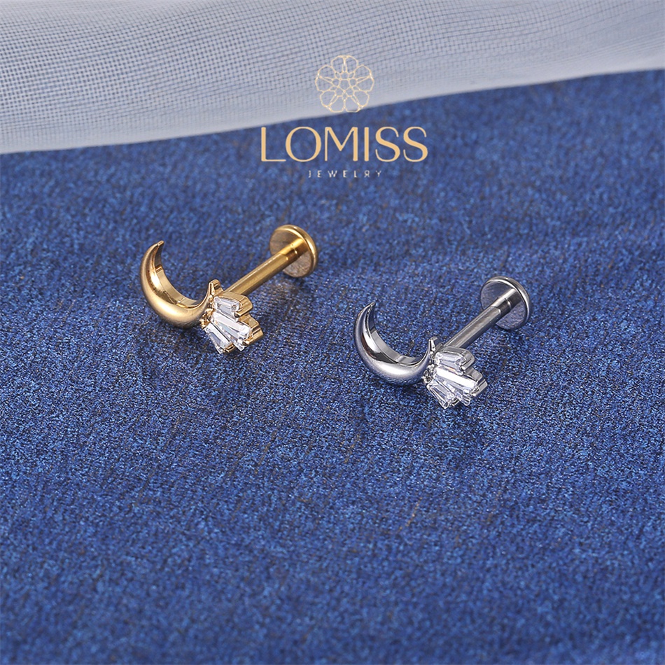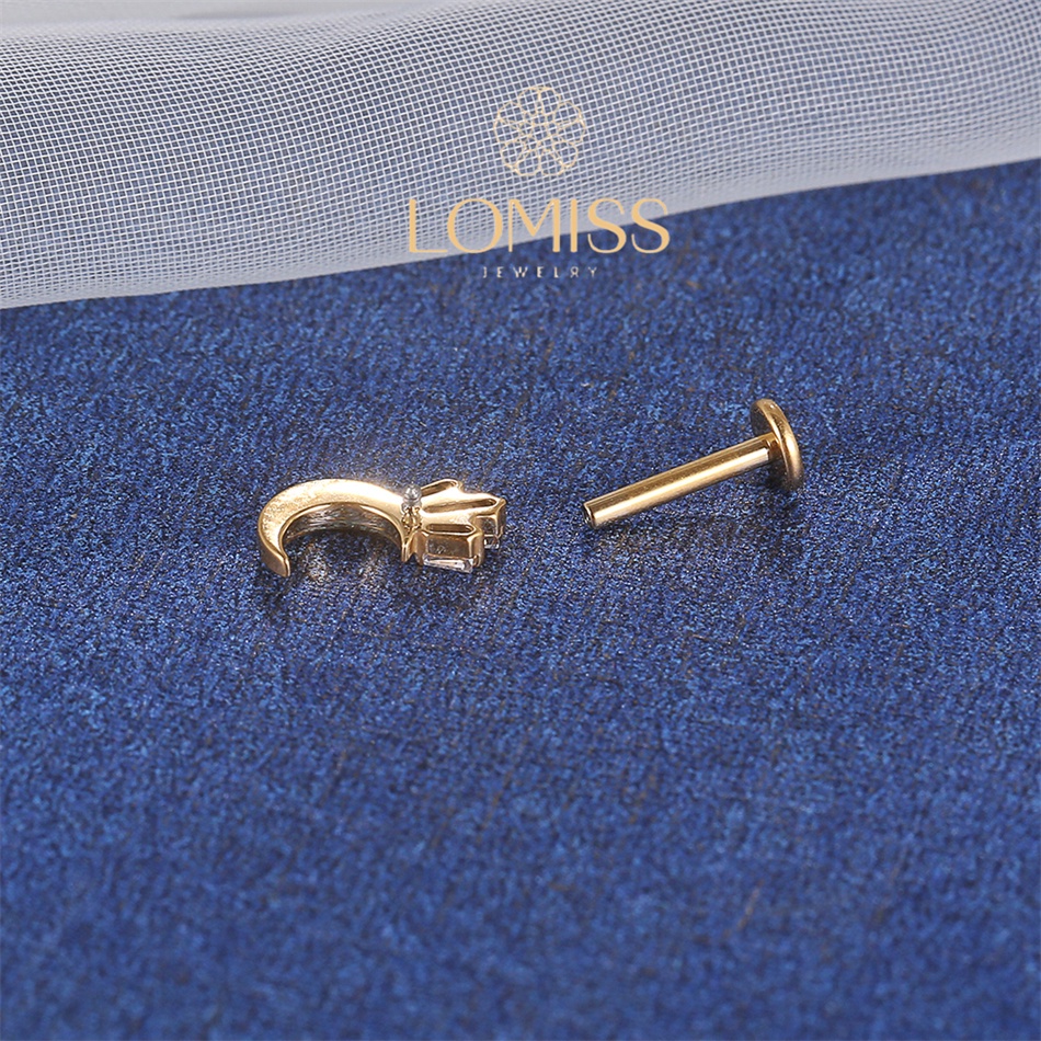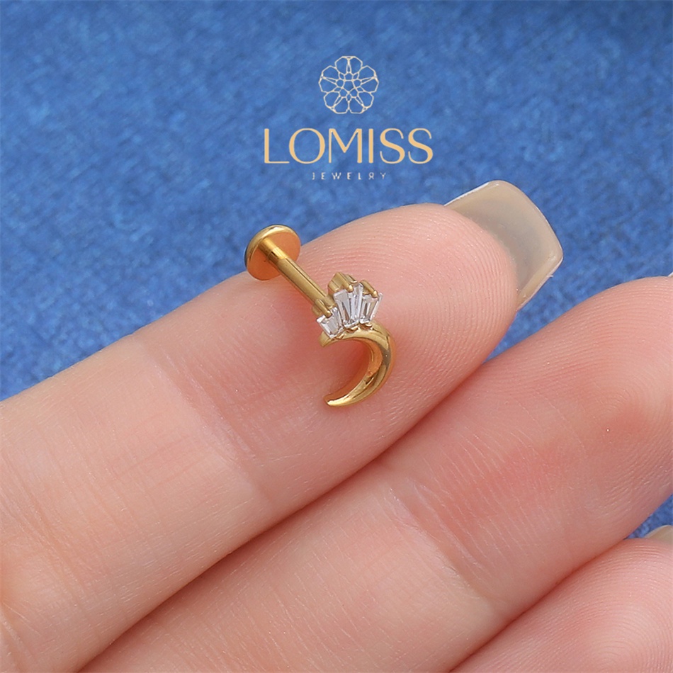 Piercing Labret Titânio Lua Com Zircônia Coroa 1,2x8