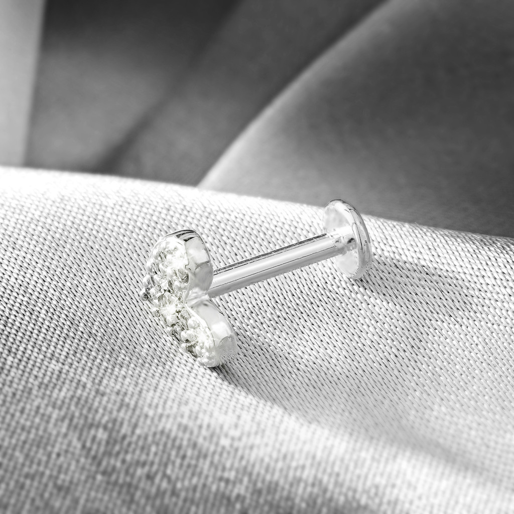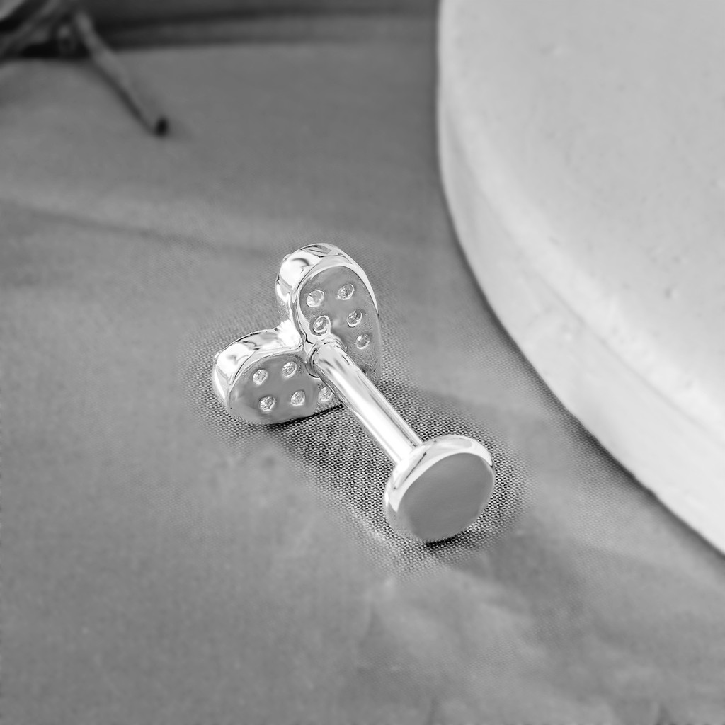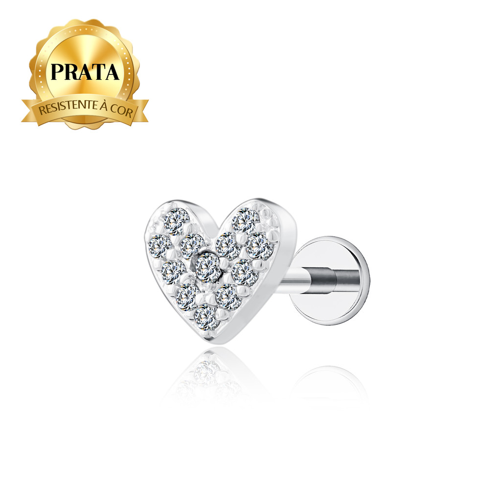 Piercing Orelha Prata 925 Coração Zircônias Cravejado Para Labret Lateral Tragus Conch Helix Lábios Nariz Boca