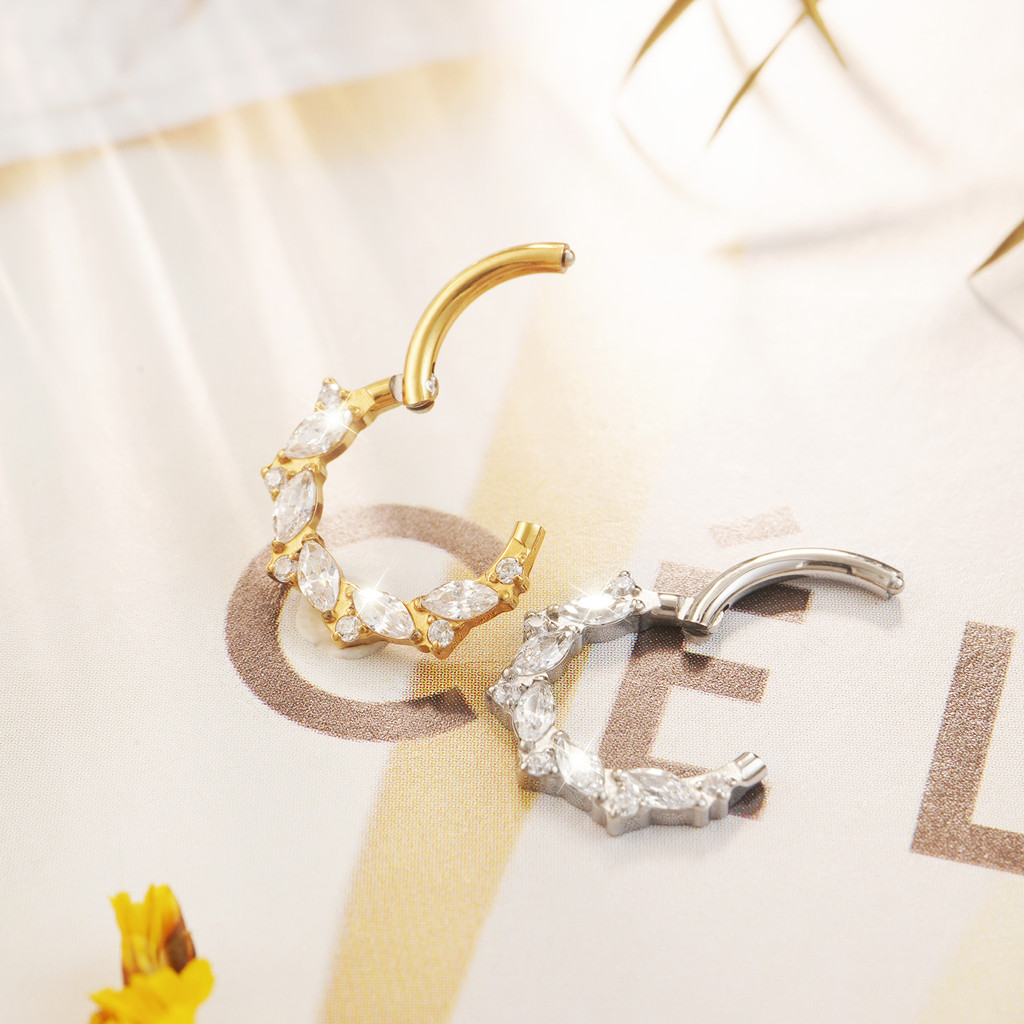 Piercing Argola Septo Titânio Zircônia Cravejada Frontal Nariz Orelha Conch Nostril Daith Helix