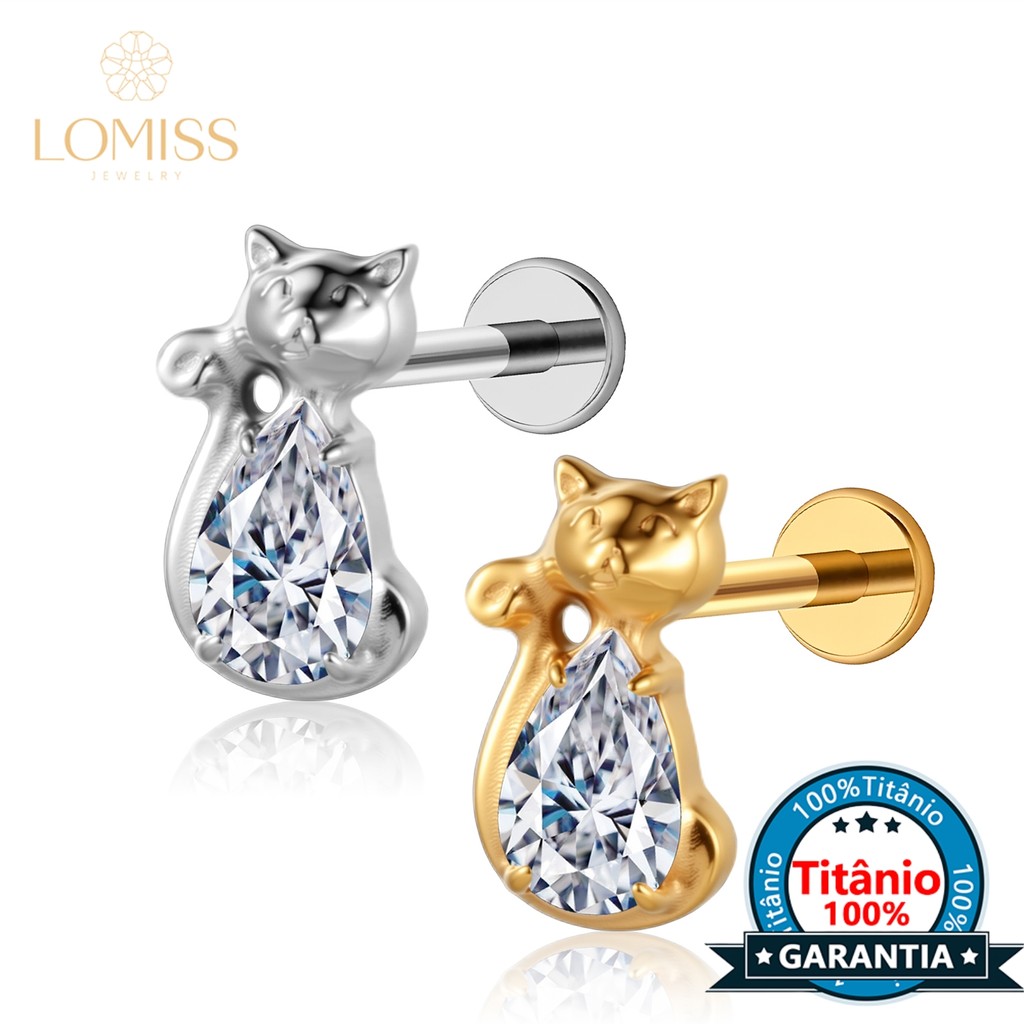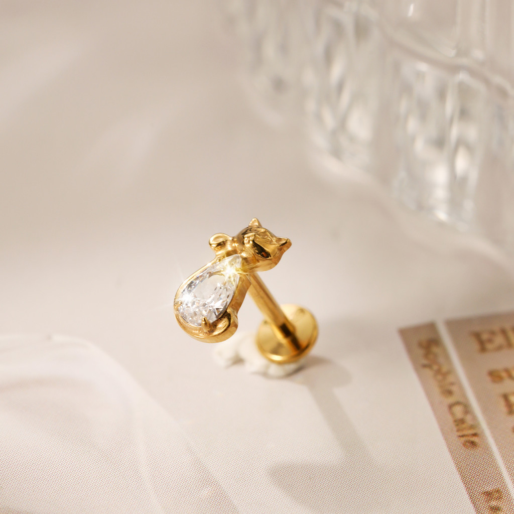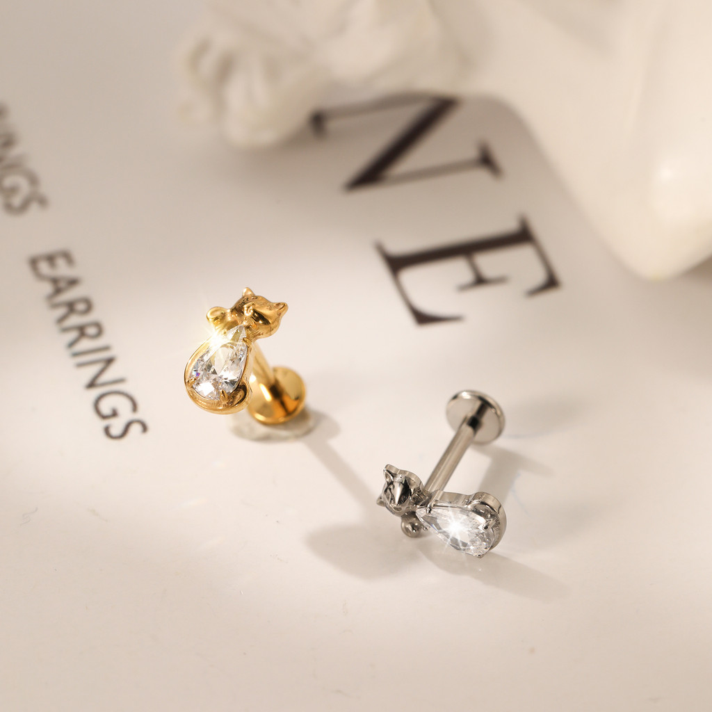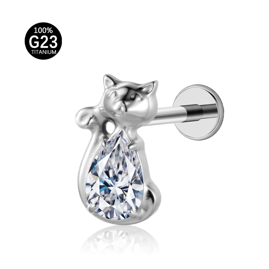 Piercing Conch Labret Titânio Gatinho Zircônia Cravejada Helix Tragus Ponto de luz
