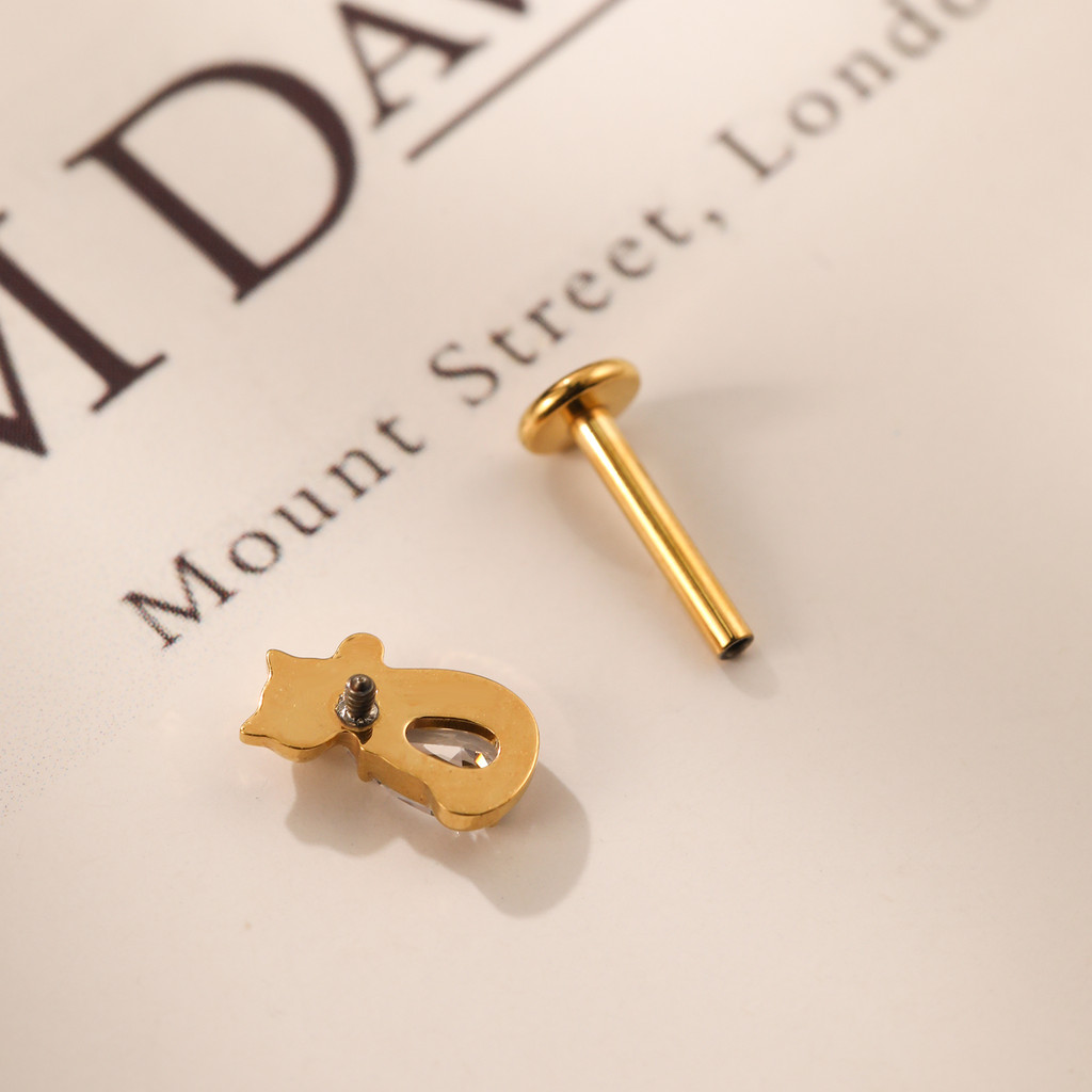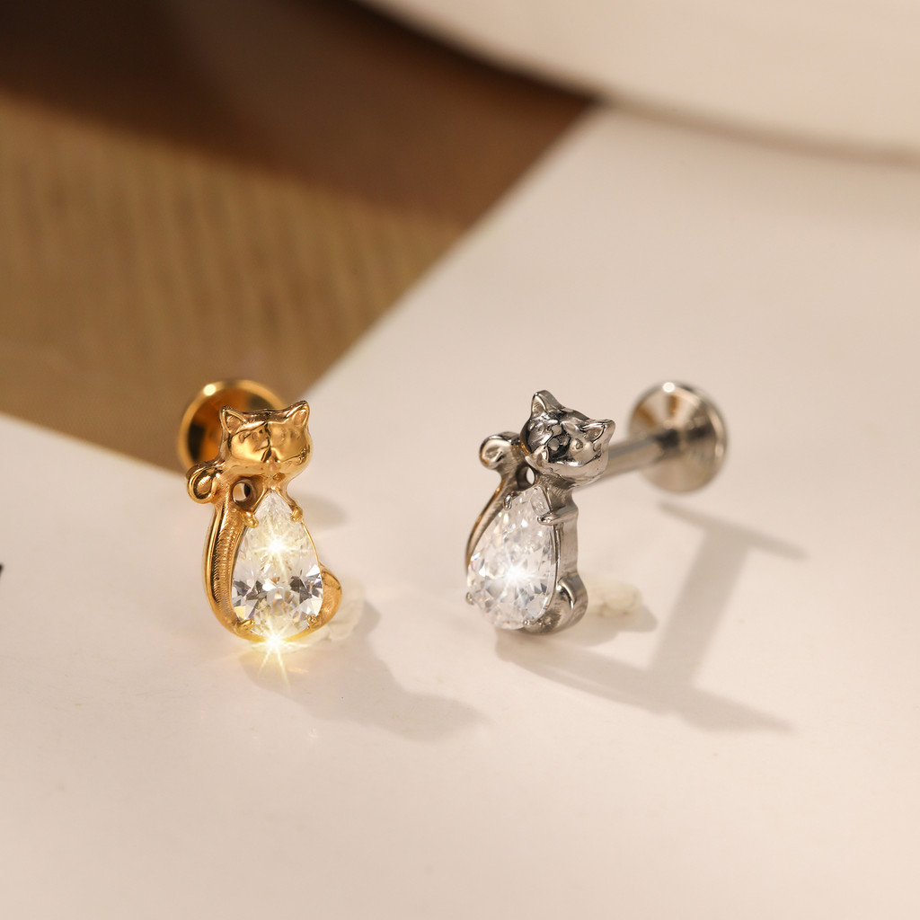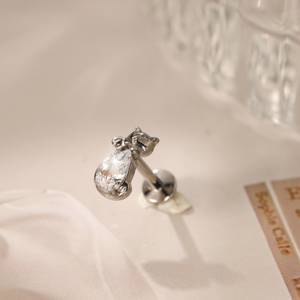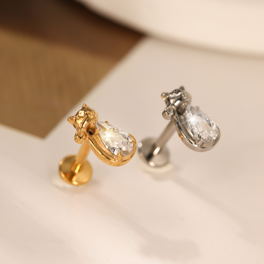 Piercing Conch Labret Titânio Gatinho Zircônia Cravejada Helix Tragus Ponto de luz