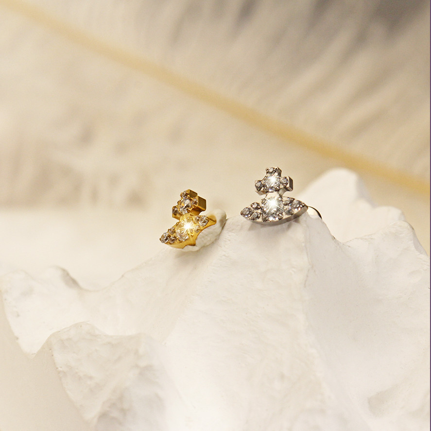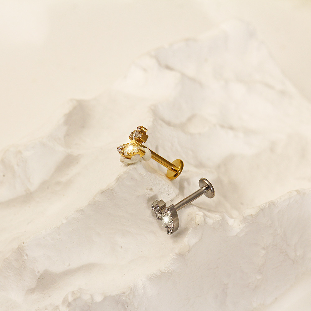 Piercing Labret Titânio Cruz & Olho Com Zircônia Cravejada Para Orelha Lábio Helix Tragus Conch Cartilagem Nariz Boca