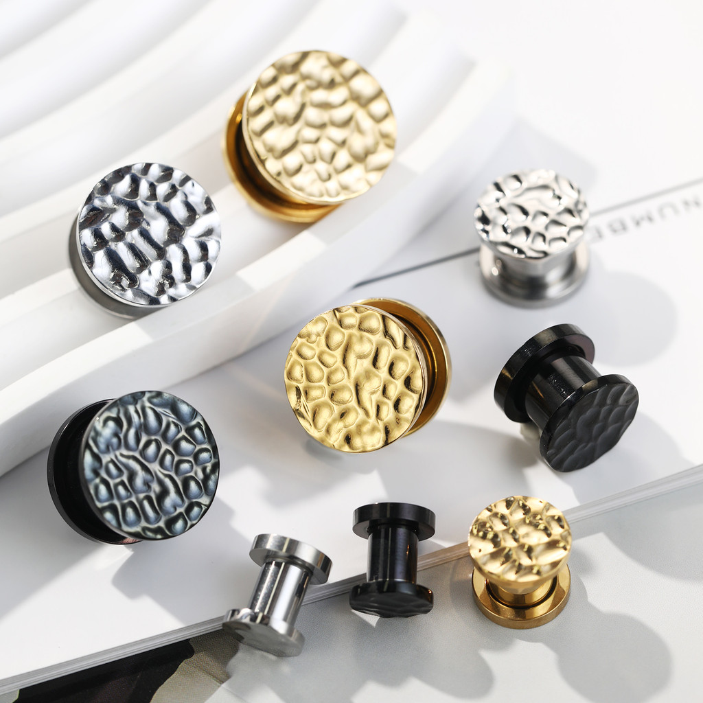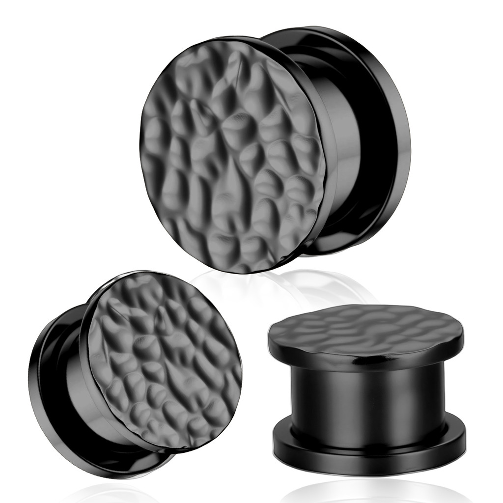 Alargador de Orelha Personalizado Aço Cirúrgico Black Topo Ondulado Detalhado