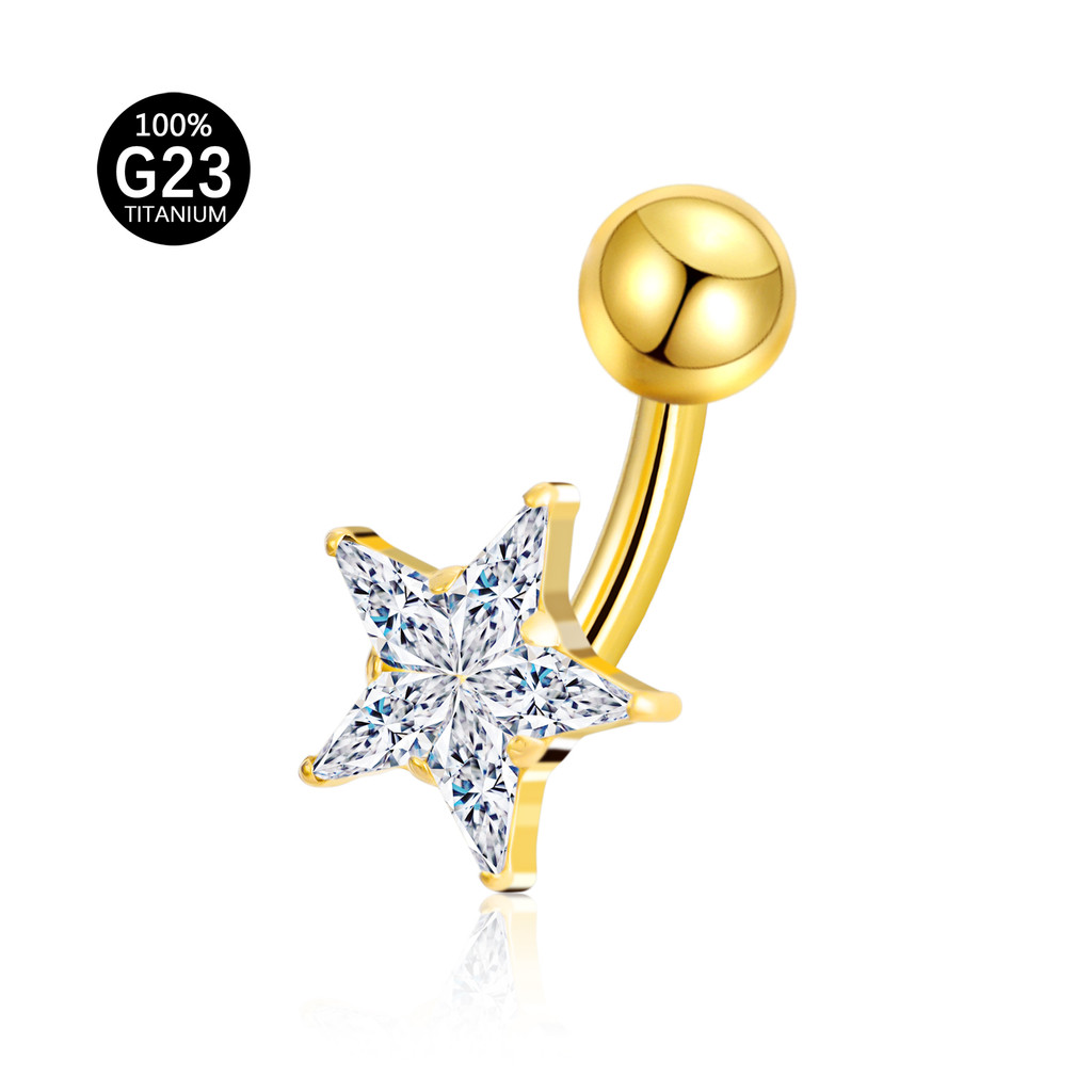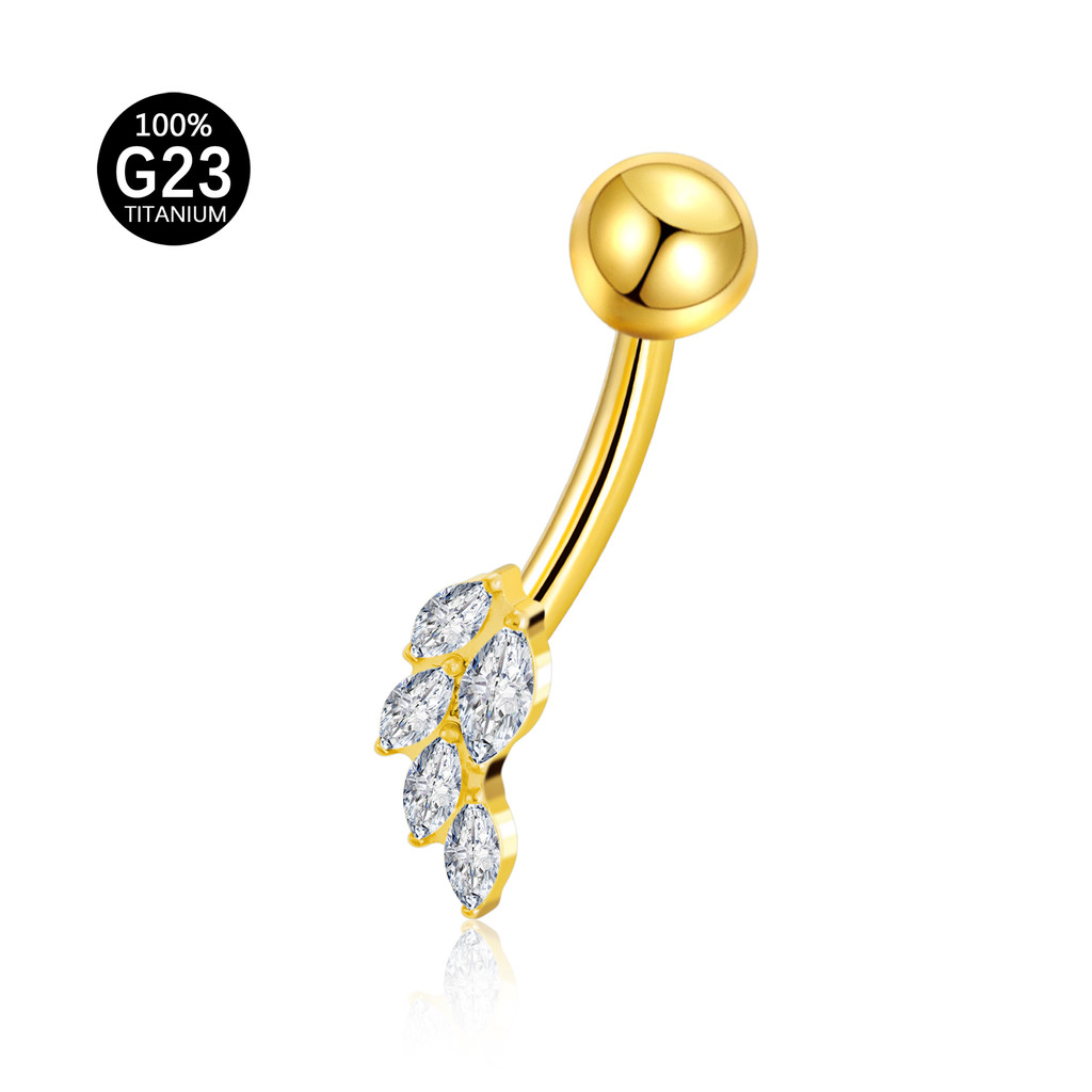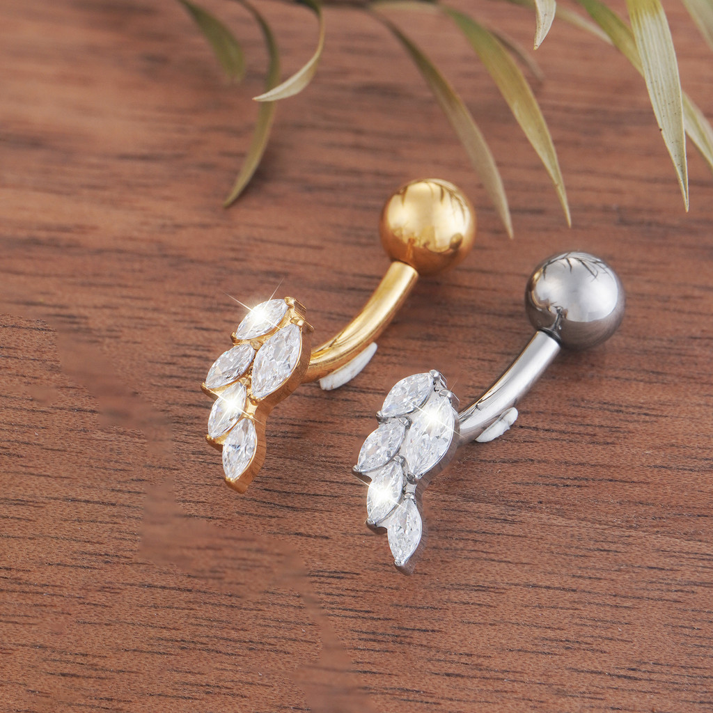 Piercing Umbigo Banana Titânio Folhas Zircônia Cravejada Estrela