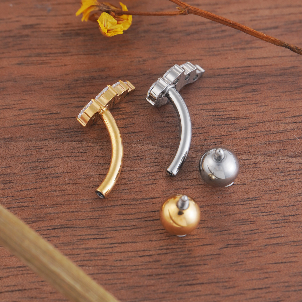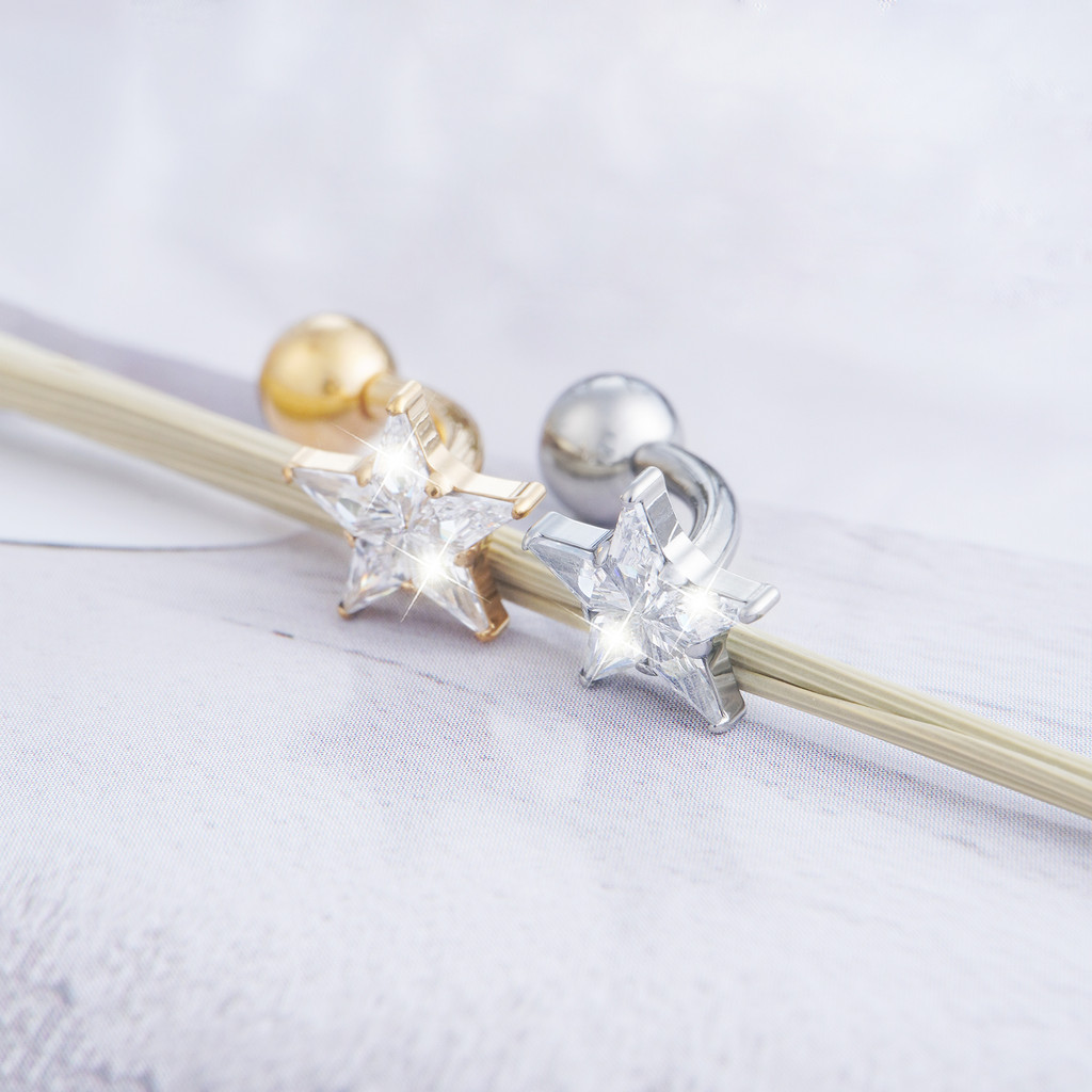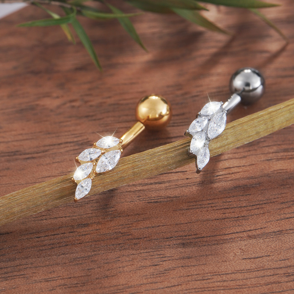 Piercing Umbigo Banana Titânio Folhas Zircônia Cravejada Estrela
