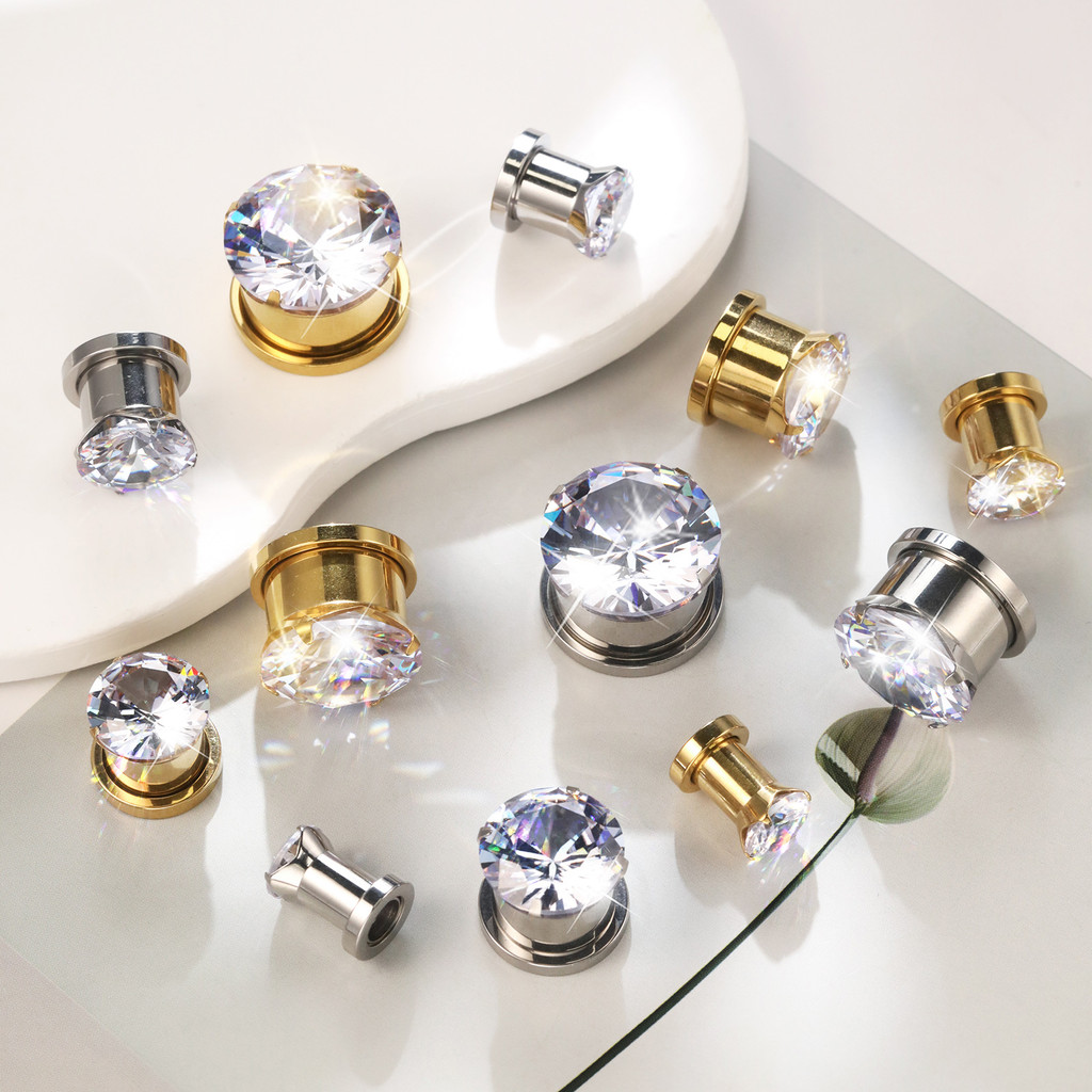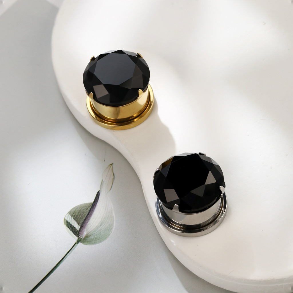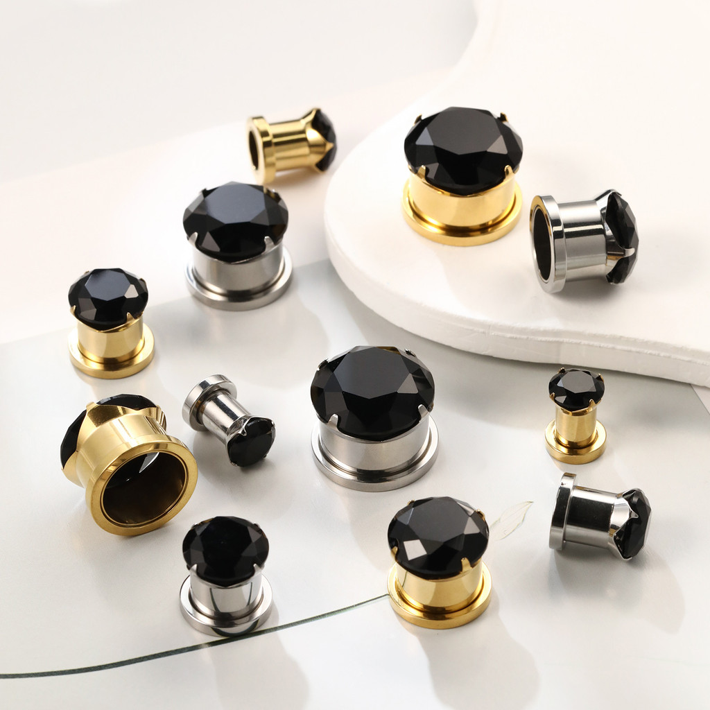 Alargador de Orelha Personalizado Aço Cirúrgico Pedra Redonda Preto / Branco Lóbulo