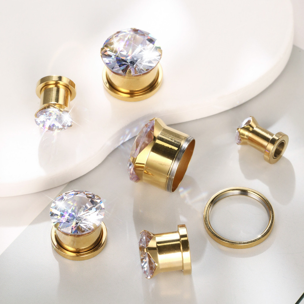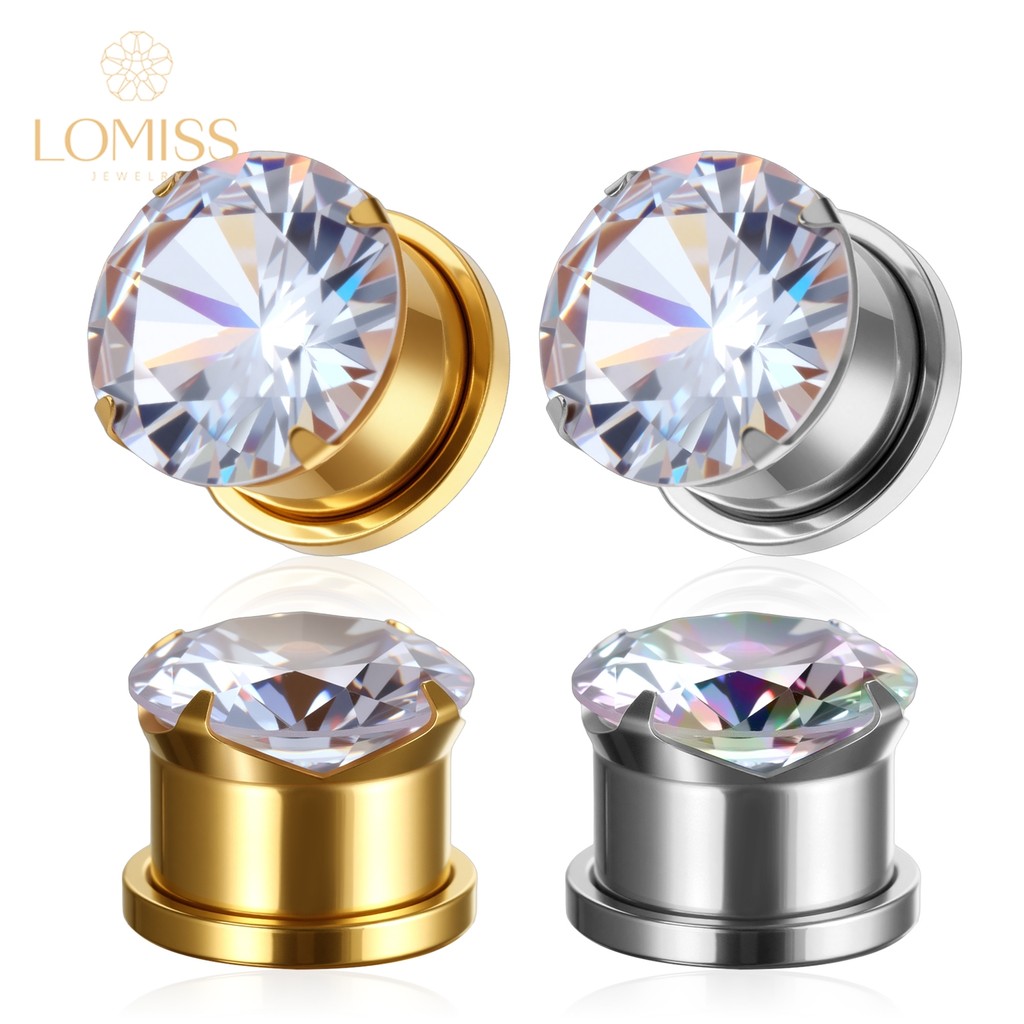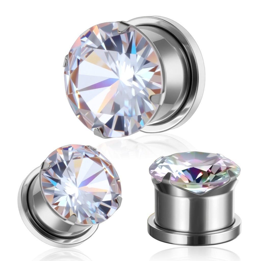 Alargador de Orelha Personalizado Aço Cirúrgico Pedra Redonda Preto / Branco Lóbulo