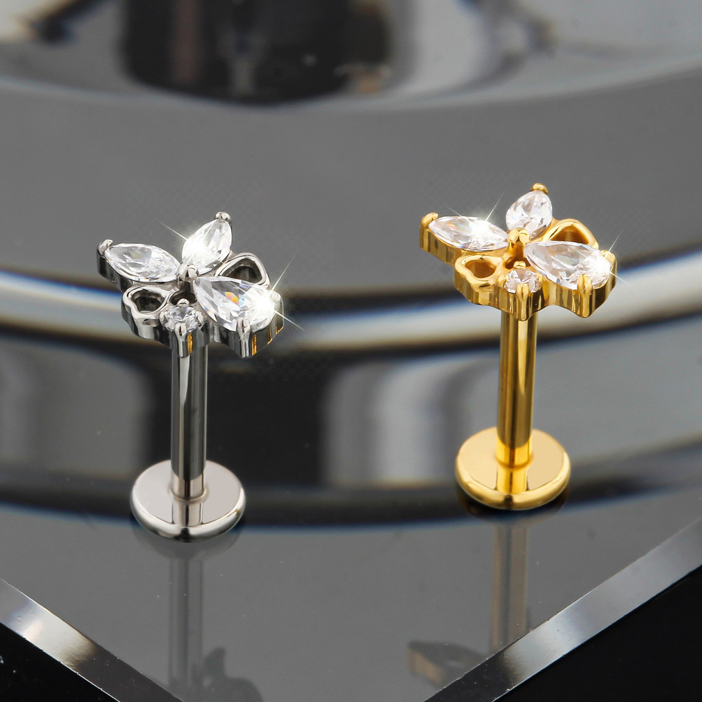 Piercing Labret Titânio Zircônias Coração Estrela Cobra Orelha Helix Tragus Conch Nariz Cartilagem Lóbulo