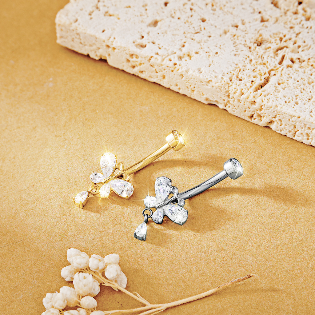 LOMISS Piercing Umbigo com Pingente Borboleta Banana Titânio Indiano Zircônia Dourado