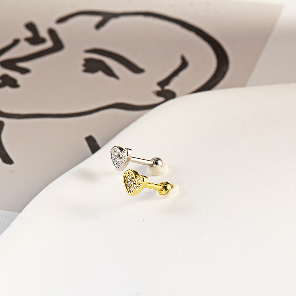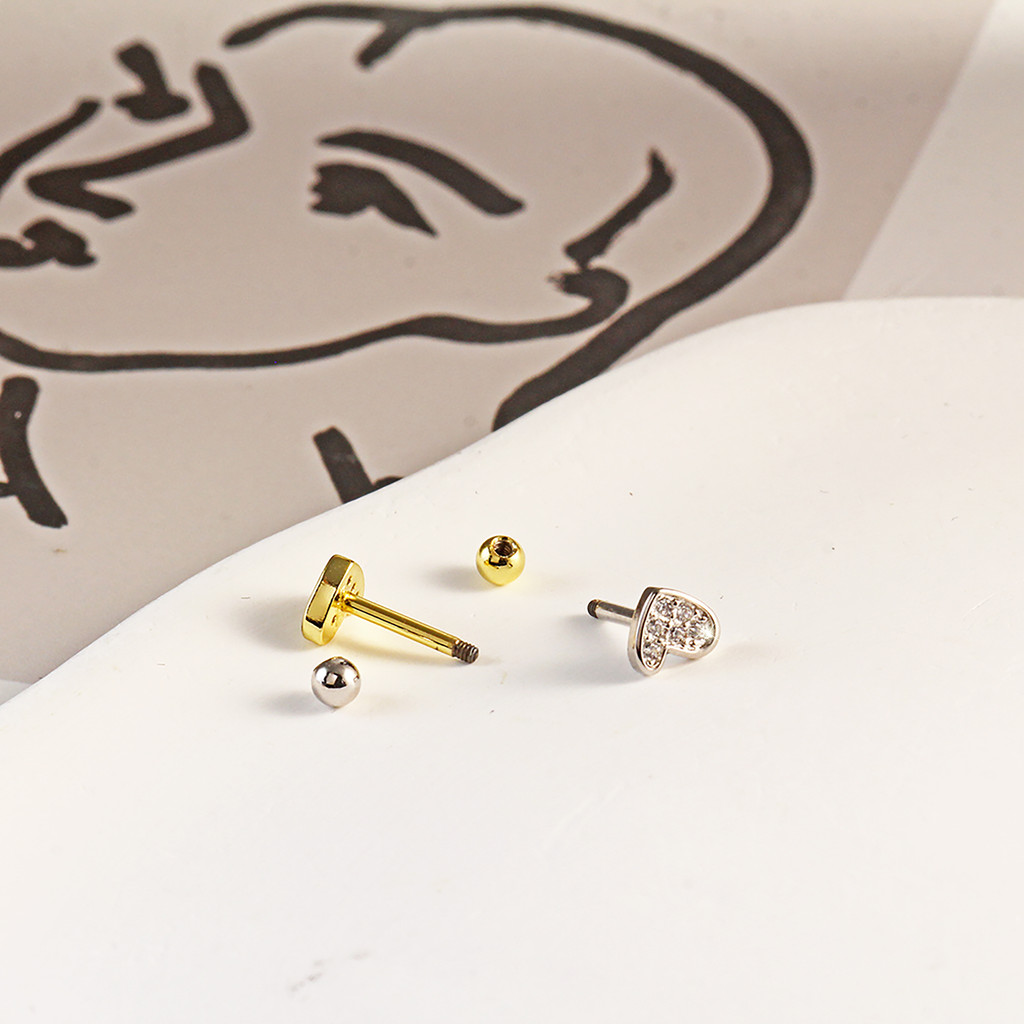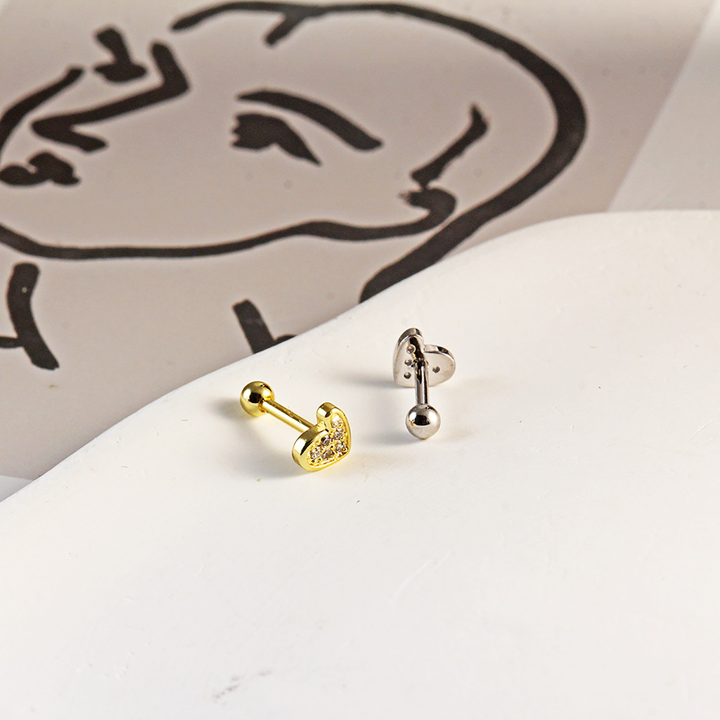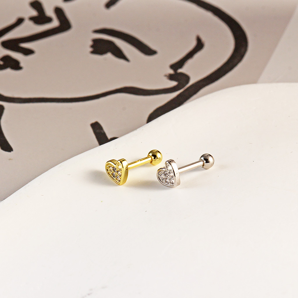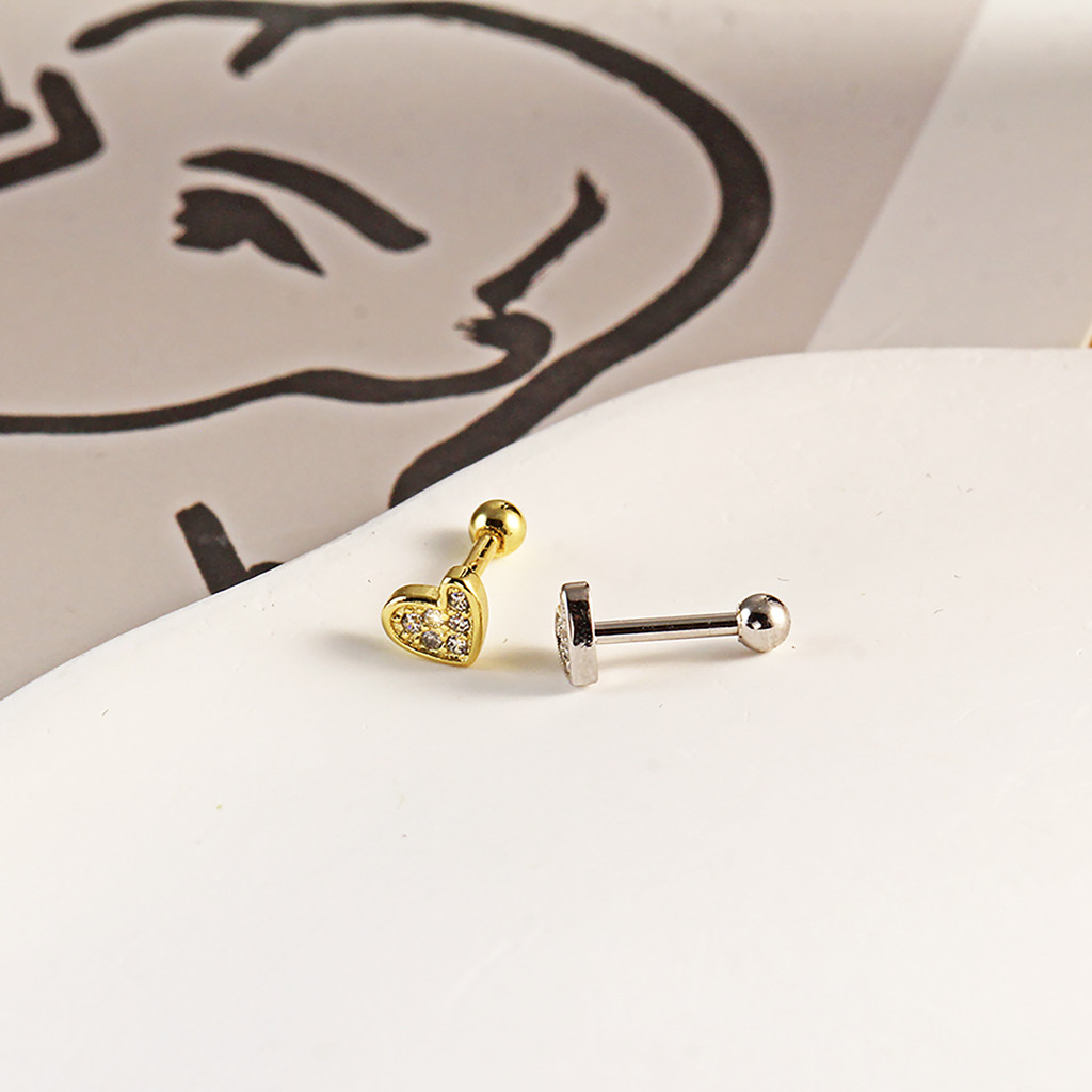 Piercing Orelha Coracao 6 Zircônia Cravejado Mini Barbell Cobre / Aço - Tragus Conch Nariz Labret Boca Helix Flat Lóbulo