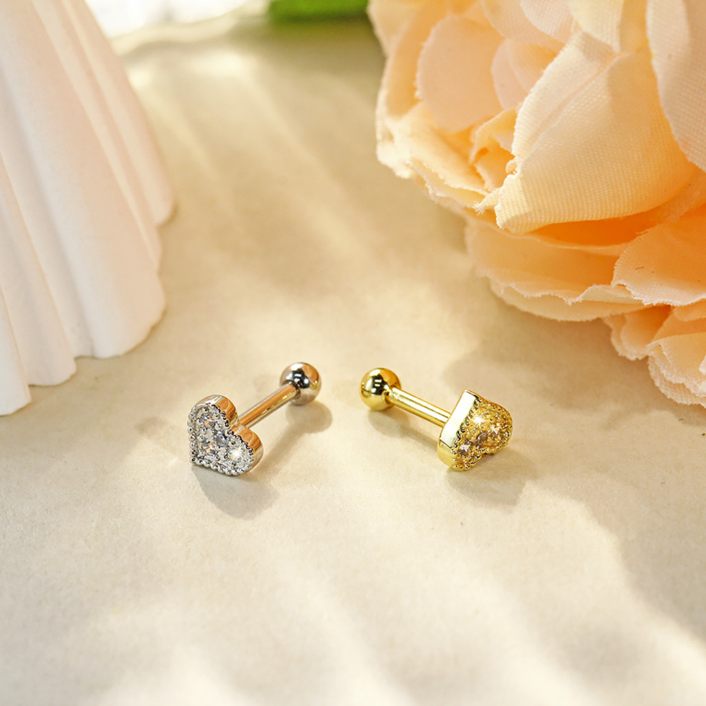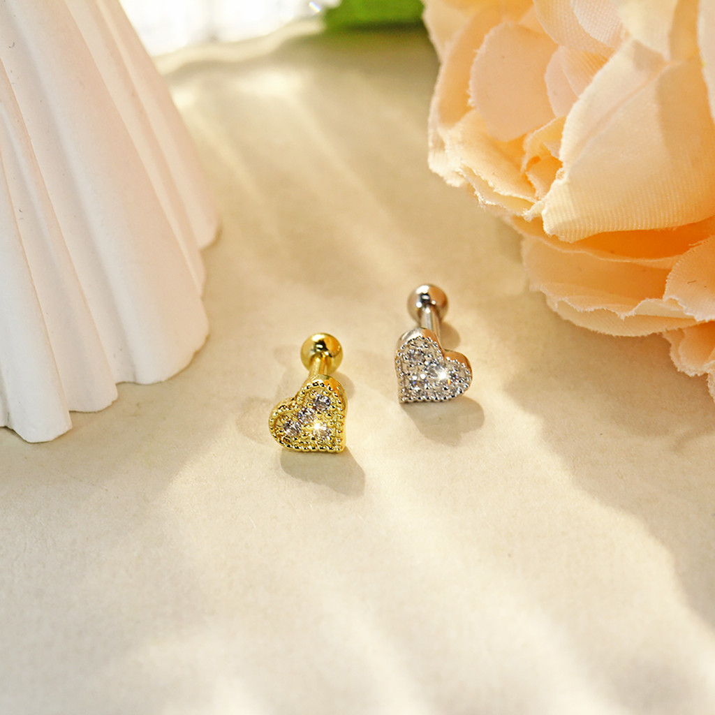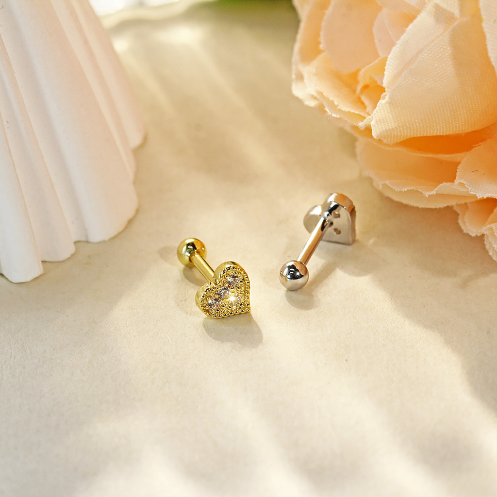 Piercing Orelha Helix Mini Barbell Cobre / Aço Coracao Cravejado Zircônia - Flat Conch Rook Lóbulo Labret Nariz Tragus