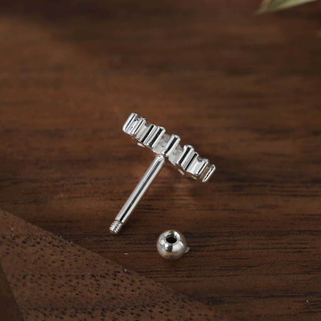Piercing Minibarbell Prata 925 Trio Zircônia Cravejada Conch Orelha Lingua Ponto De Luz / Helix Flat Tragus Lóbulo