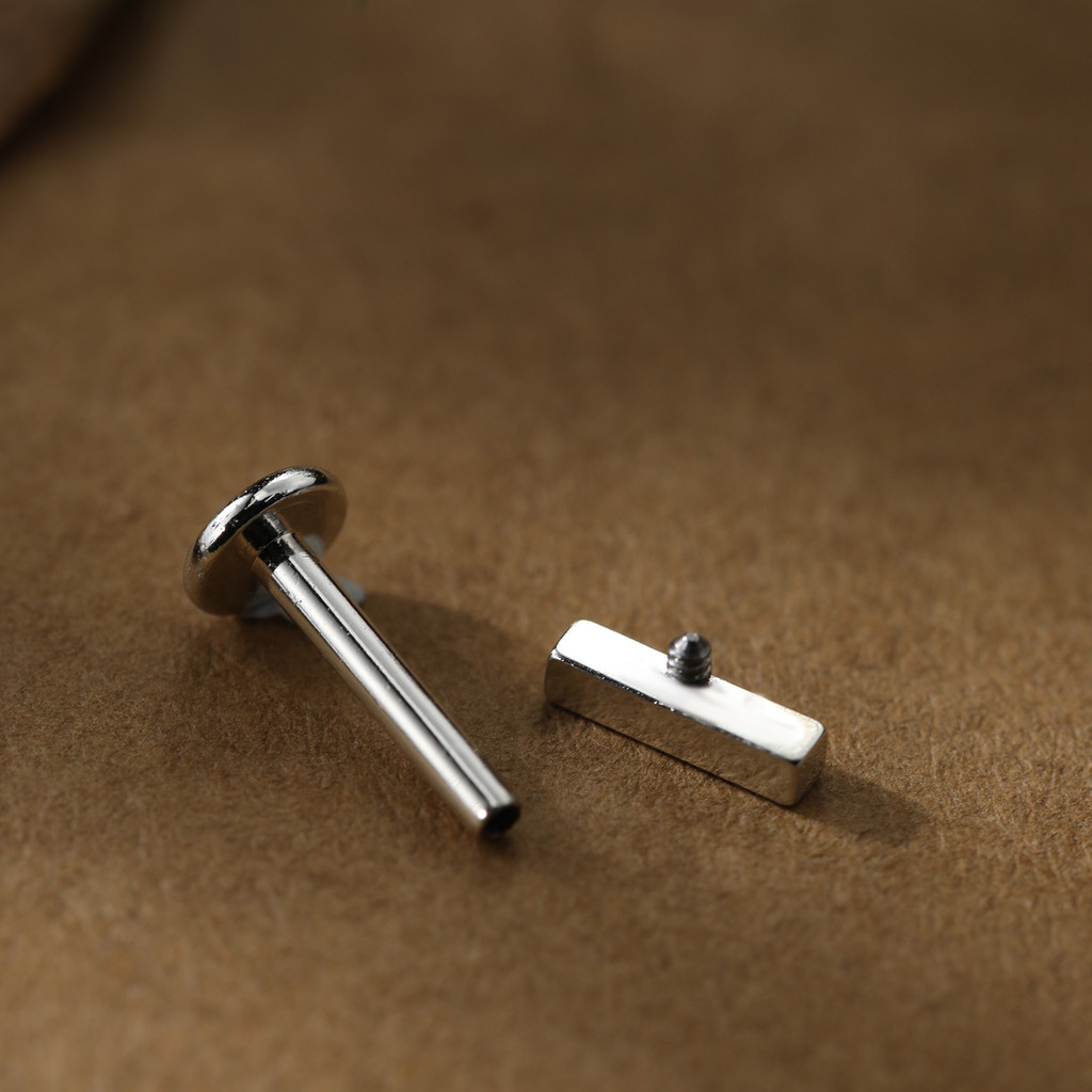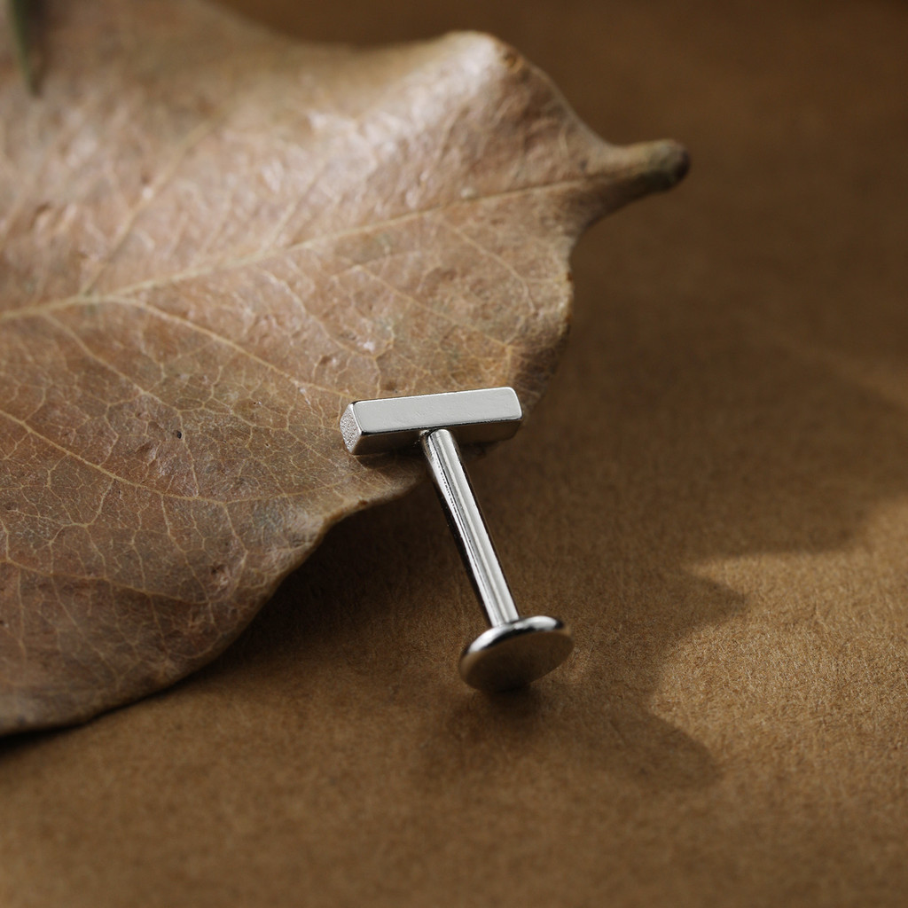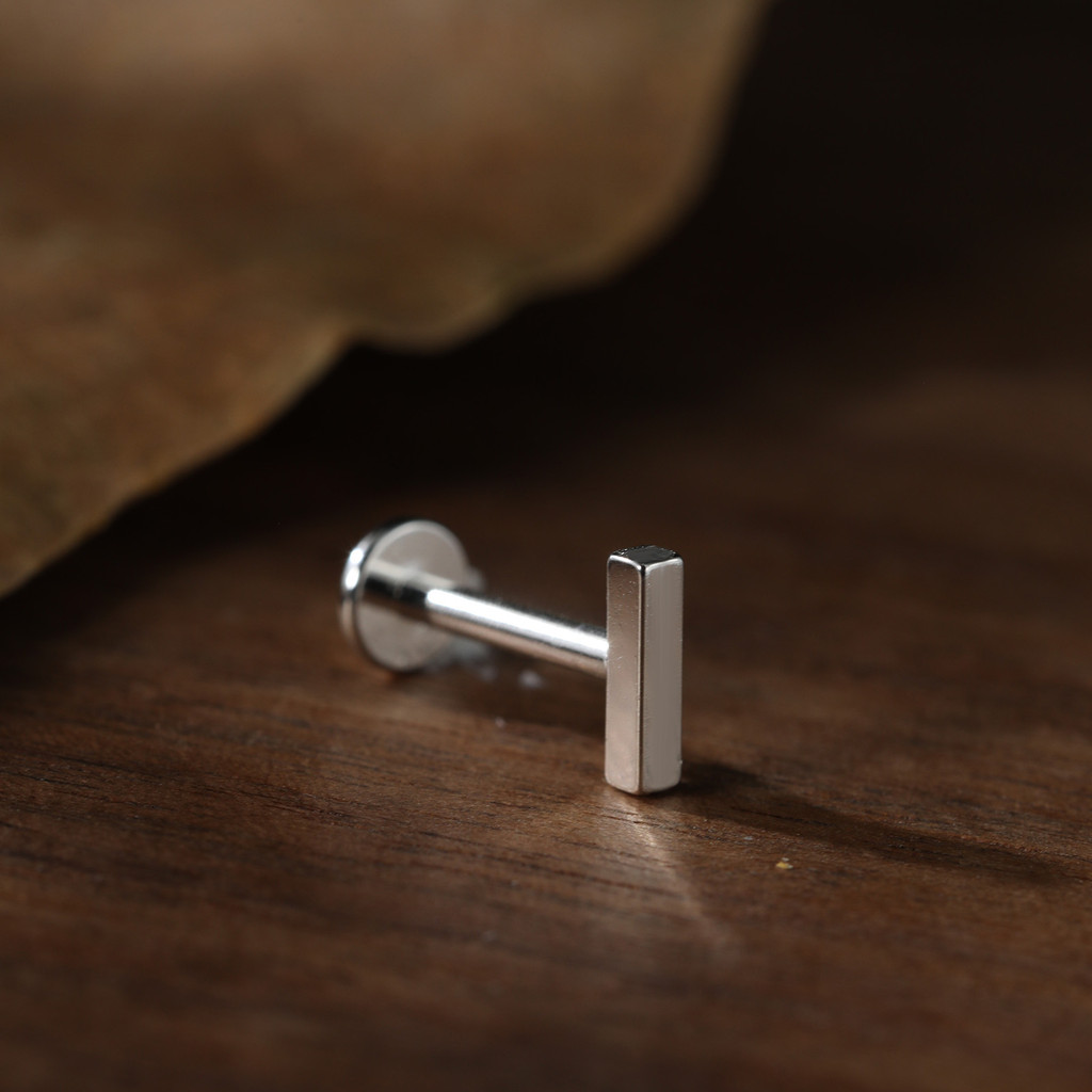 Piercing Labret Prata 925 Retangulo Tragus Helix Orelha Ponto de Luz Hipoalergênico Flat Conch