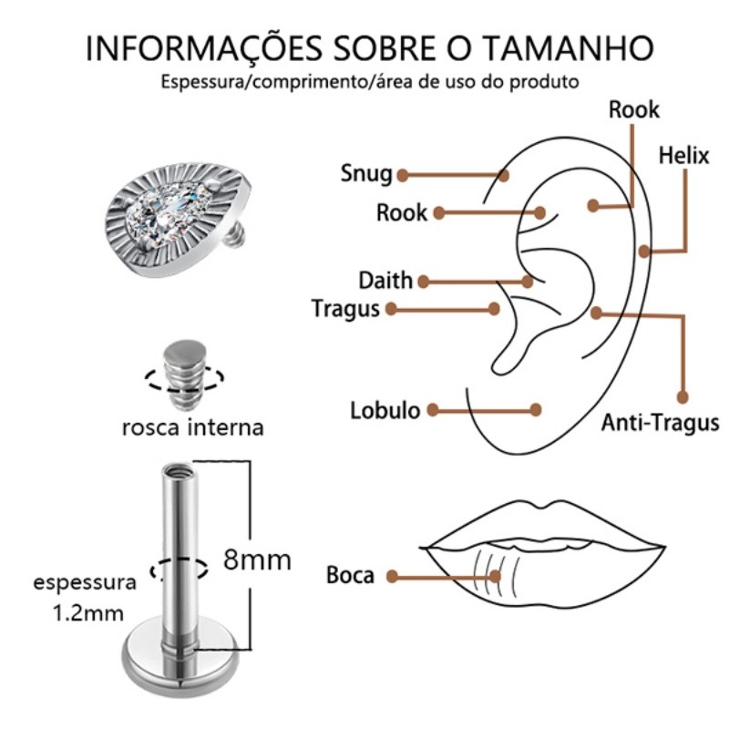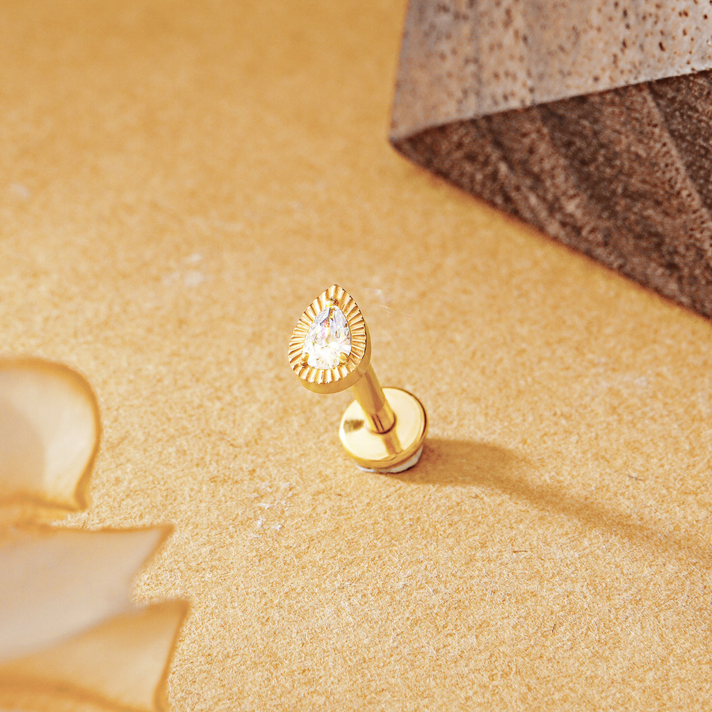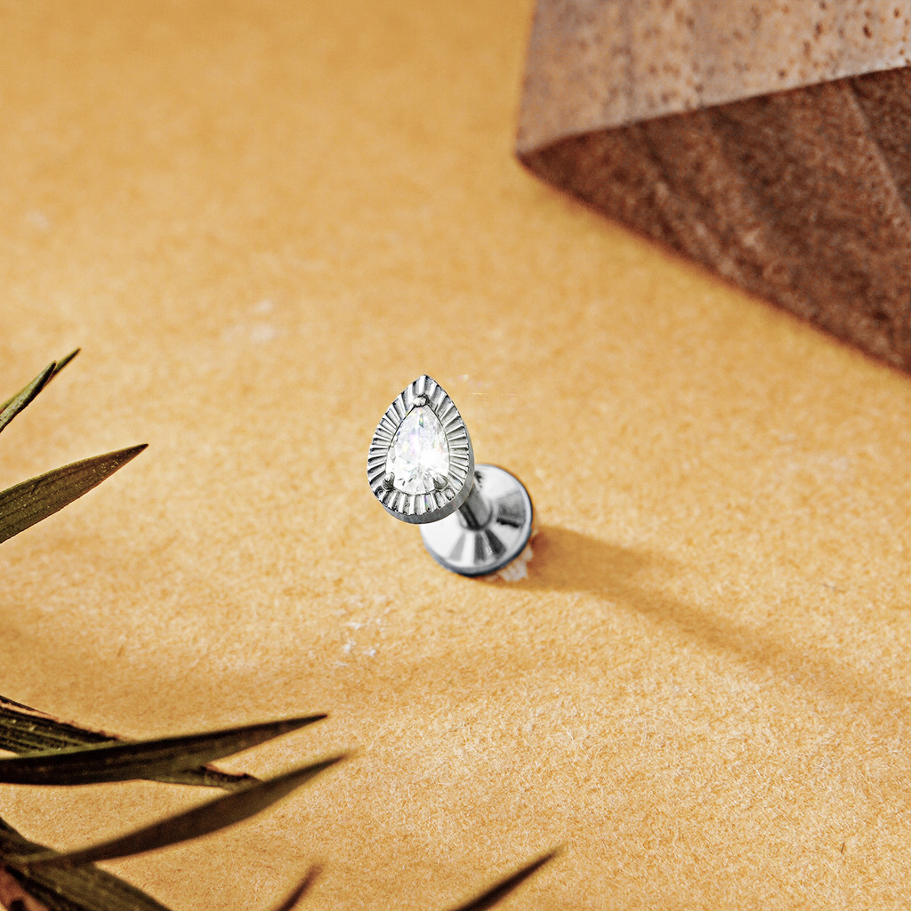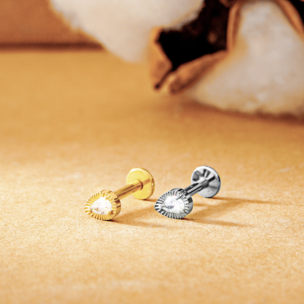 Piercing Labret e Orelha Titânio Gota Zircônia Cravejado | Para Helix Tragus Conch Nariz Piercing Boca Ponto De Luz