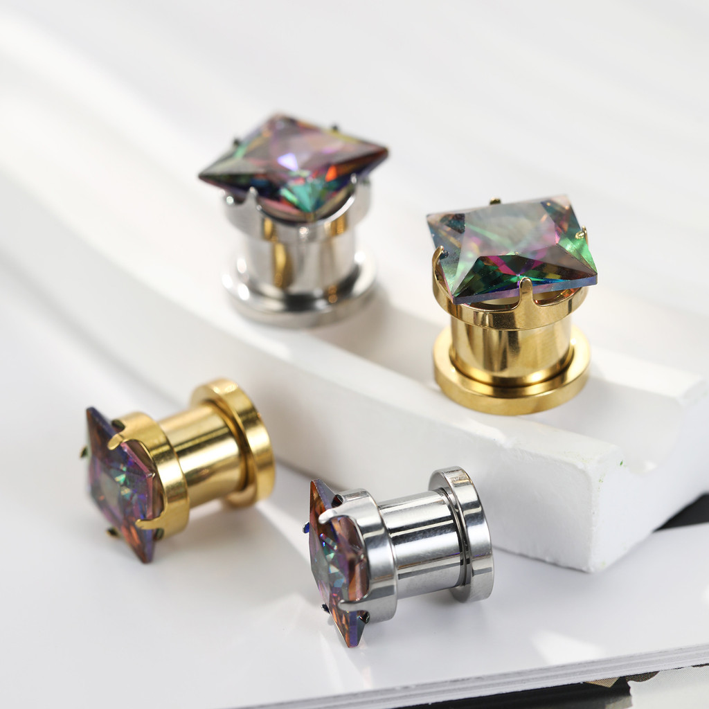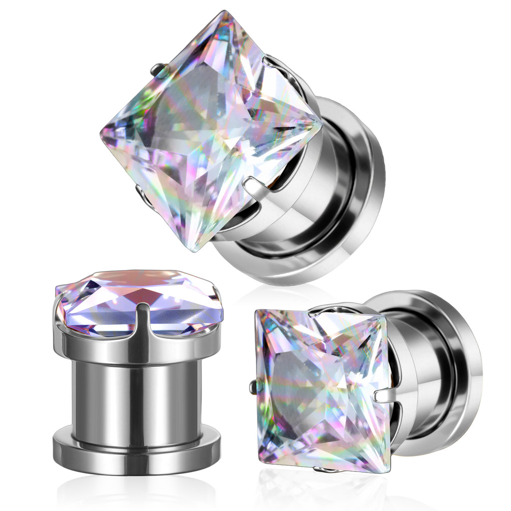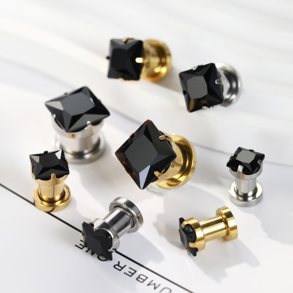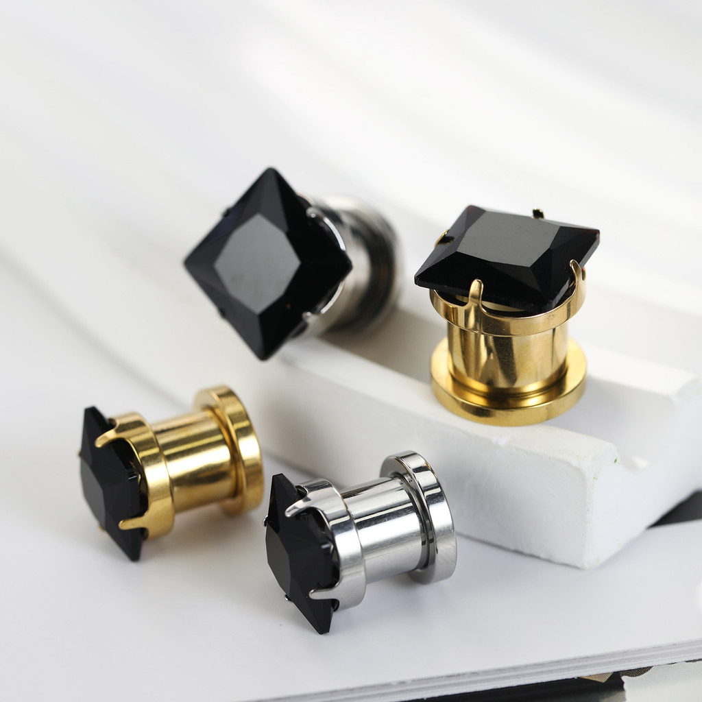 Alargador de Orelha Personalizado Aço Cirúrgico Pedra Quadrada Preto / Branco / Furta-Cor Liso | Lóbulo