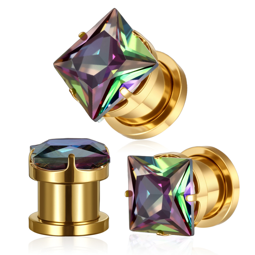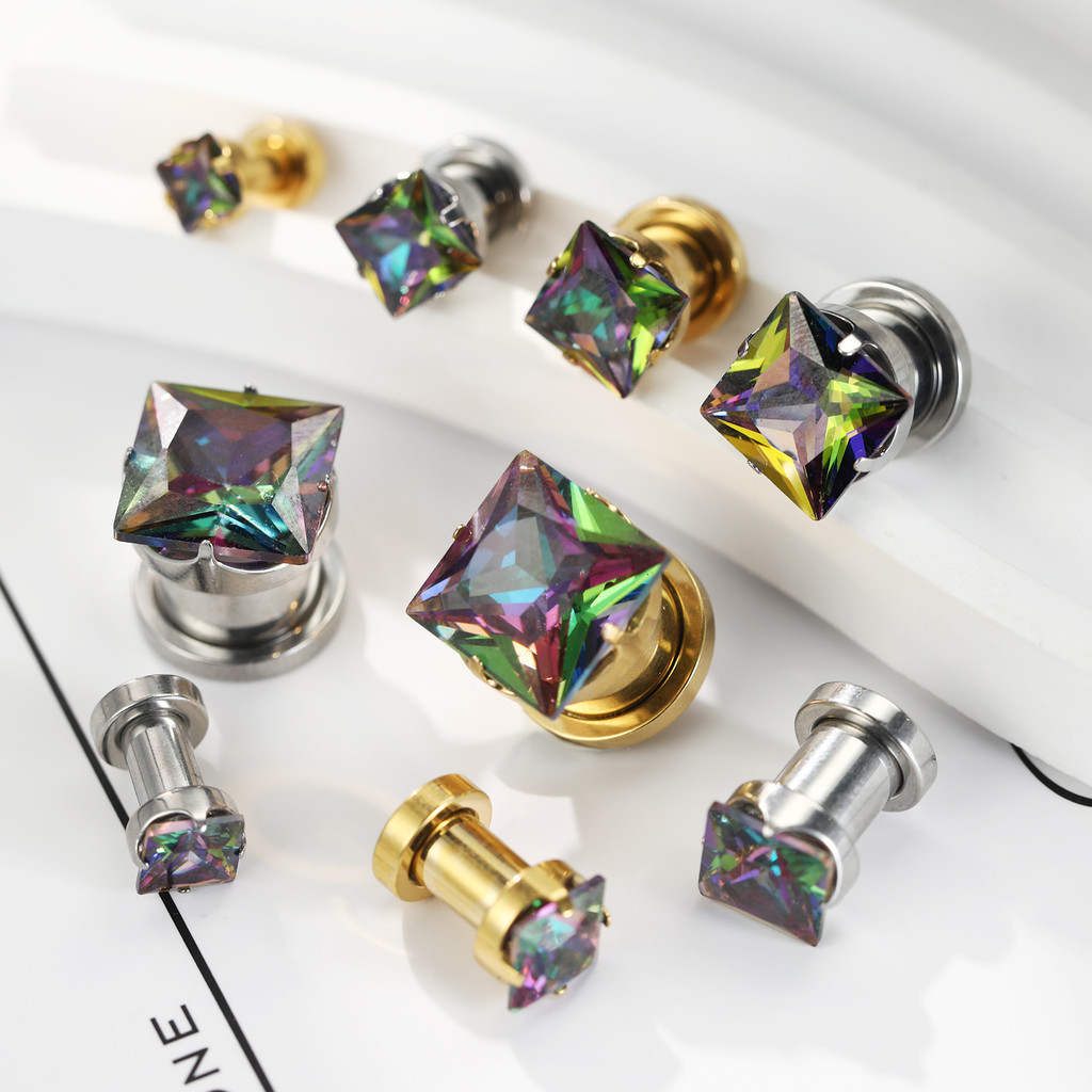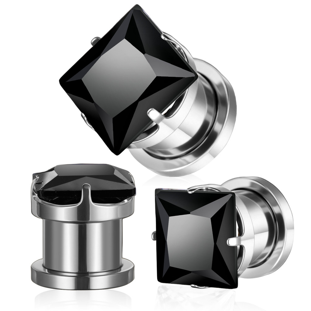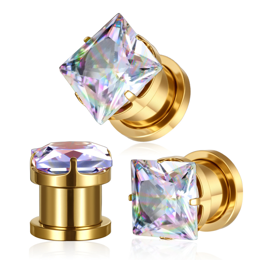 Alargador de Orelha Personalizado Aço Cirúrgico Pedra Quadrada Preto / Branco / Furta-Cor Liso | Lóbulo