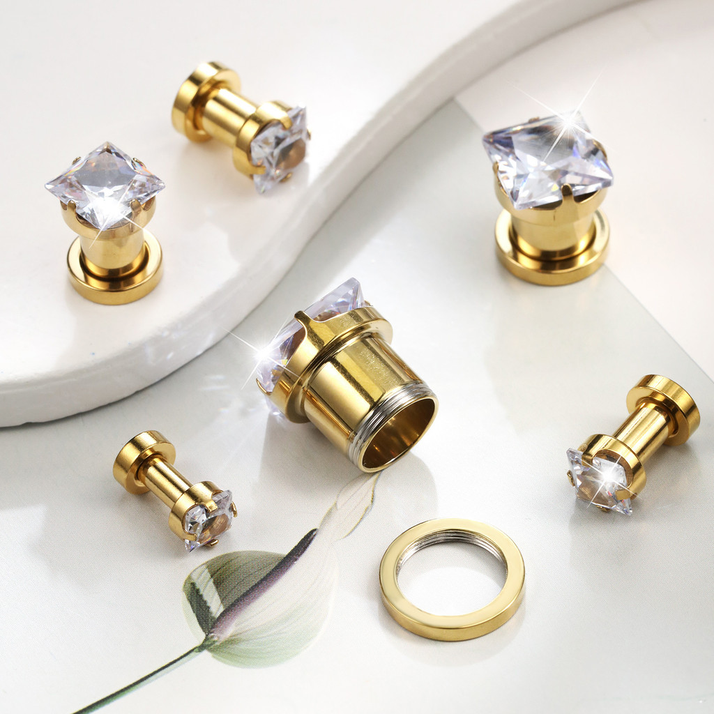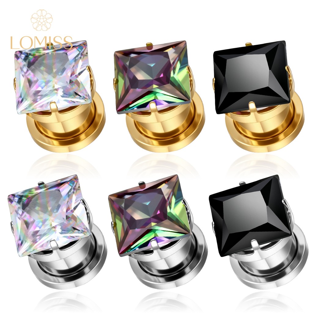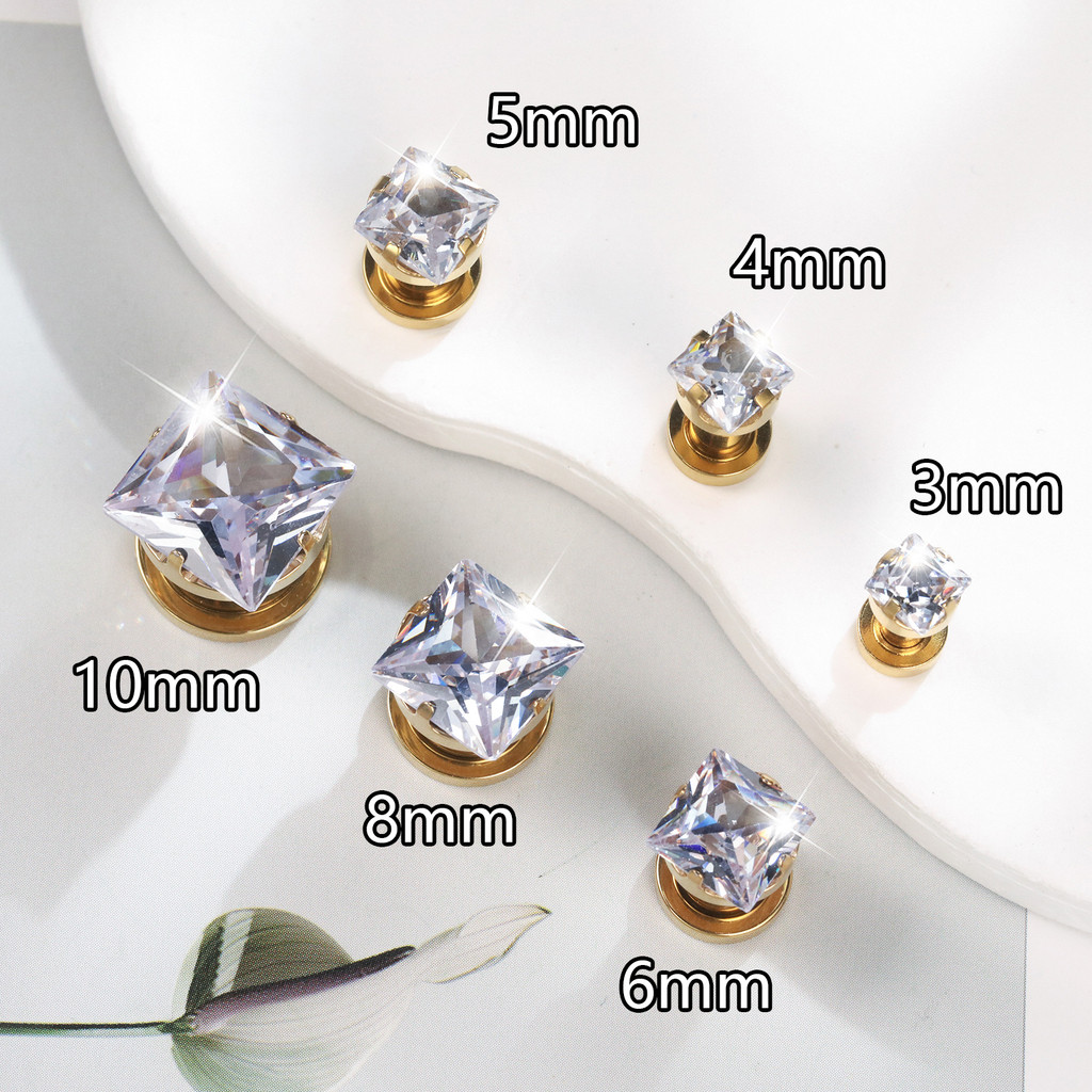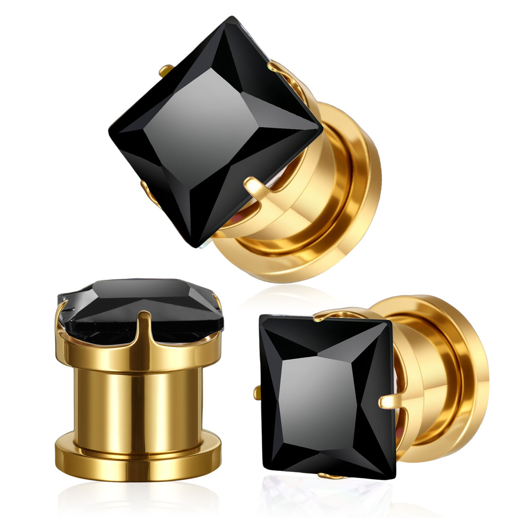 Alargador de Orelha Personalizado Aço Cirúrgico Pedra Quadrada Preto / Branco / Furta-Cor Liso | Lóbulo