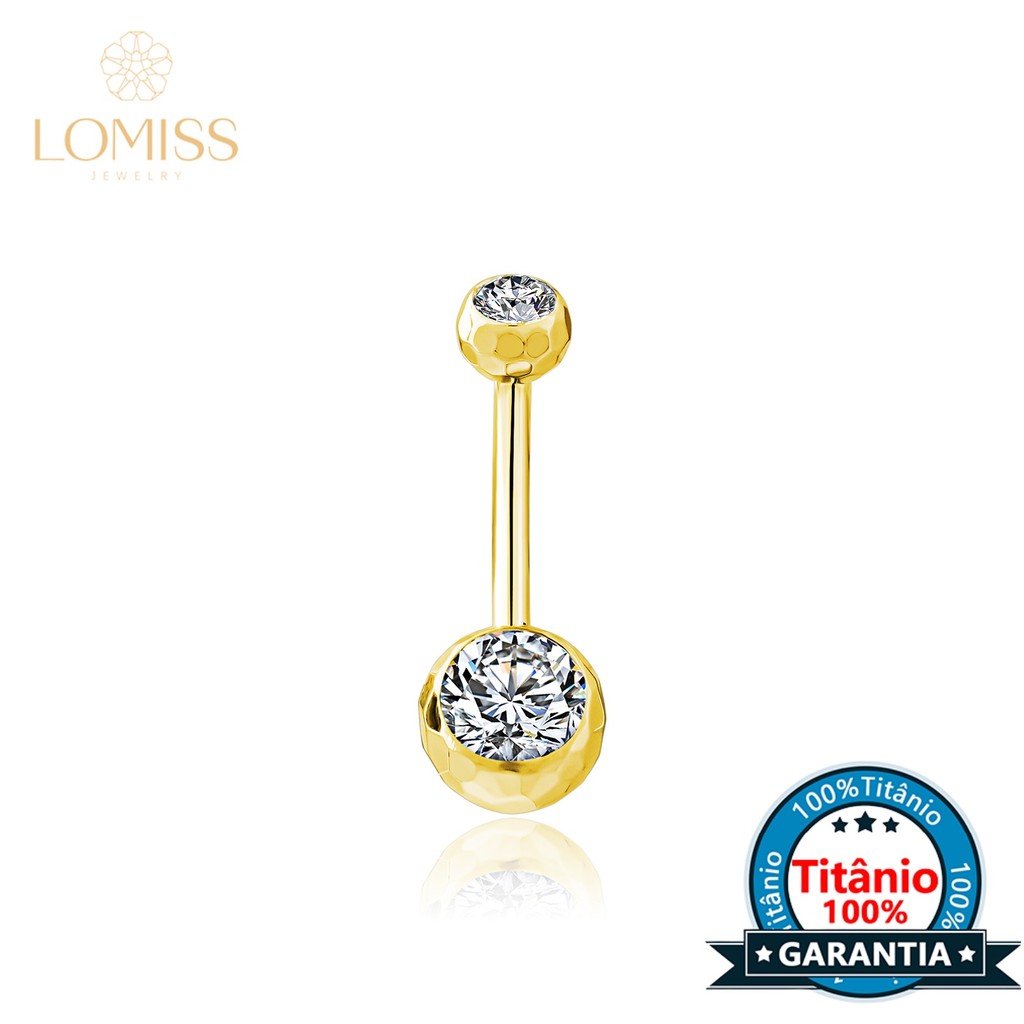 Piercing Banana Umbigo Titânio Pvd Lapidado - 2 Pedras Zircônia Cravejada Estrela Com Rosca
