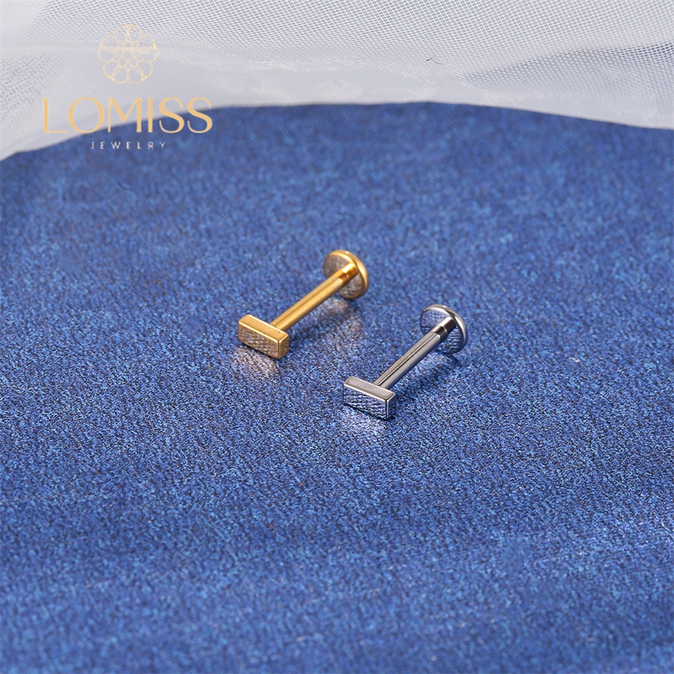 LOMISS Piercing Conch Labret Banhado Pvd Gold 18k Rosca Interna Titânio G23 Retângulo Helix Nariz Boca