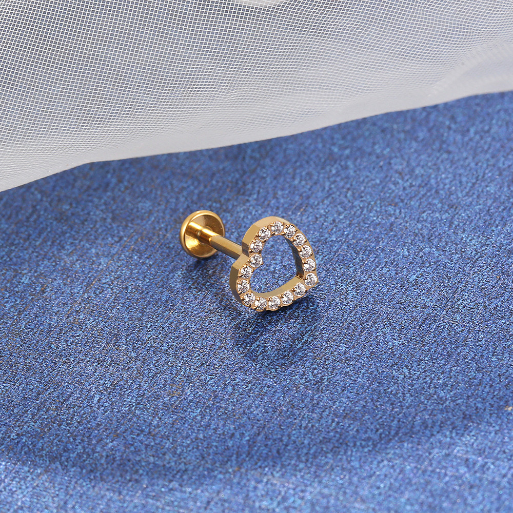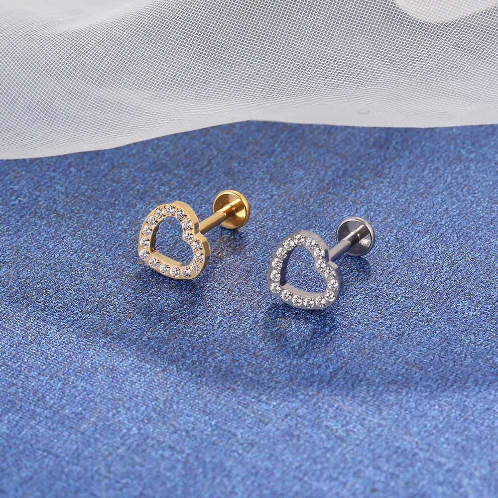 Piercing Labret Titânio Coração Vazado Zircônia Helix Tragus Conch Nariz Earring Piercing Coracao