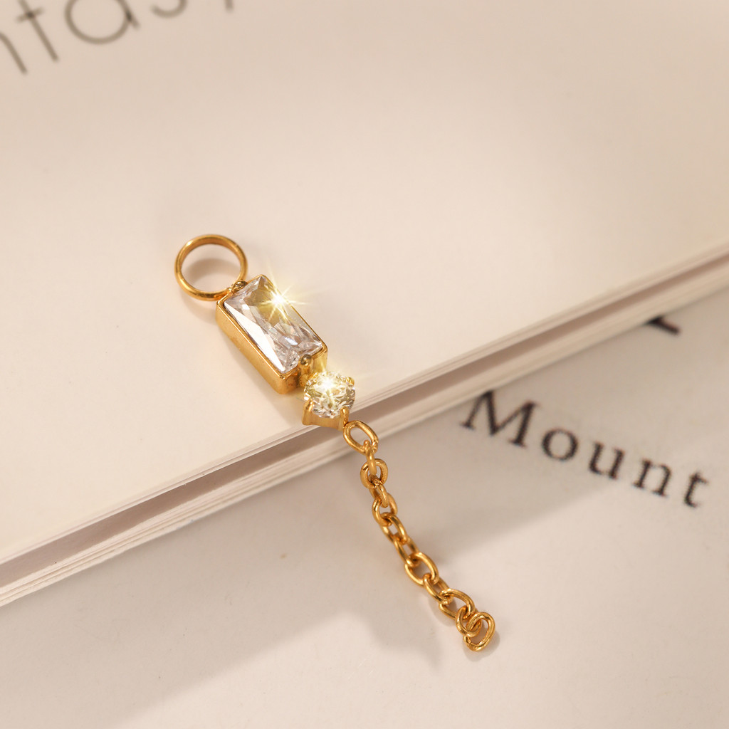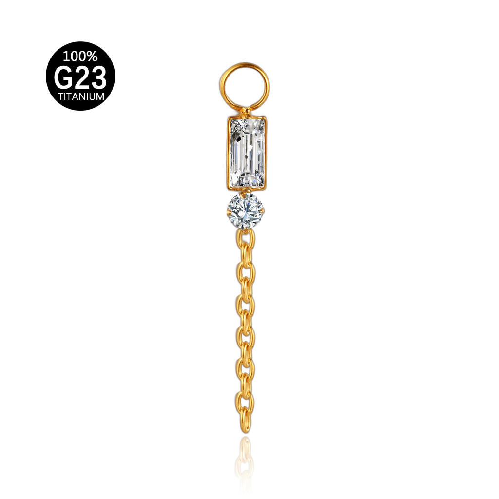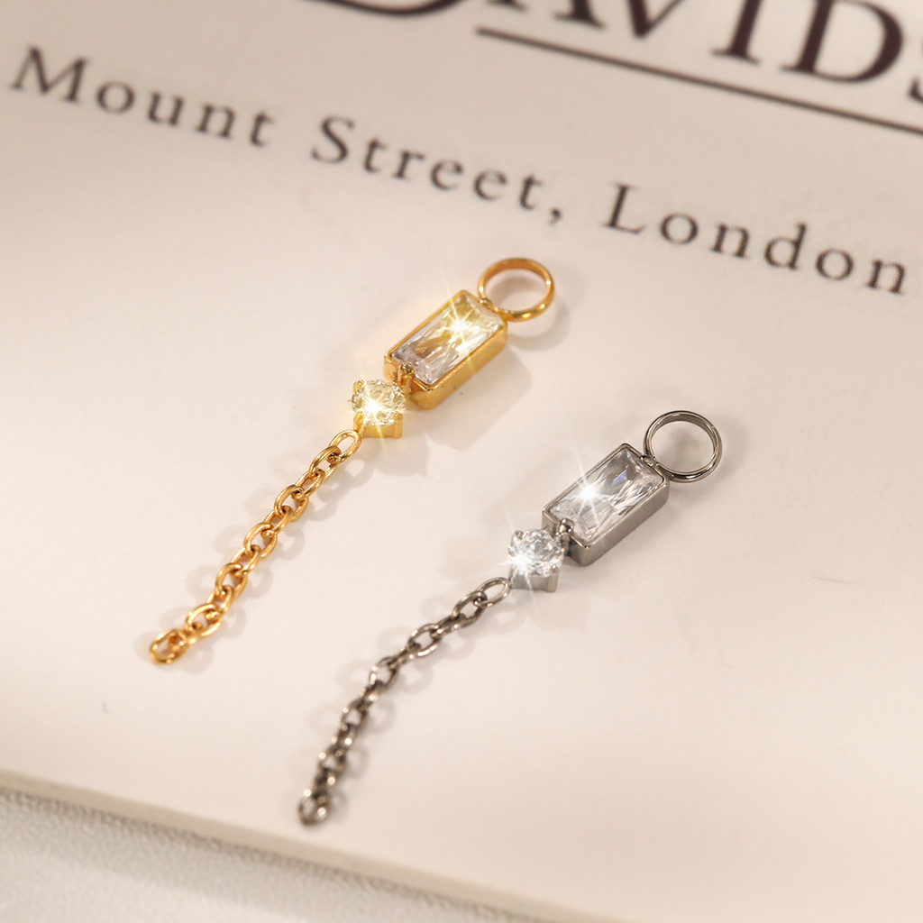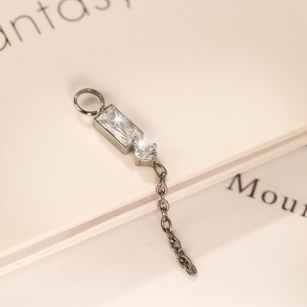 Pingente Para Piercing Titânio Pvd 2 Pedras Zircônia | Body Jewelry | Piercing Corporal | Moda | Acessório Fashion