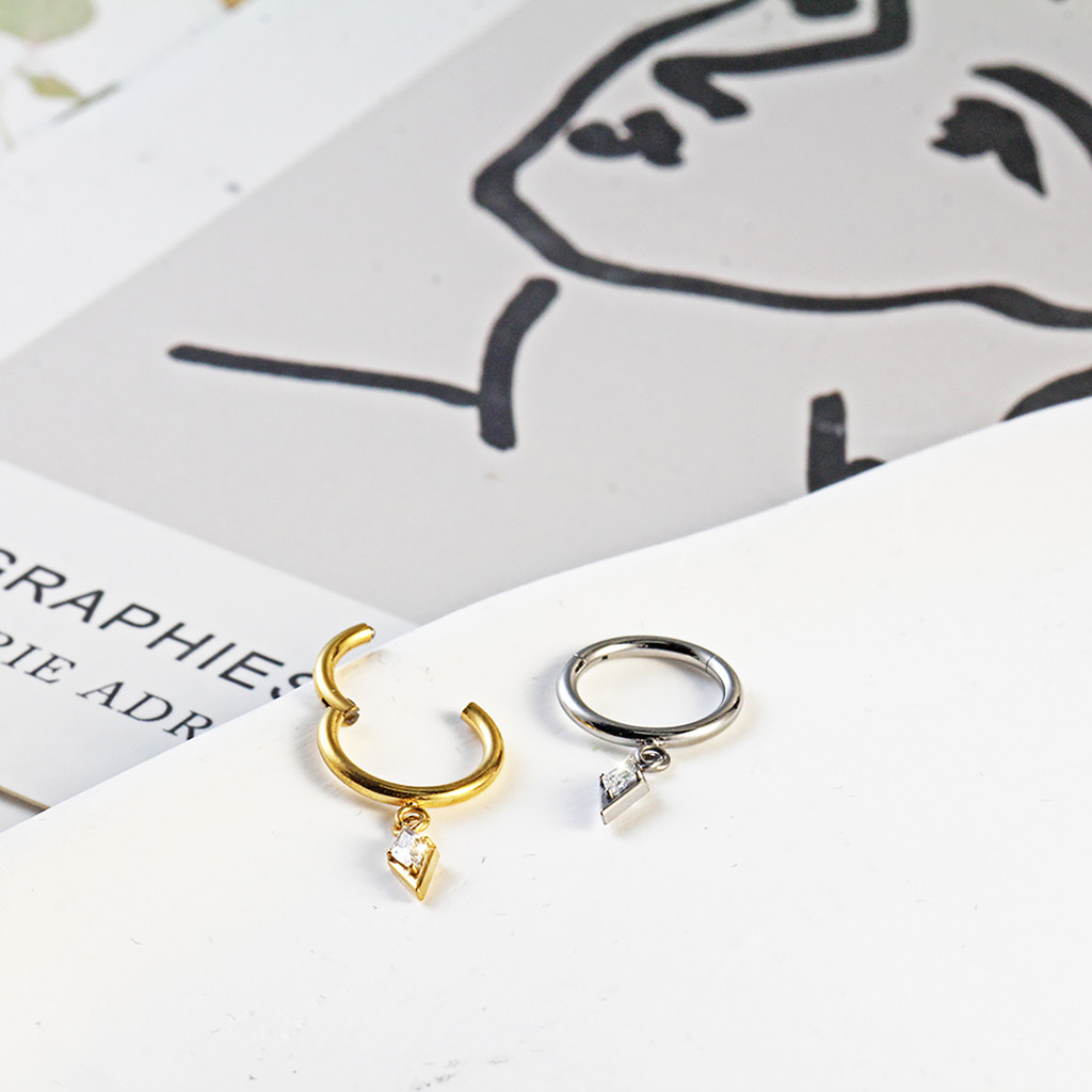 Piercing Argola Nariz Clik Titânio Zircônia Cravejada Pingente - Septo Tragus Rook Conch Helix Nostril Cultura Do Marina