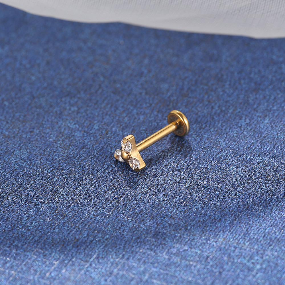 Piercing Helix Tragus Conch Labret Titânio Flor 3 Zircônias Cravejadas Rosca Interna Nariz Boca